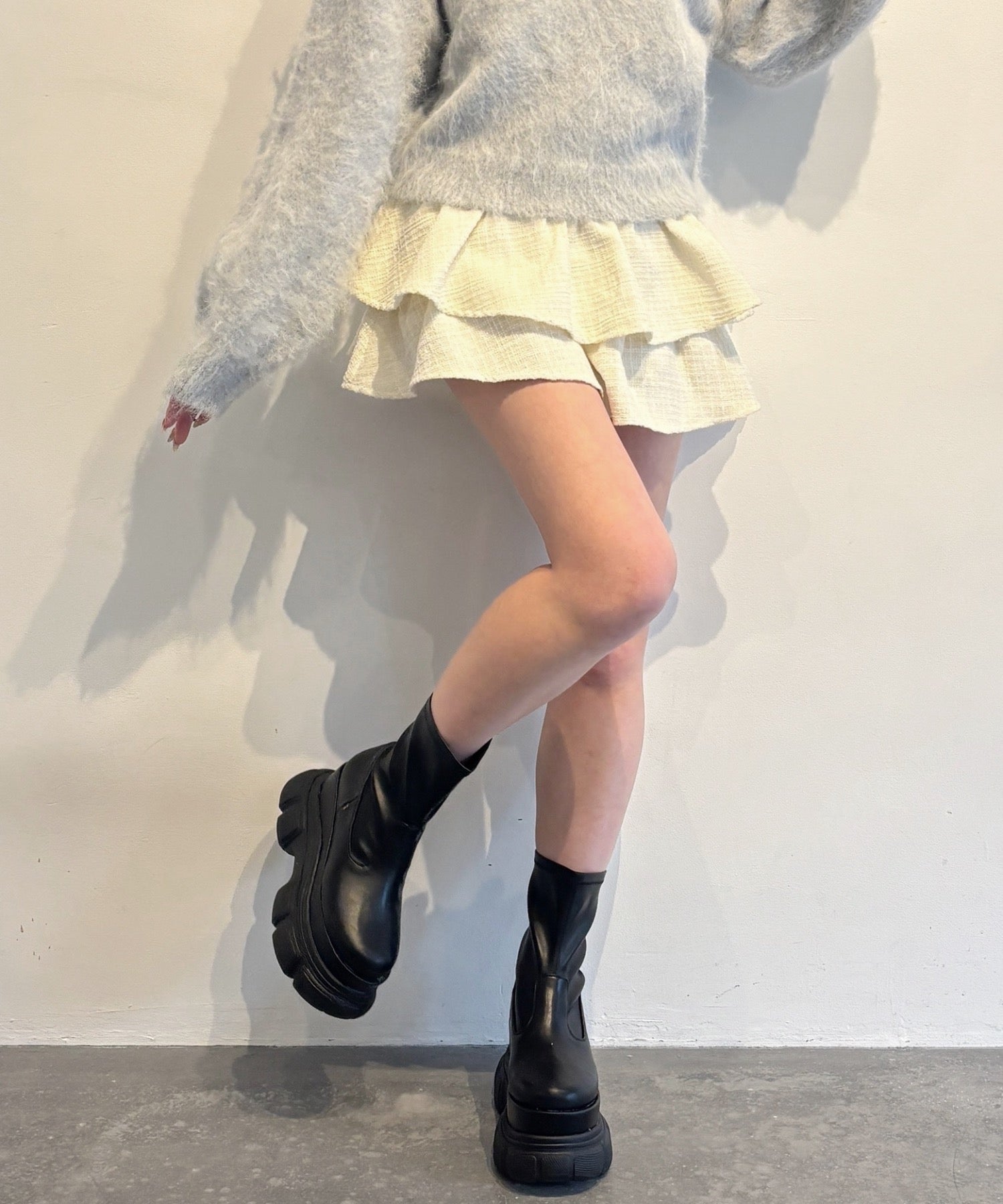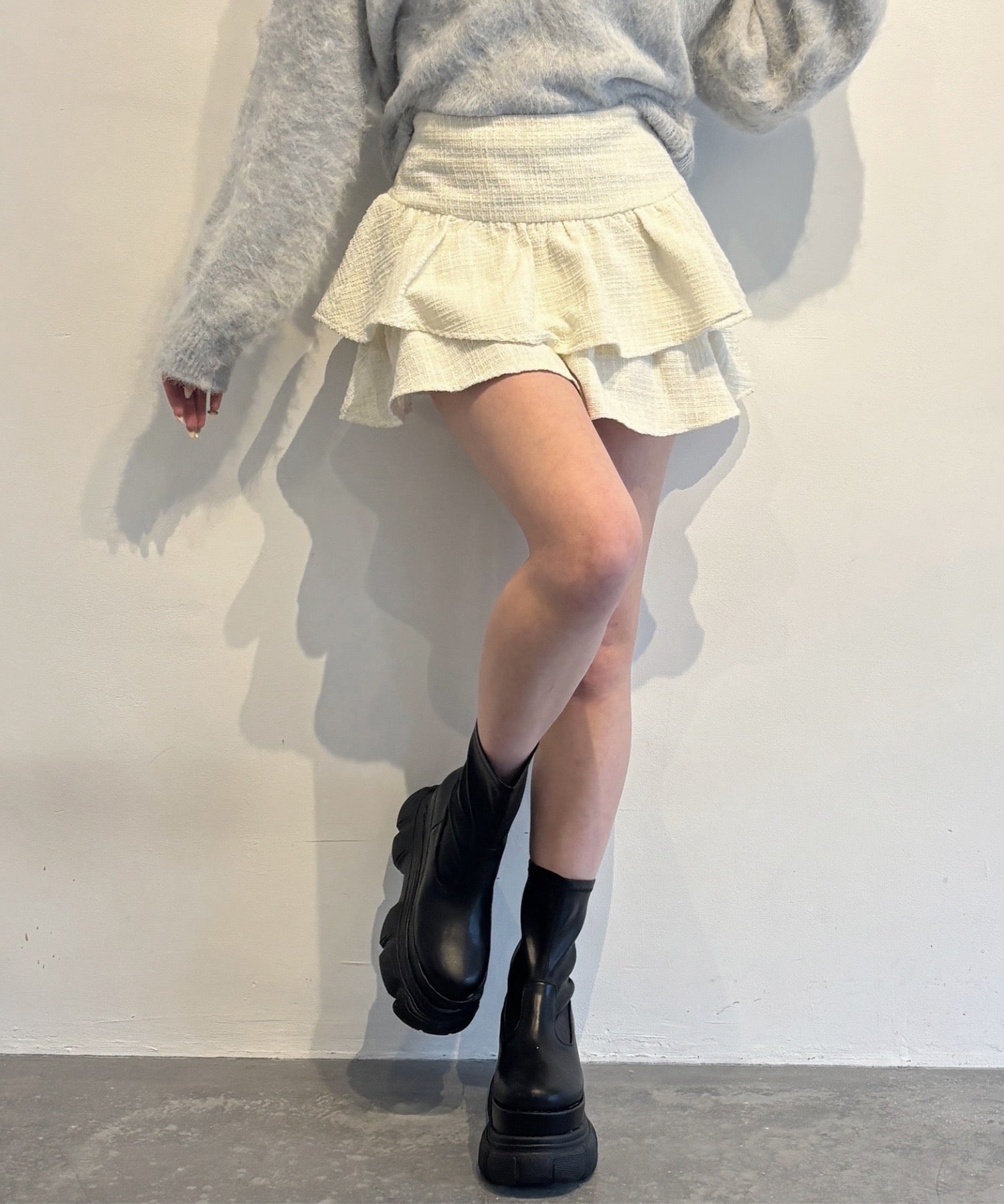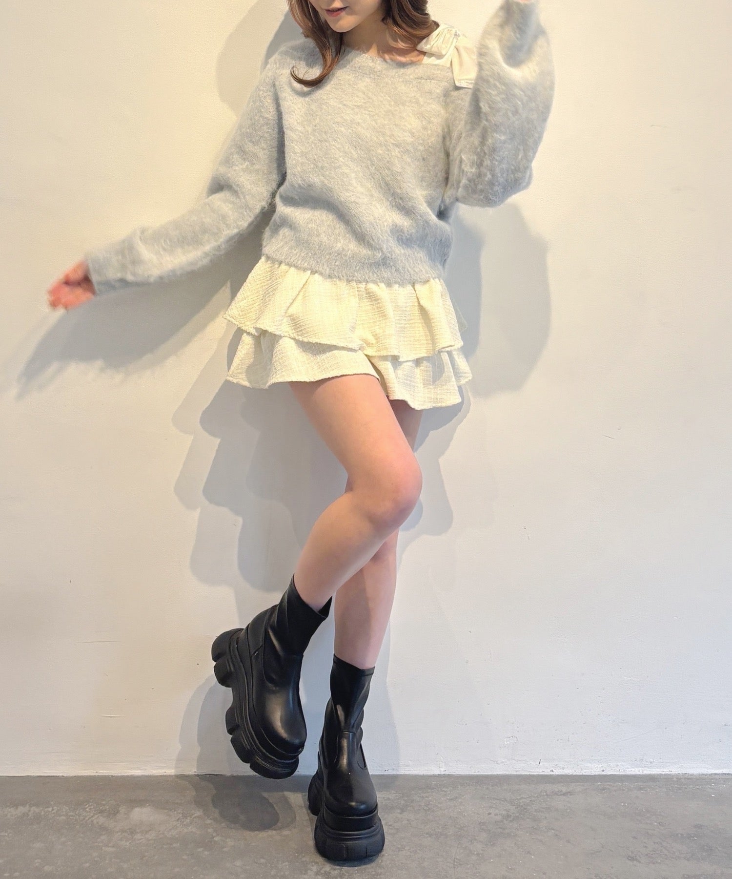 ・ゆるっとしたニットやアウターにティアードのフリル部分をさりげなくチラ見せしても可愛い♡