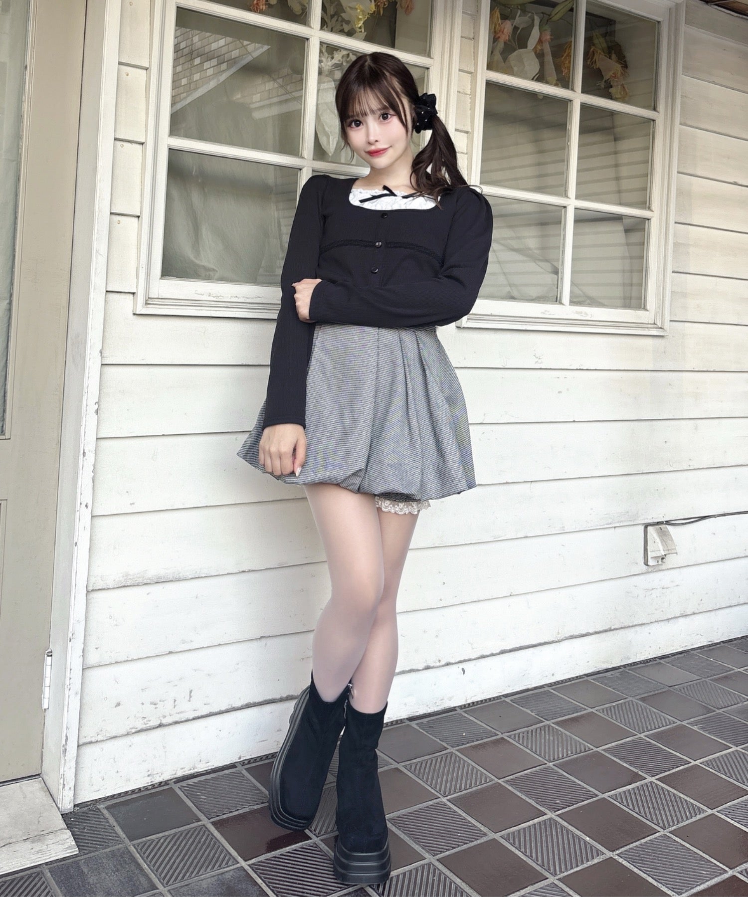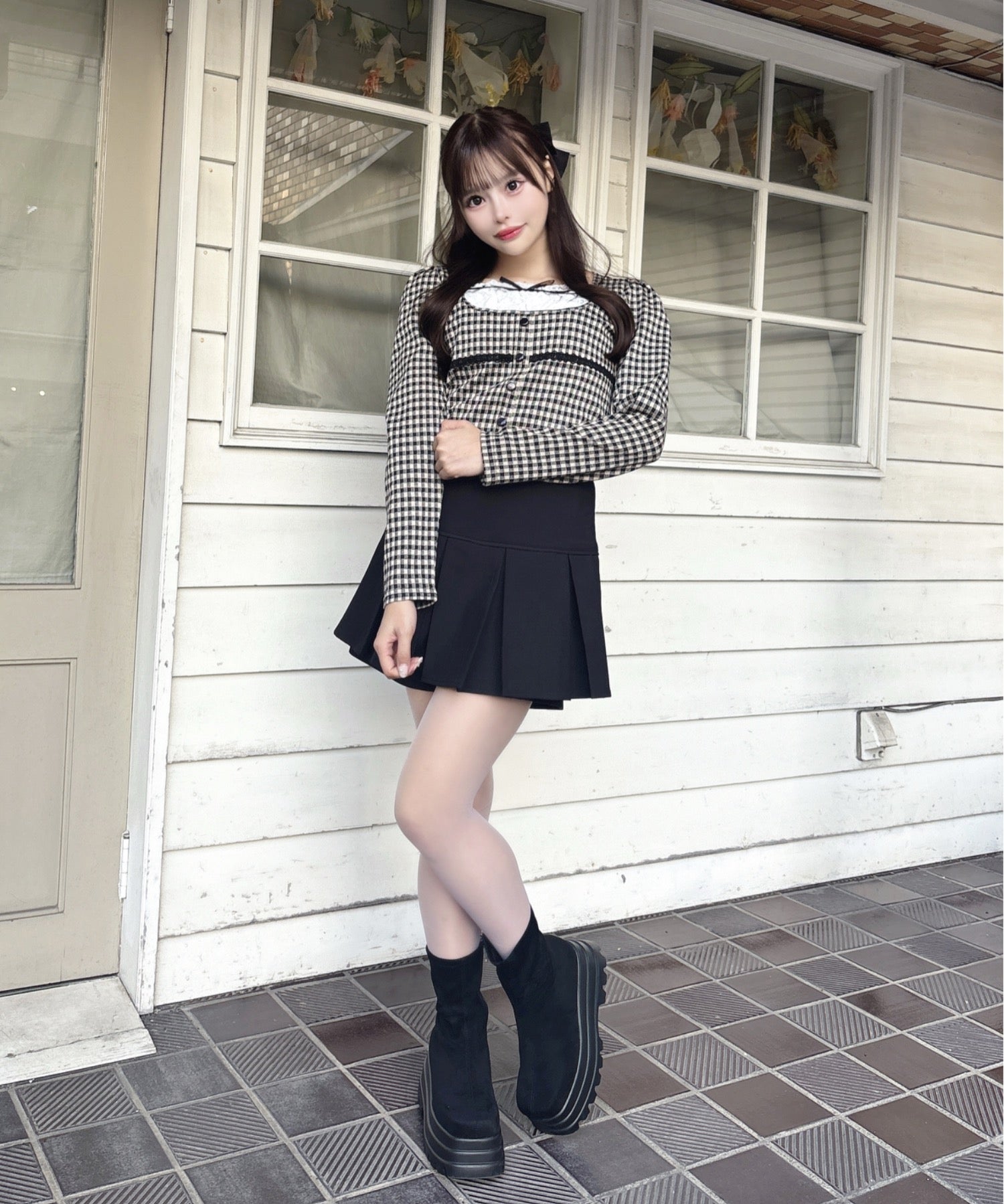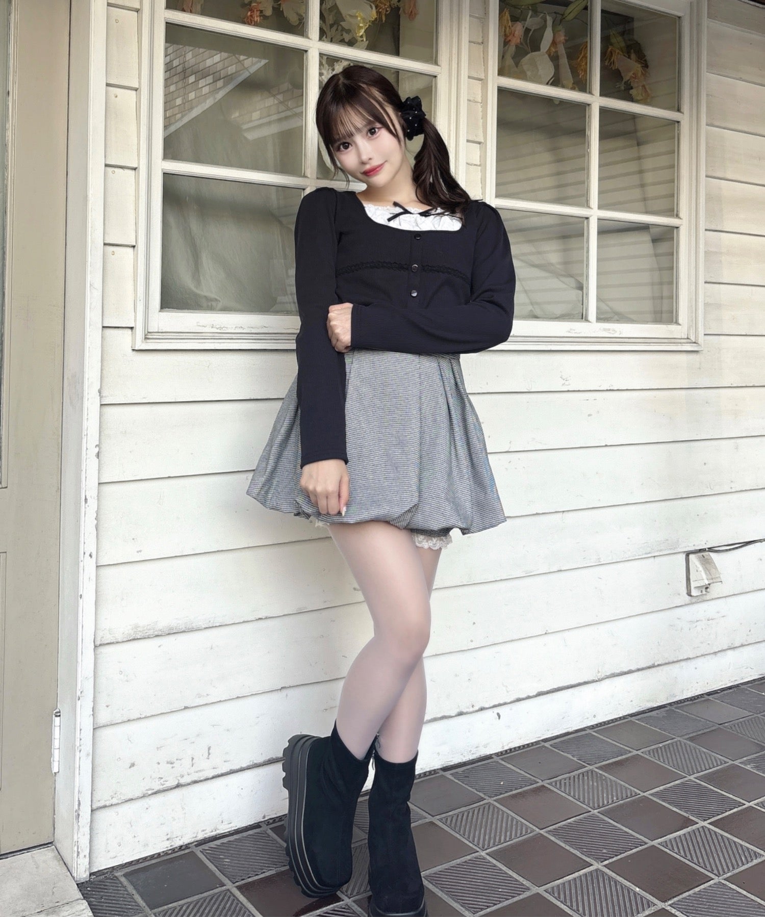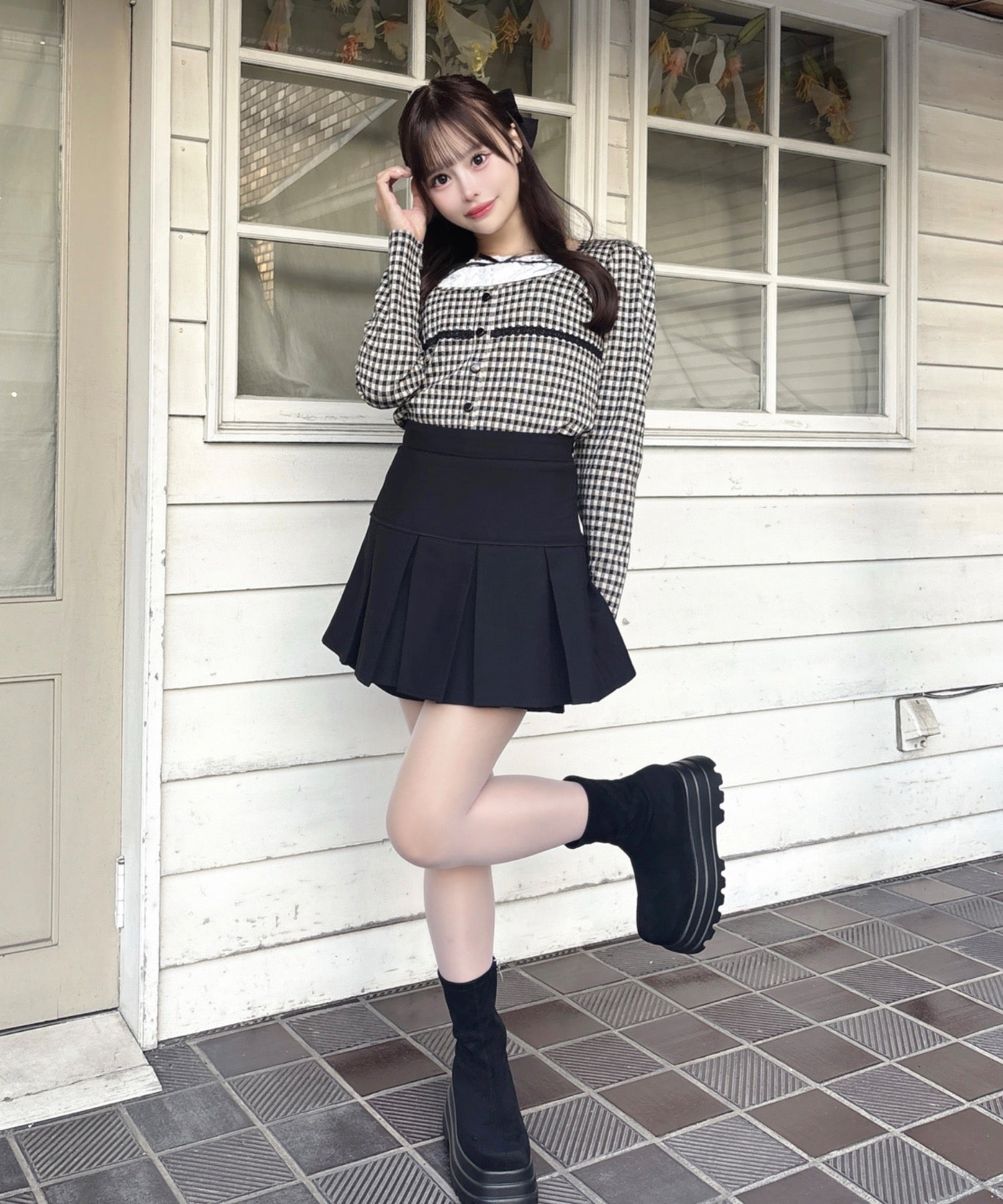 ・小物にハイソックスやローファーを合わせるとトレンドのフレンチガーリー風に♩
