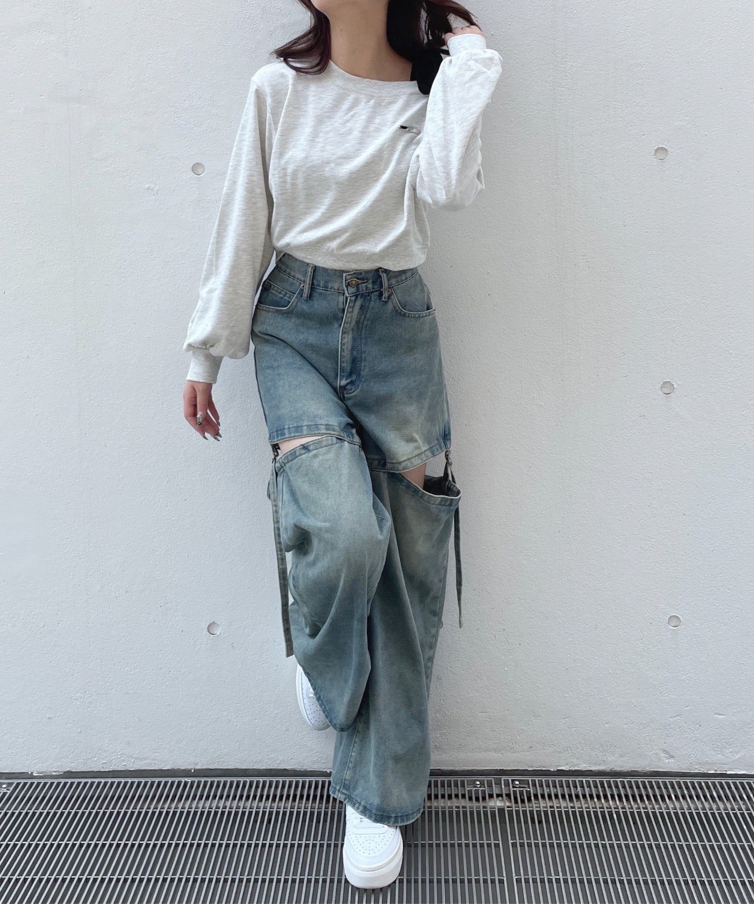 ・ゆるっとしたトレーナーとミニ丈のタイトめなボトムスも相性抜群!