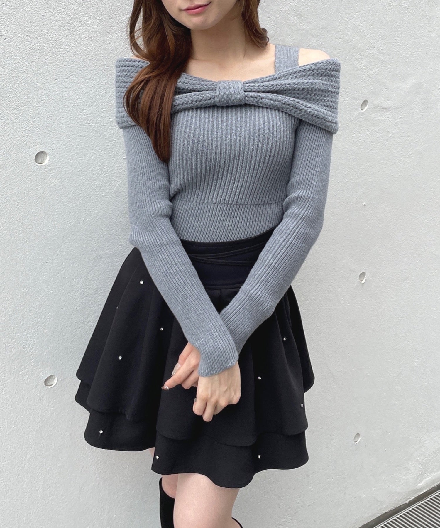 ・リボンがコーデの主役になる大人ガーリーなニット♩