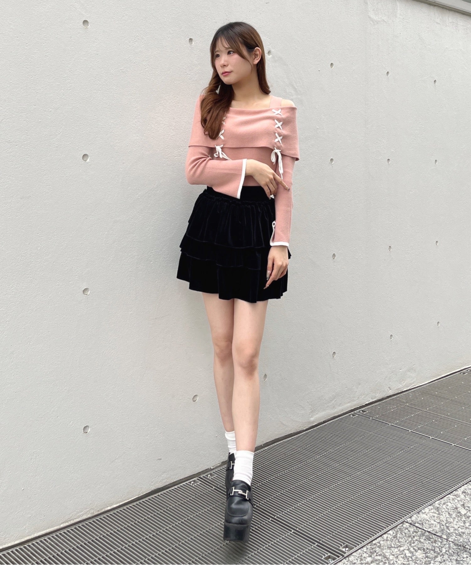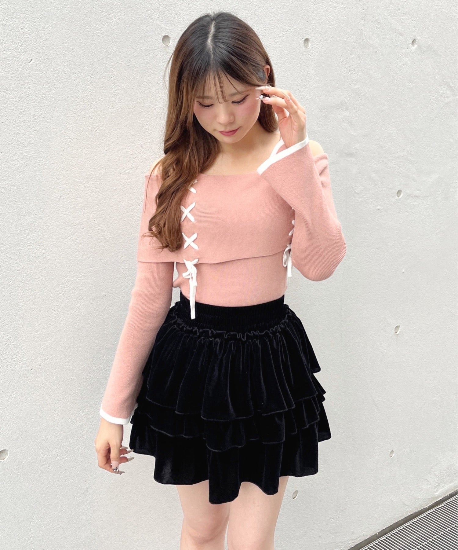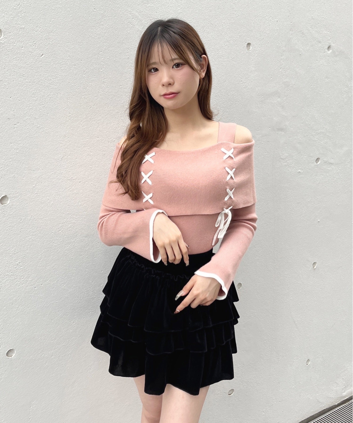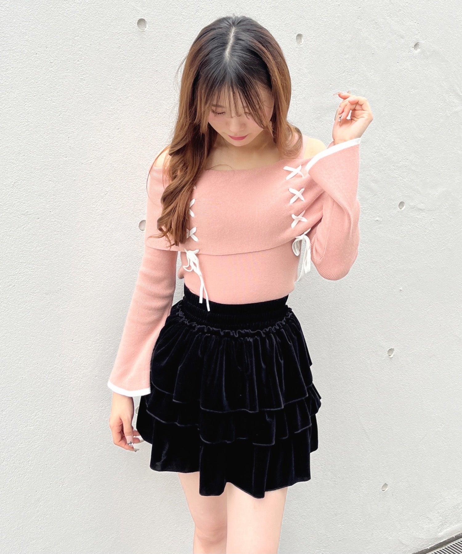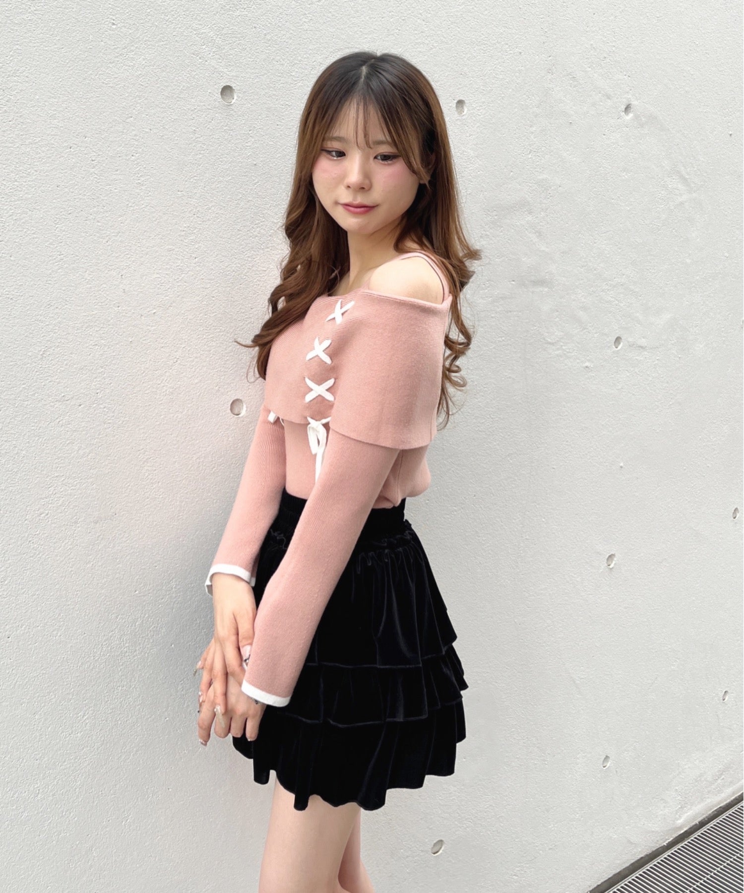 ・配色デザインのレーシングが可愛い秋冬大活躍のニット♡