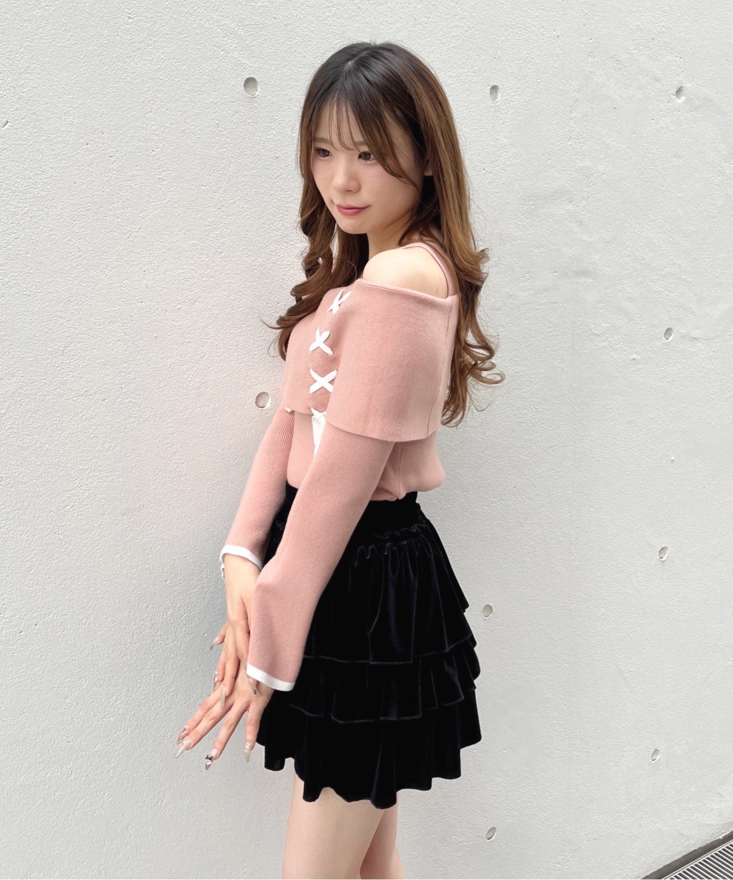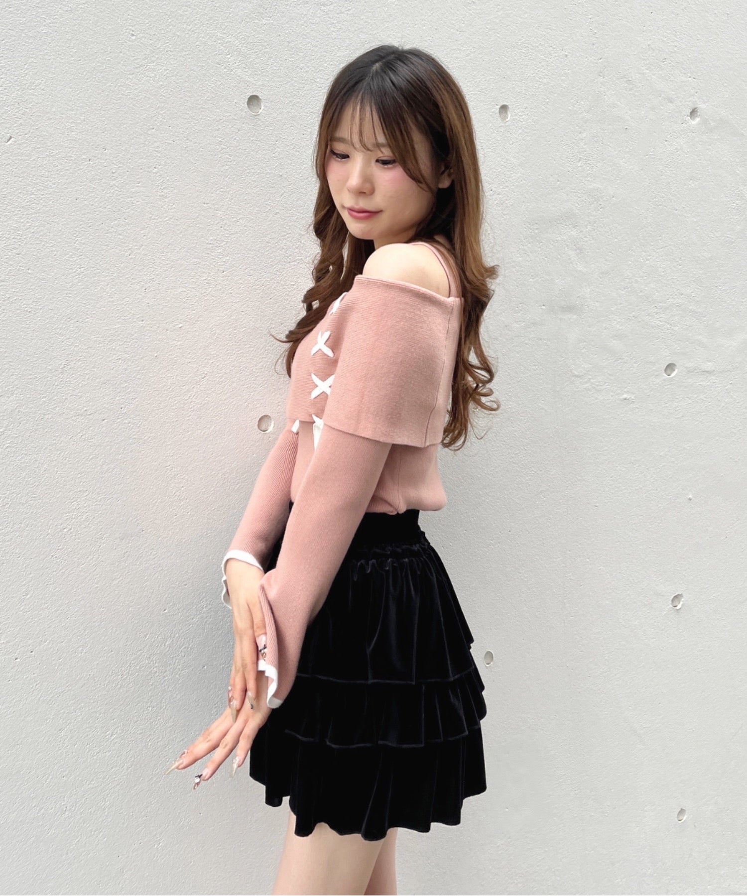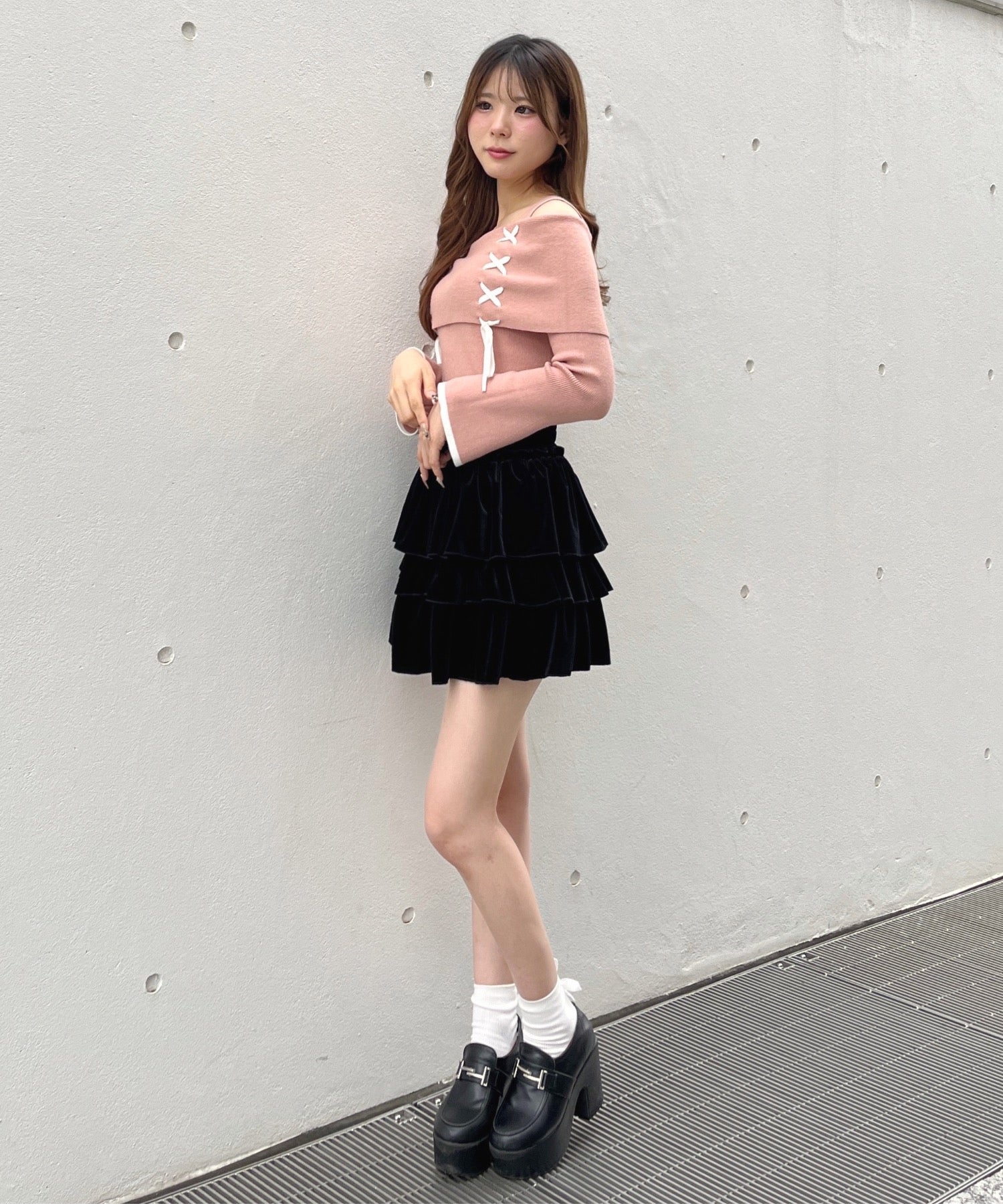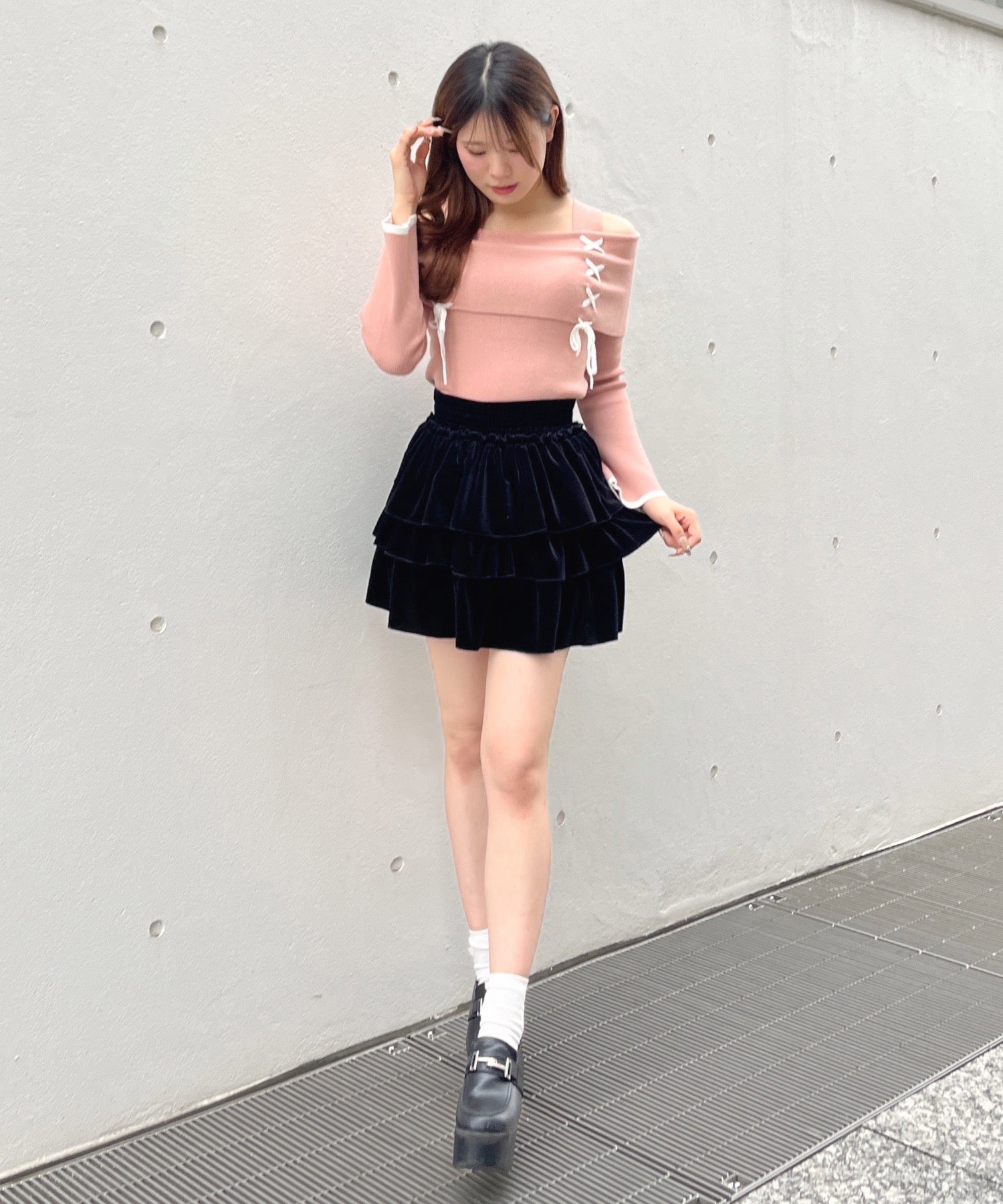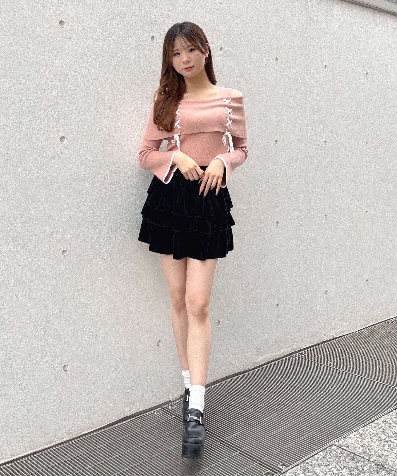 ・配色デザインのレーシングが可愛い秋冬大活躍のニット♡