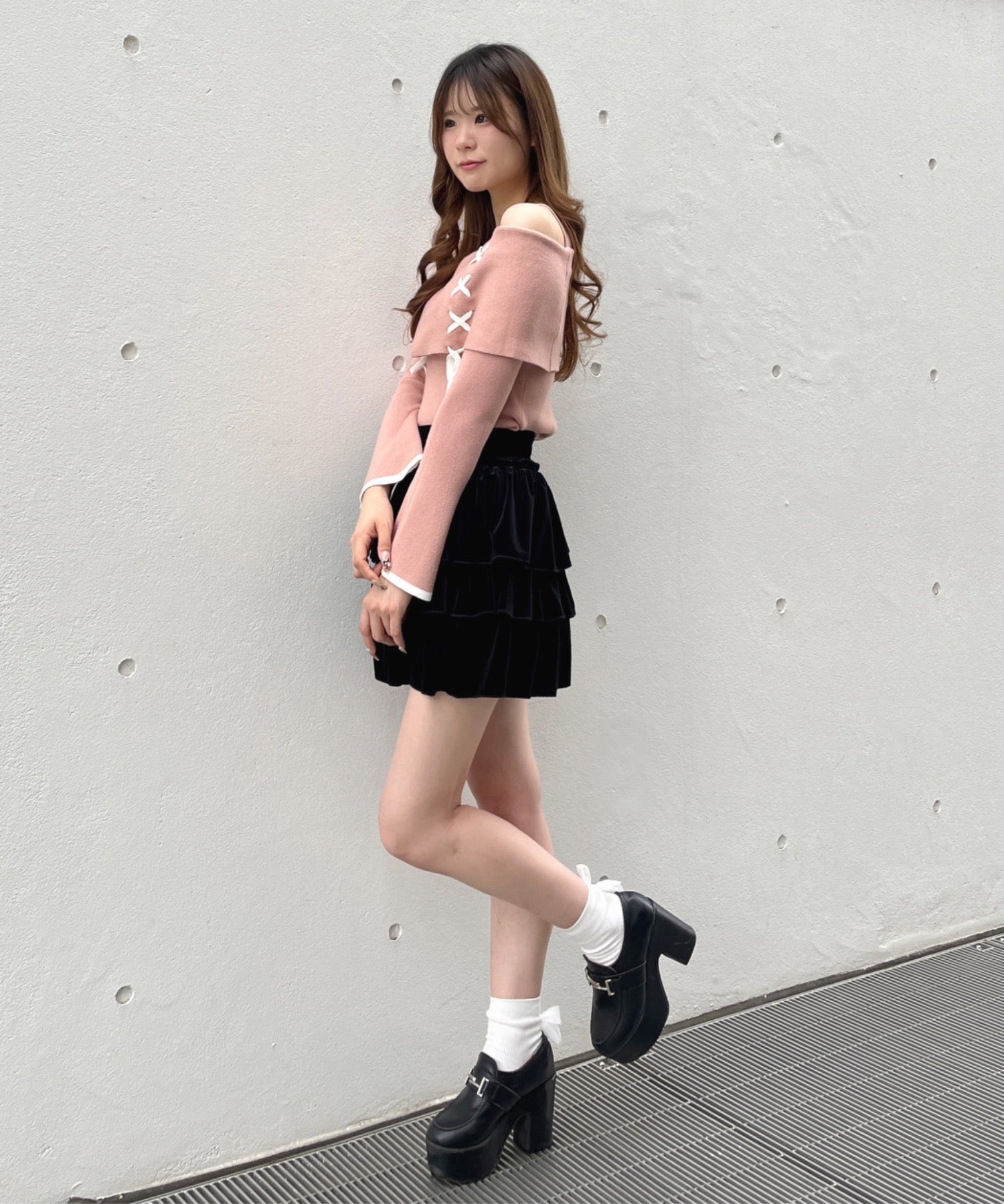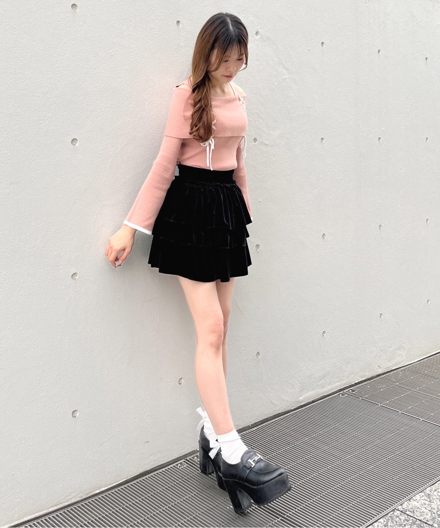 ・ミニ丈はもちろんマーメイドスカートなどのロングスカートと合わせた綺麗めコーデもおすすめ♡