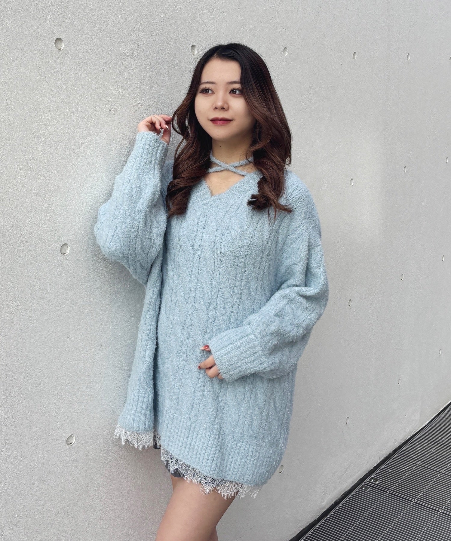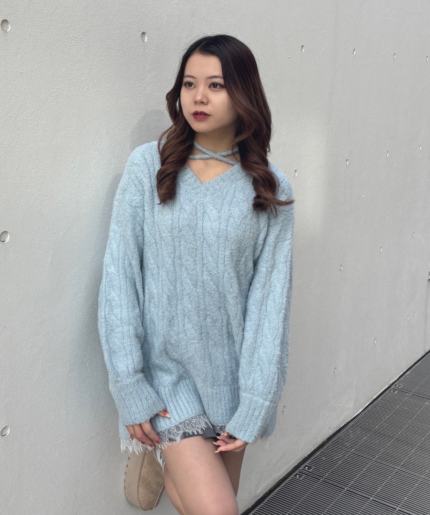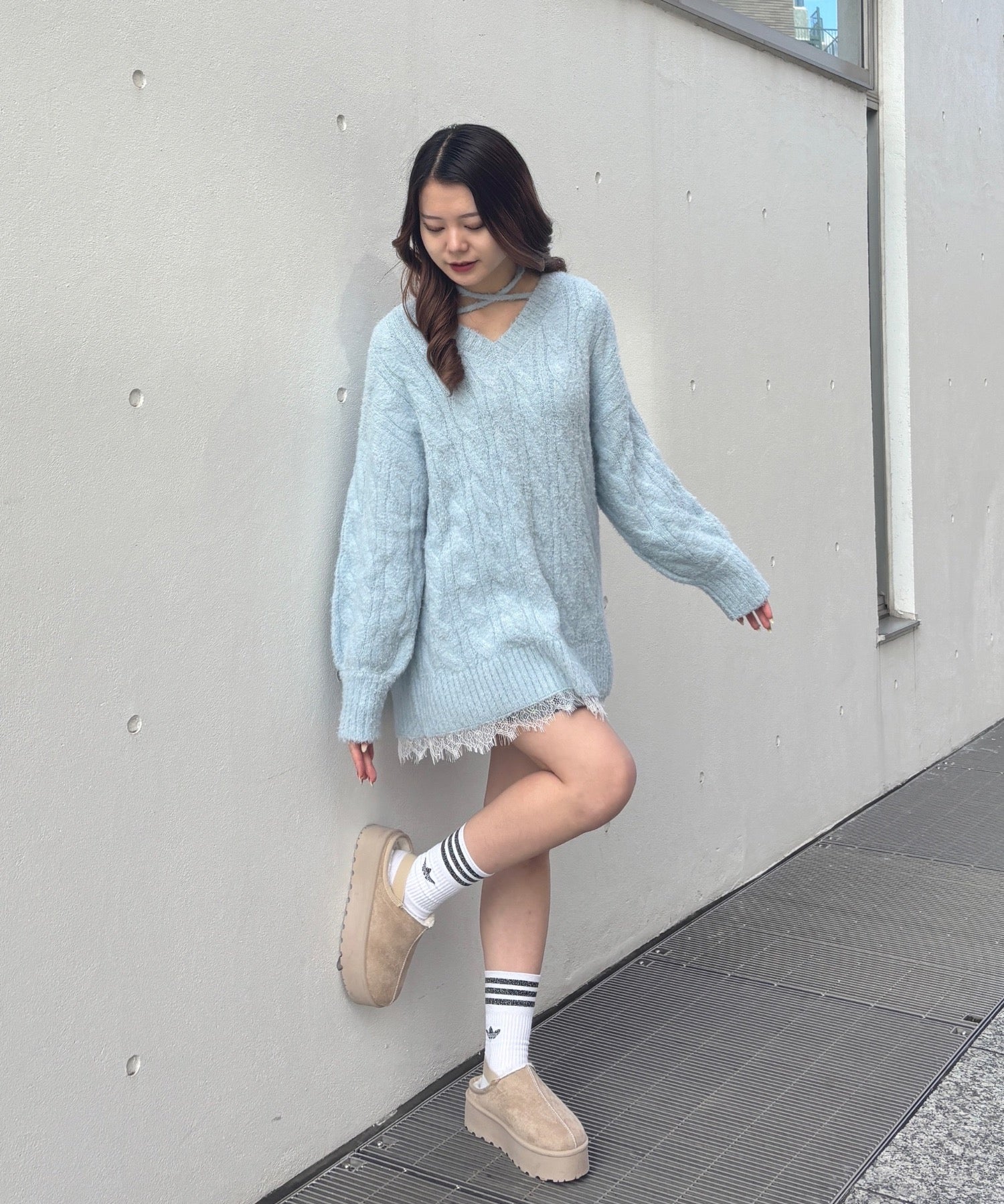 ・Vネックで着るとさりげないデコルテラインが大人っぽさをプラス♪