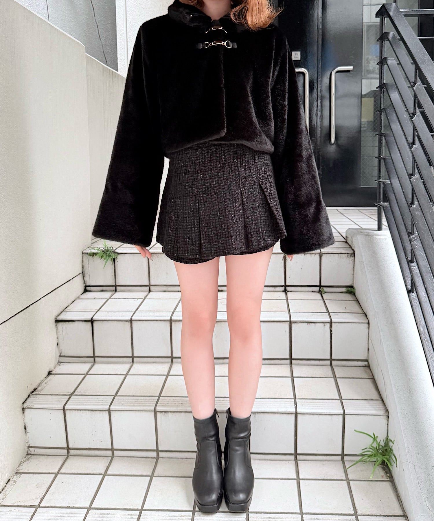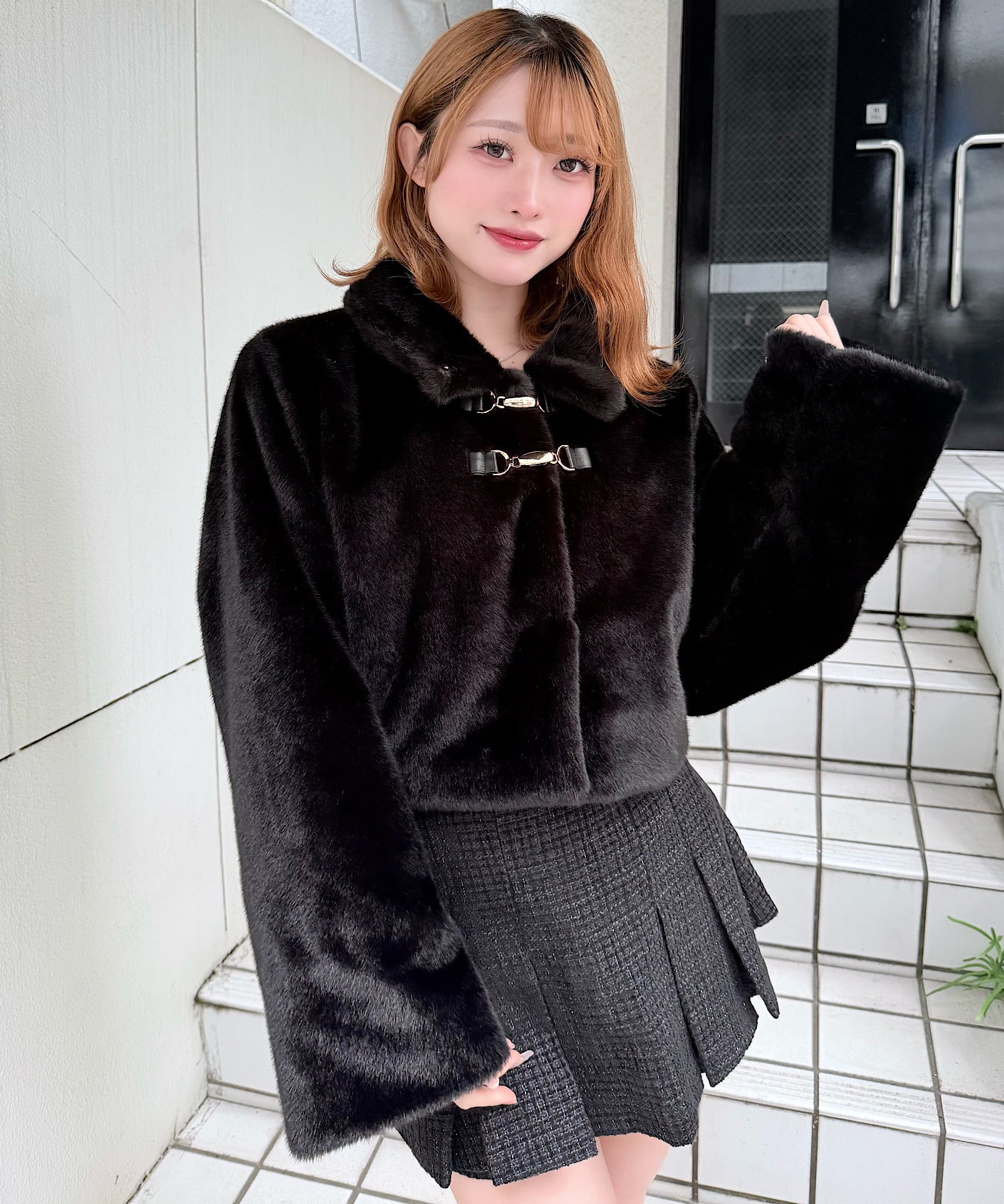 ・袖口は広めにボリューム感を持たせ、見頃はクロップド丈ですっきりと女性らしく見せてくれるファージャケット。