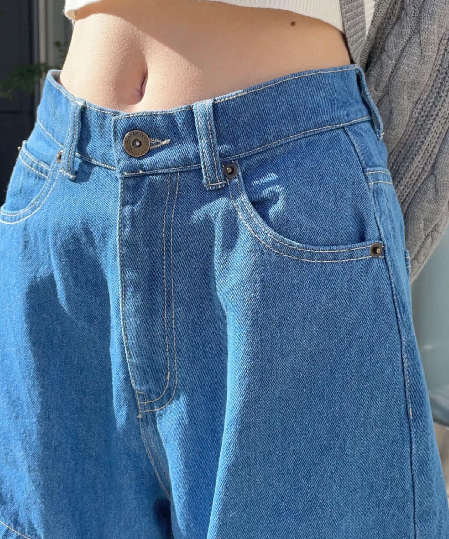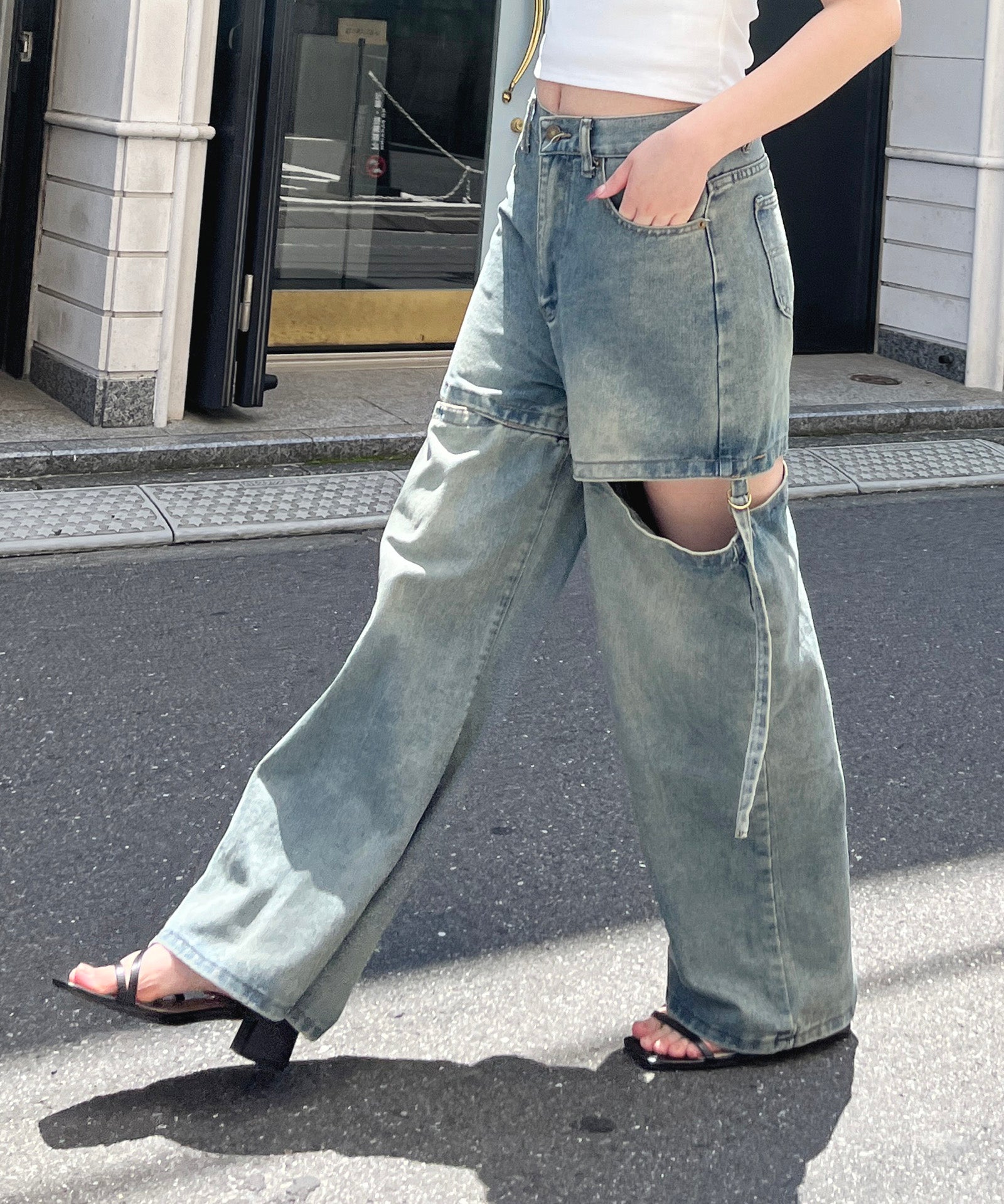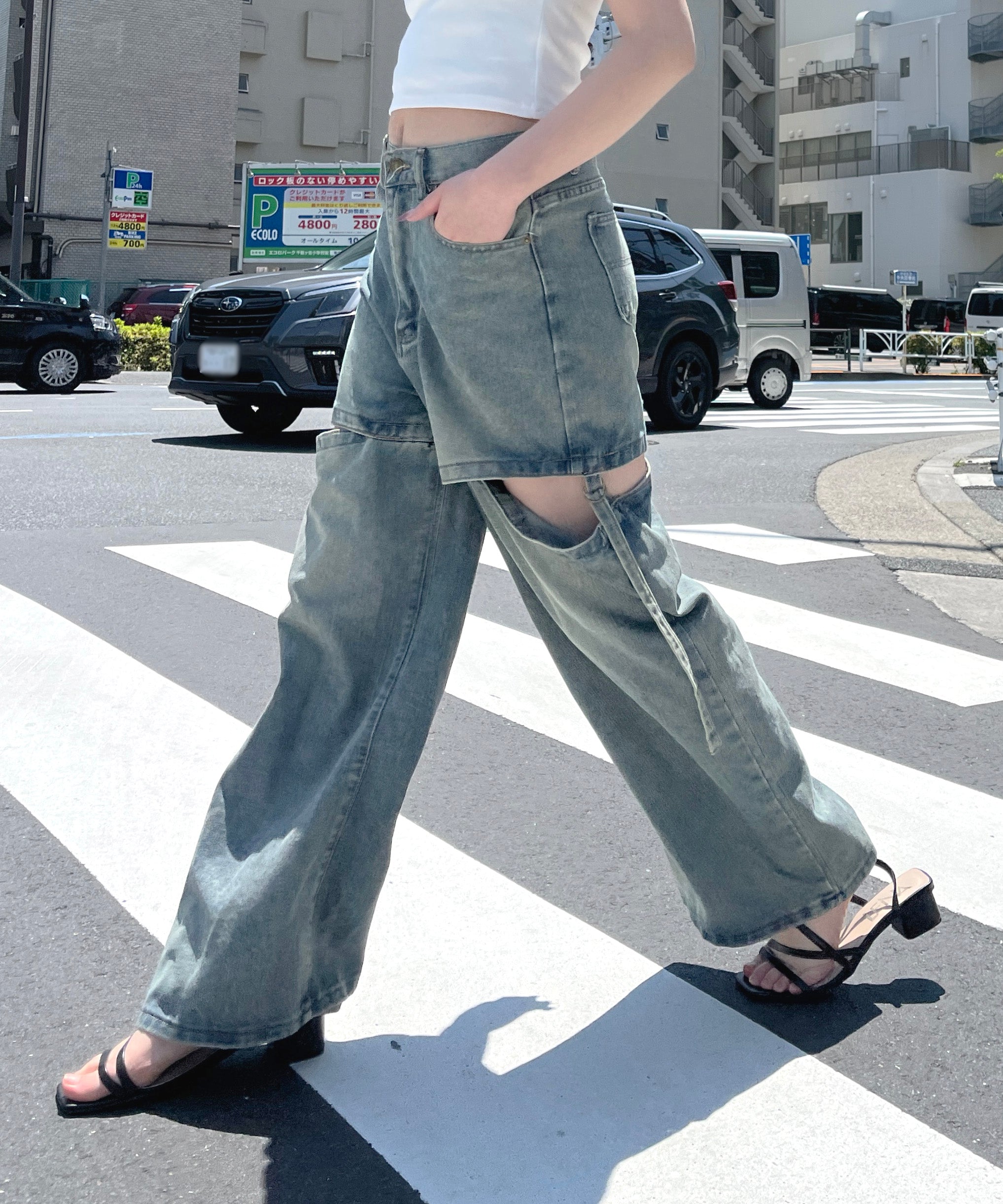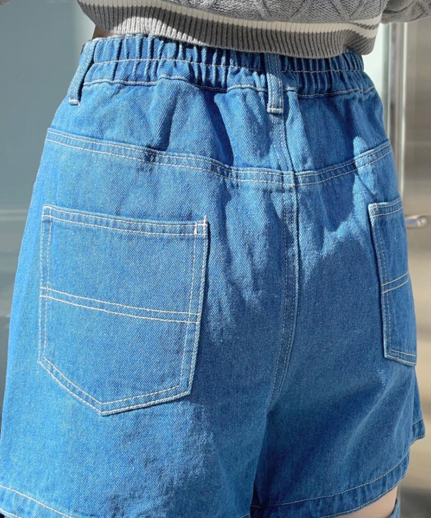 ・さりげない肌見せがさわやかなデニムワイドパンツ♡
