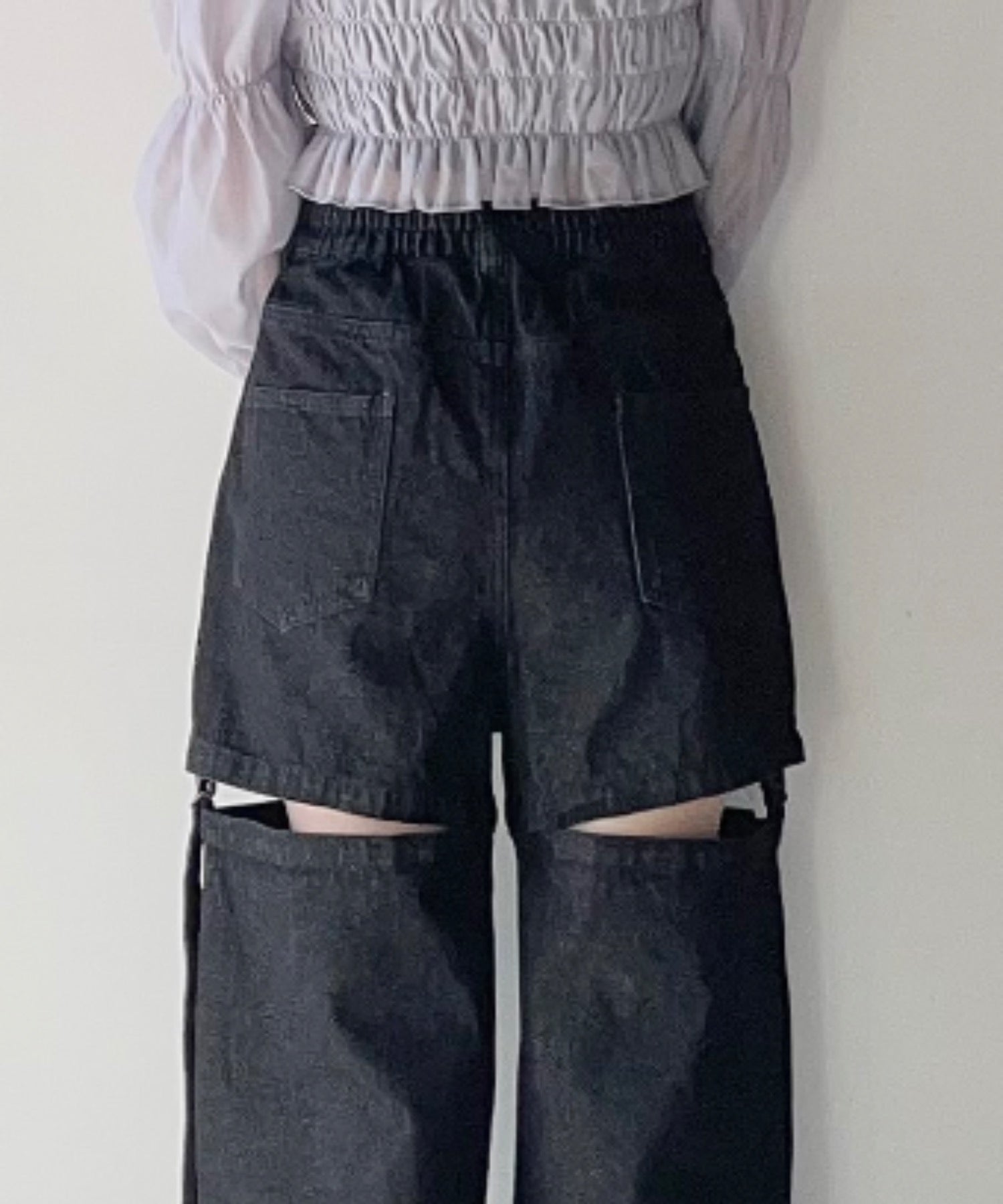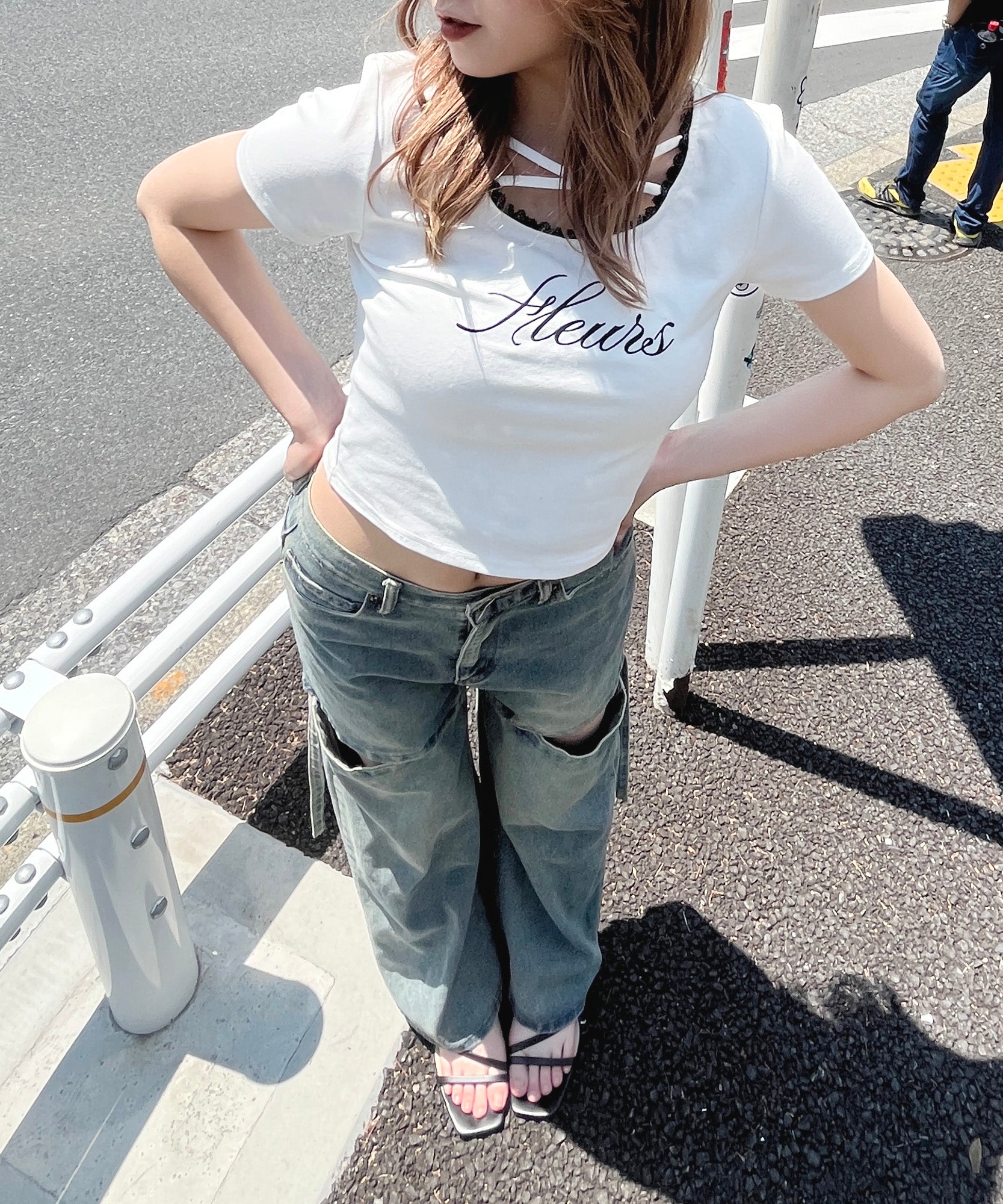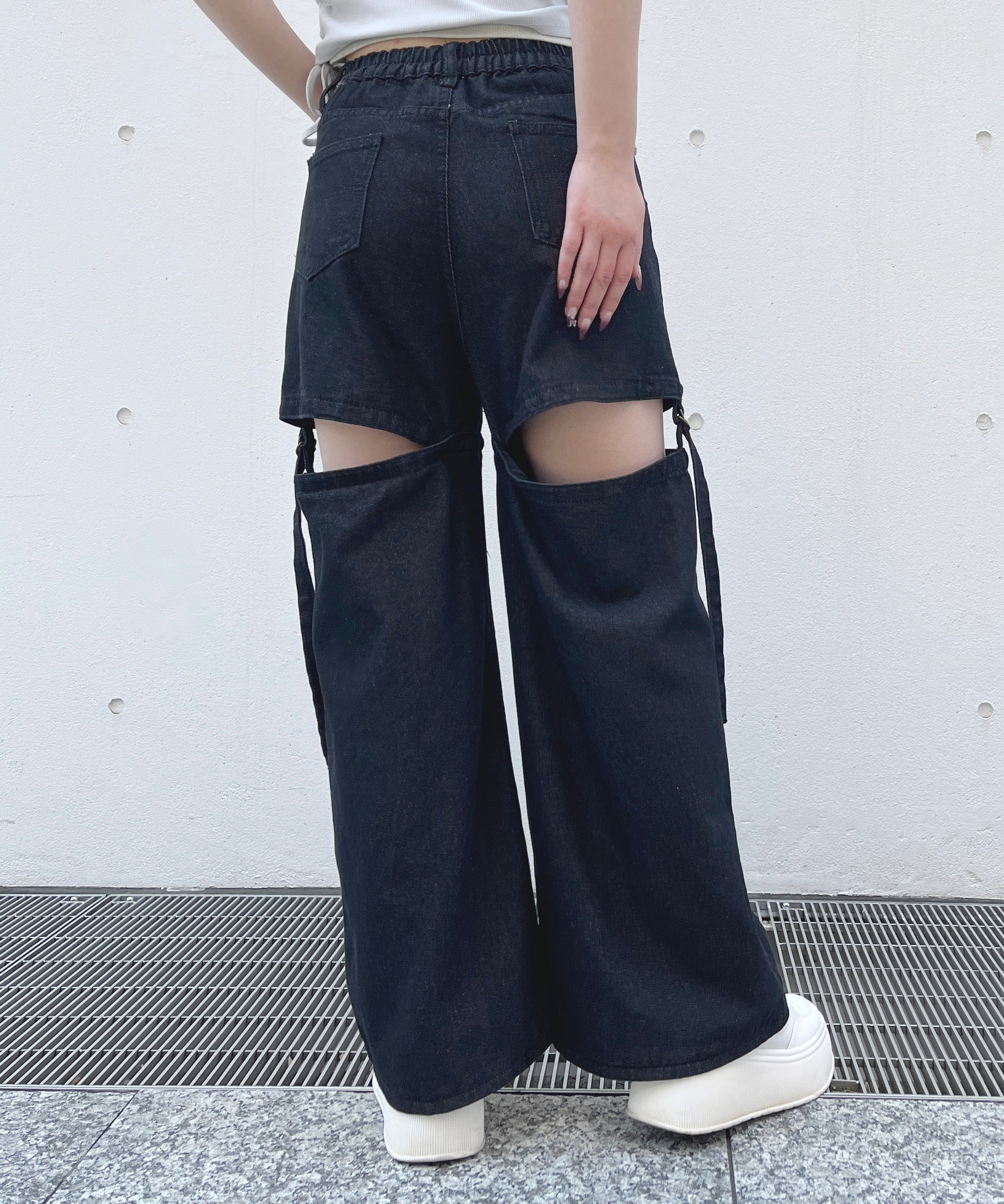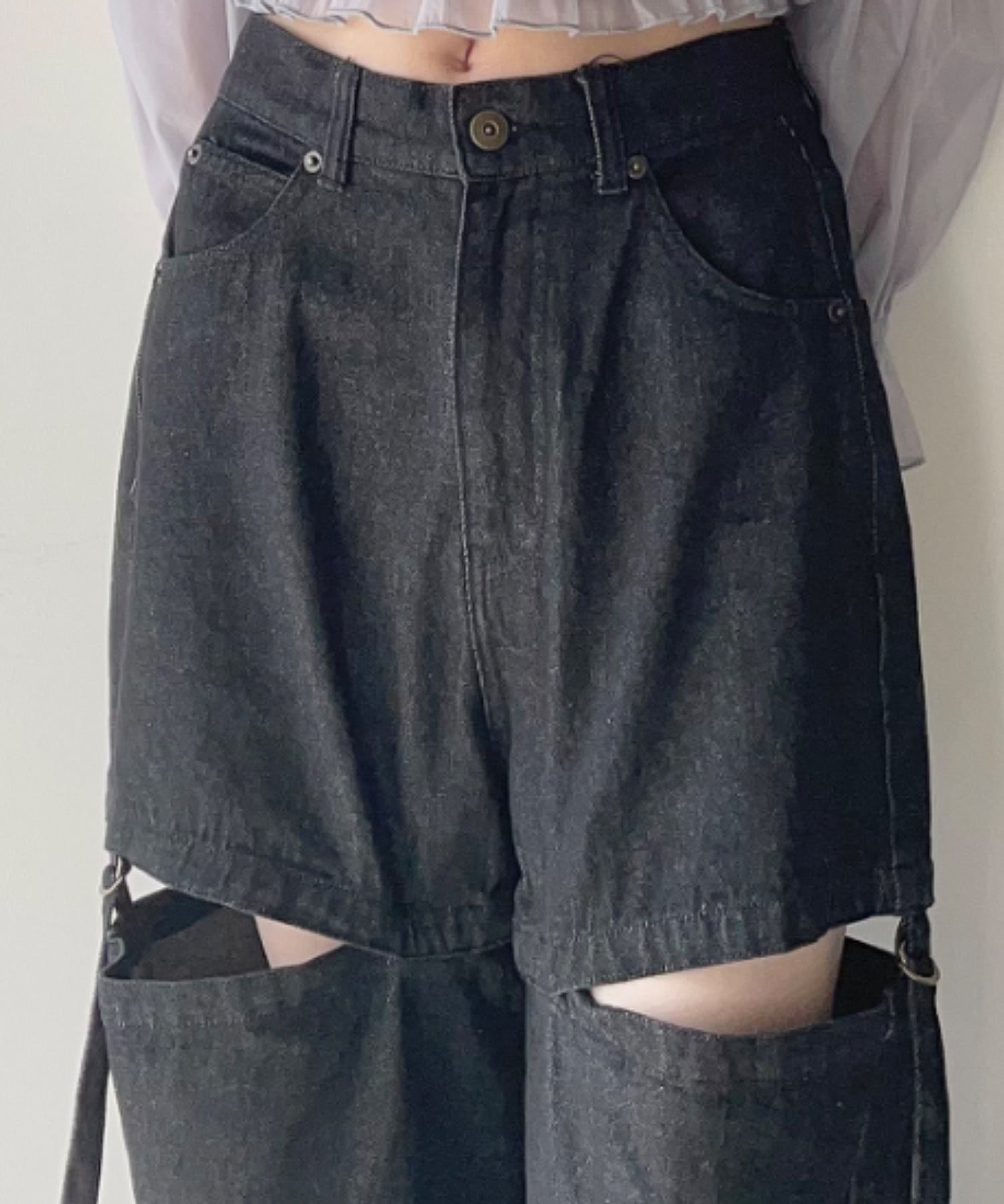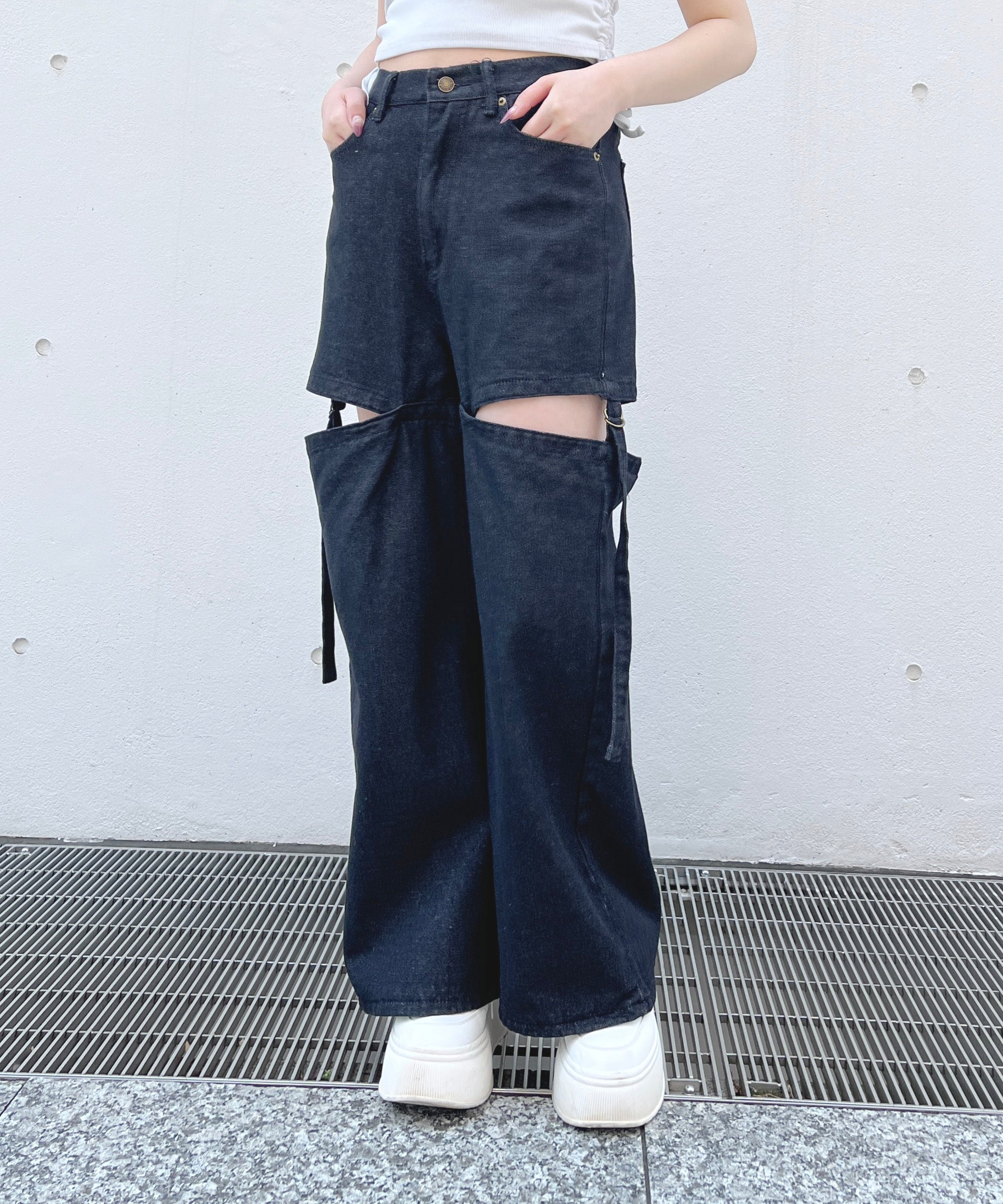 ・さりげない肌見せがさわやかなデニムワイドパンツ♡