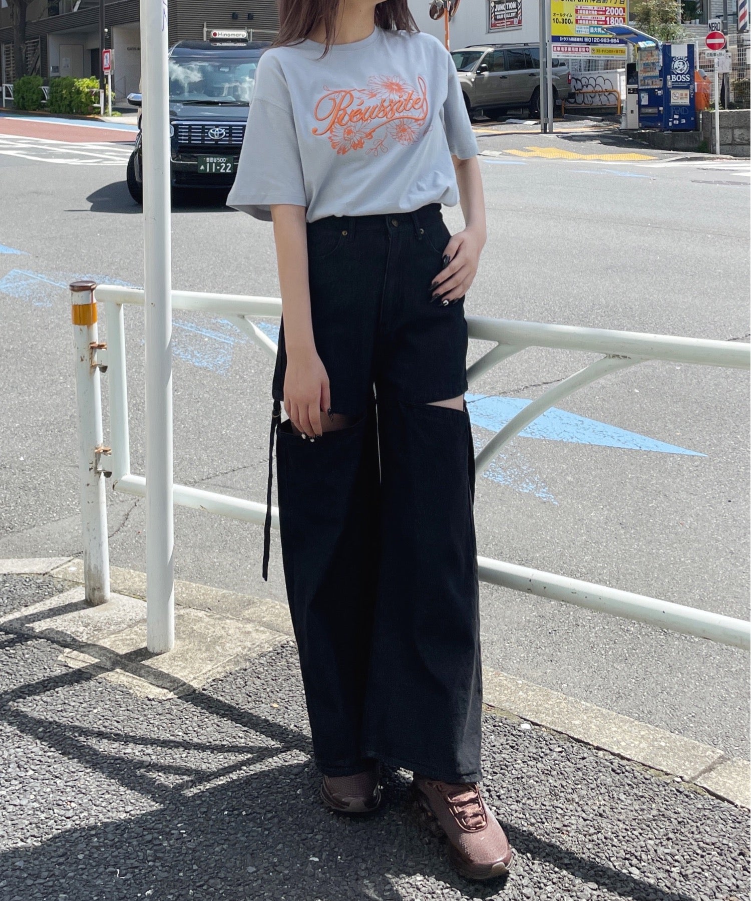 ・ワイドシルエット&ハイウエストデザインが、ウエストをすっきりと見せてくれます。