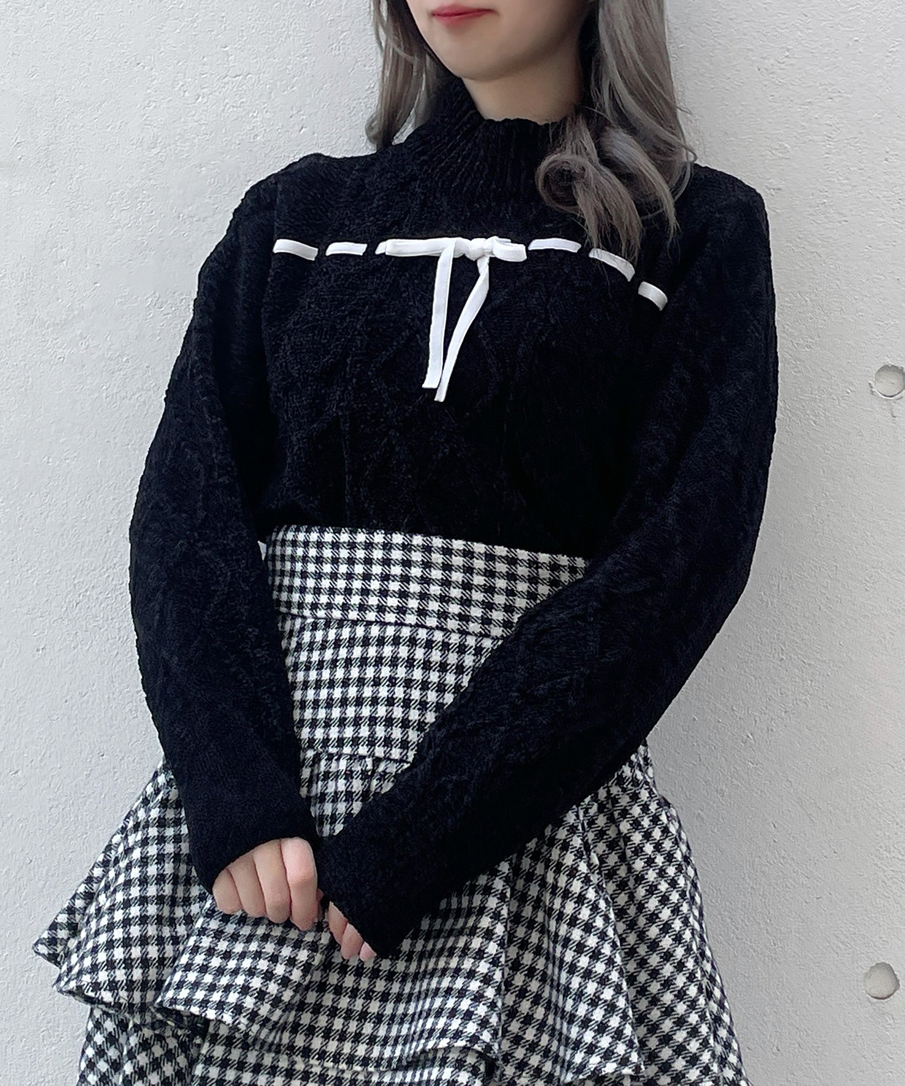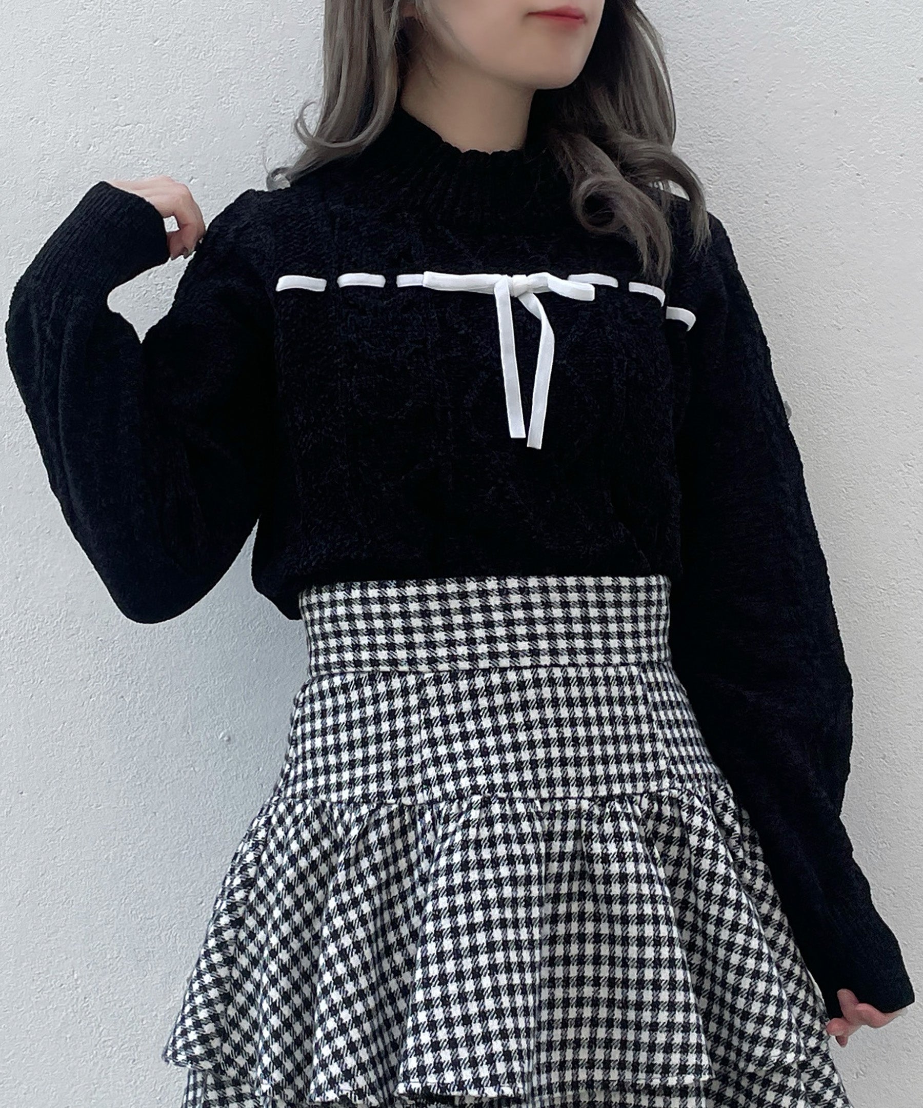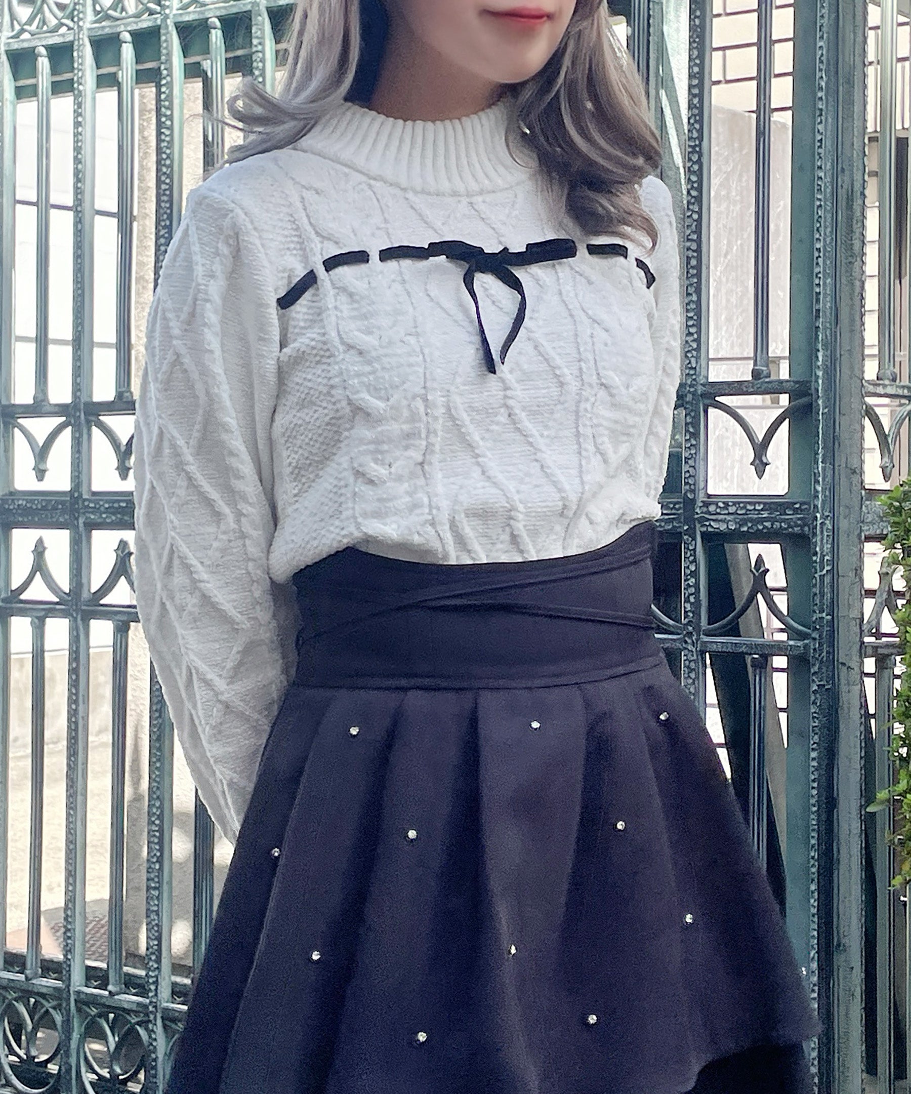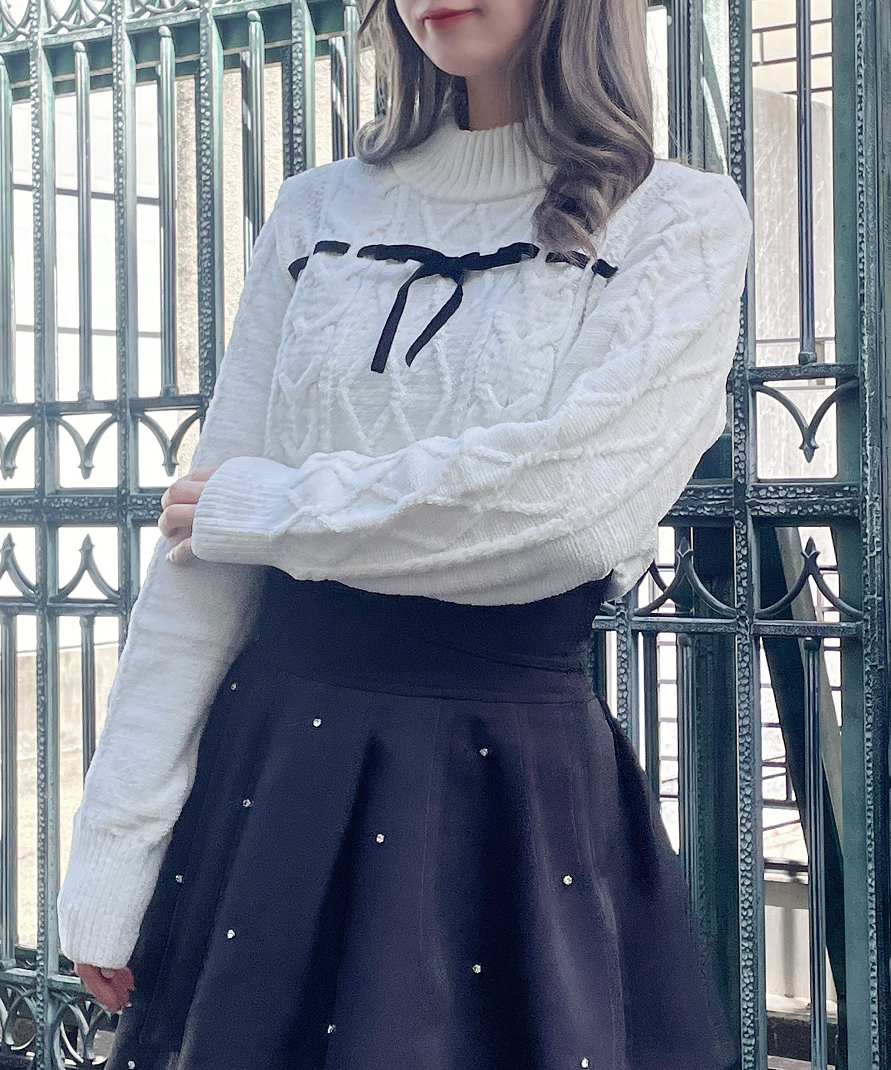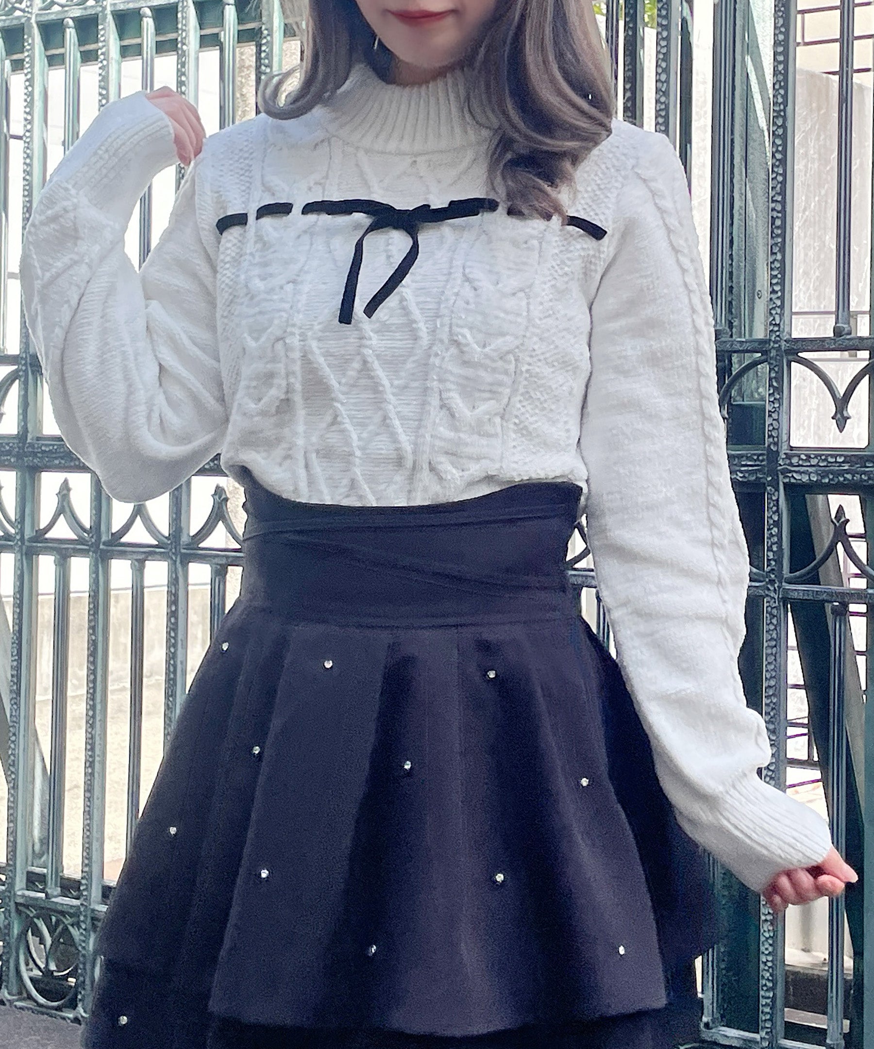 ・胸元のモールリボンがガーリーな印象で冬に大活躍の万能ニット♡