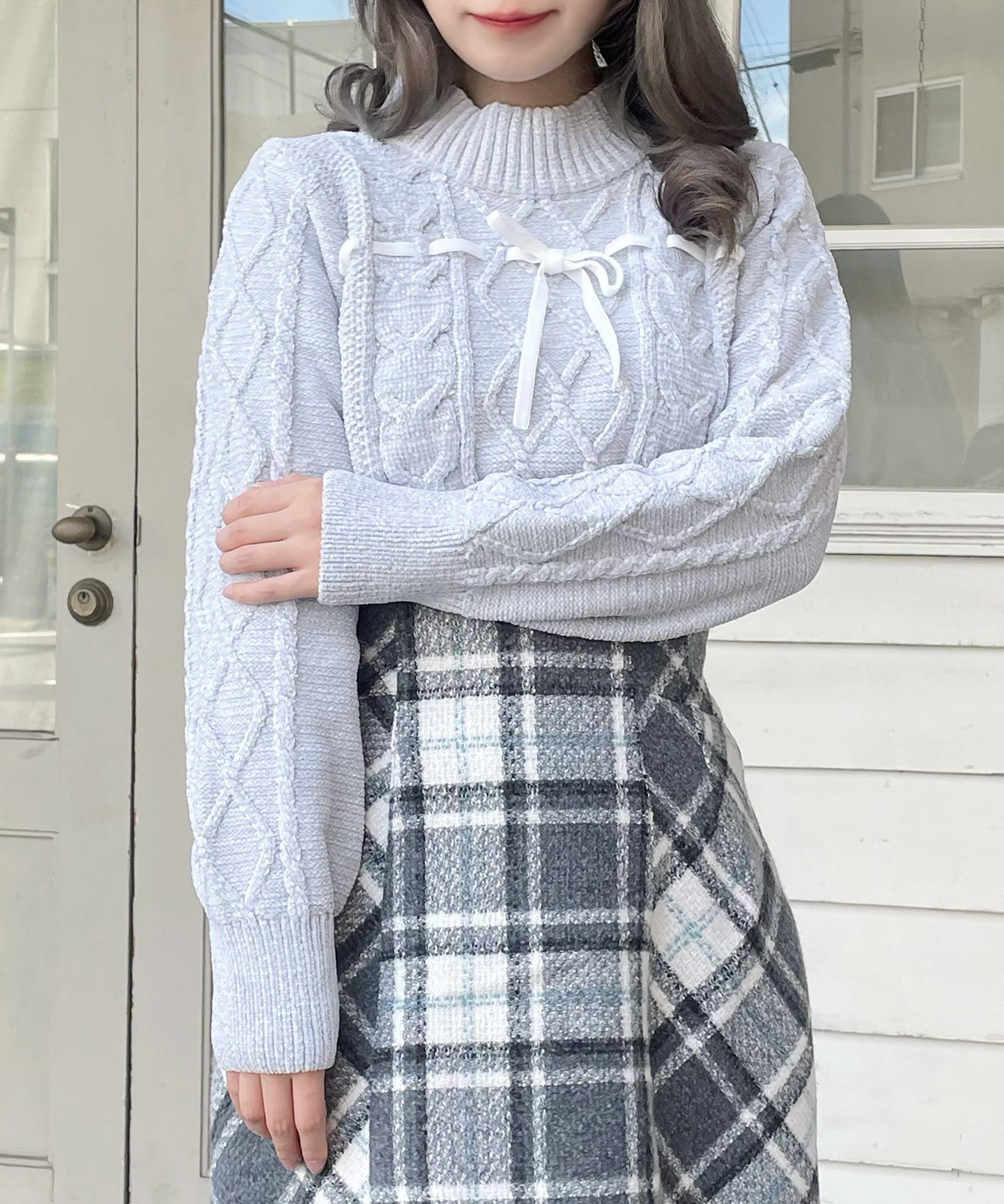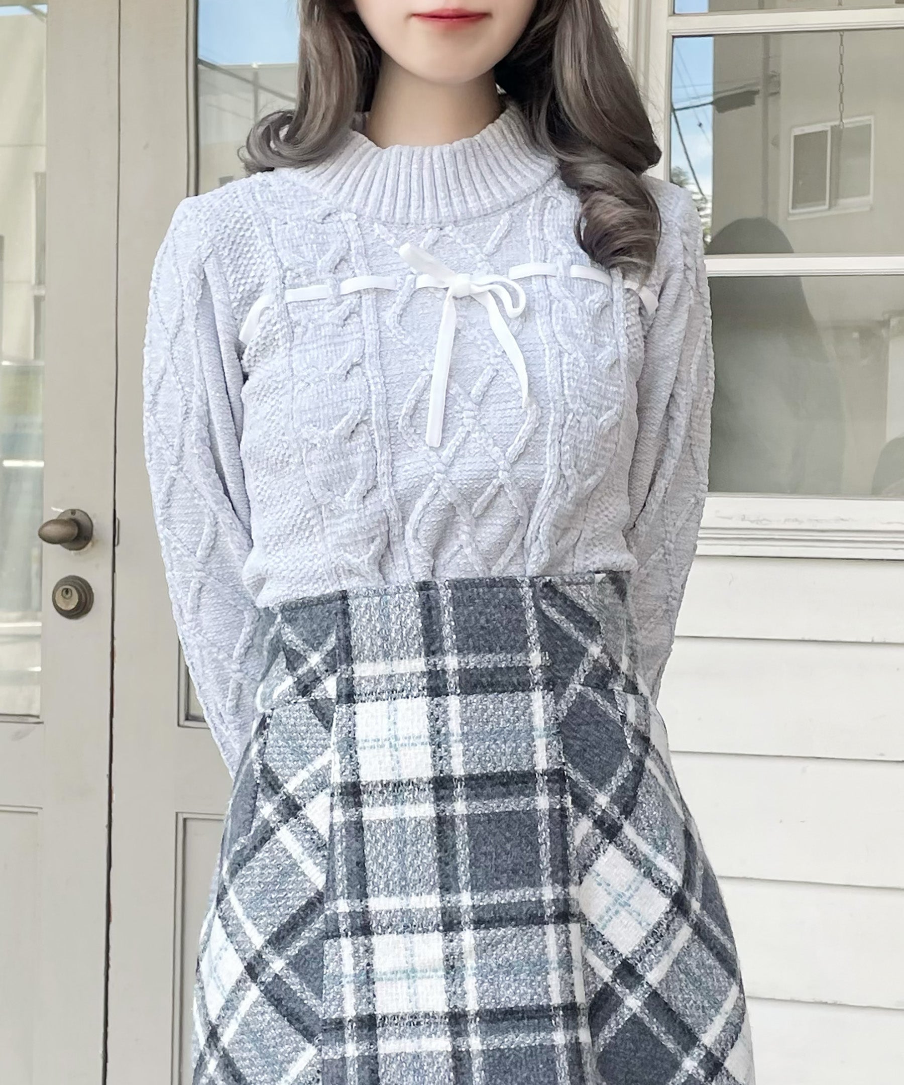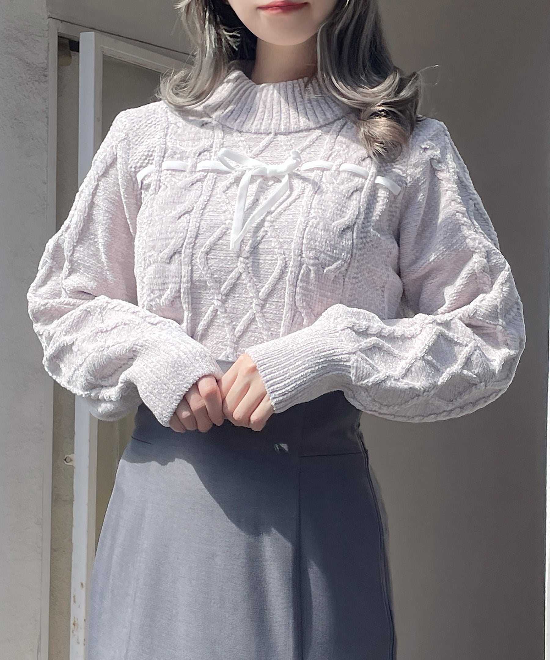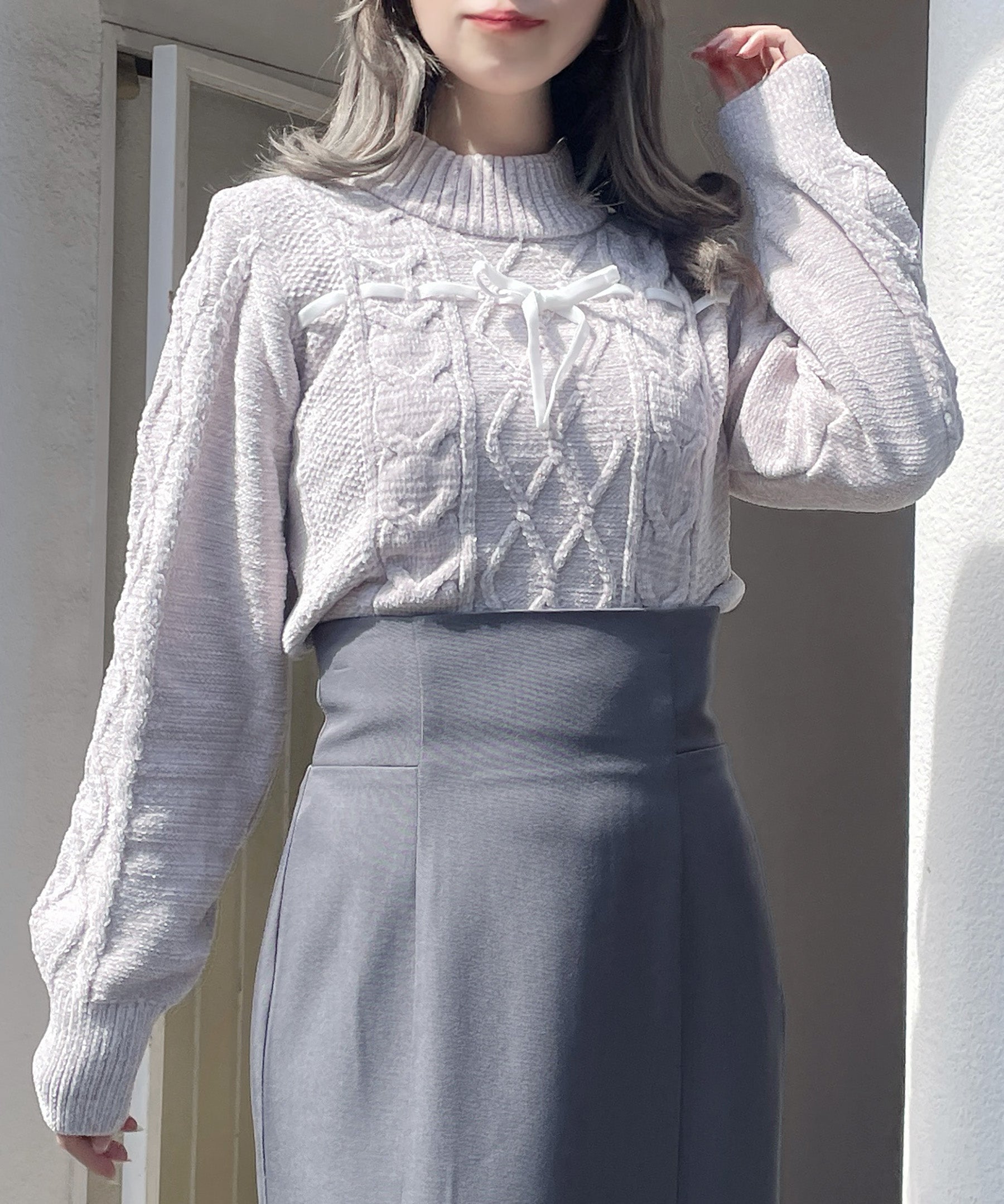 ・胸元のモールリボンがガーリーな印象で冬に大活躍の万能ニット♡