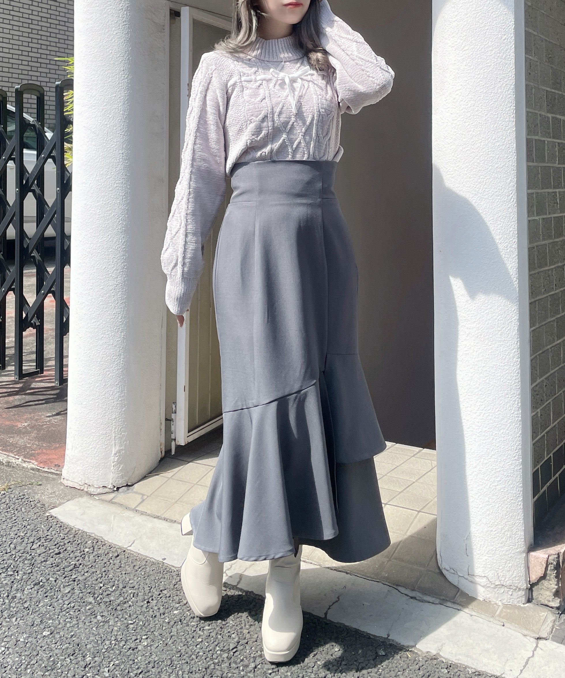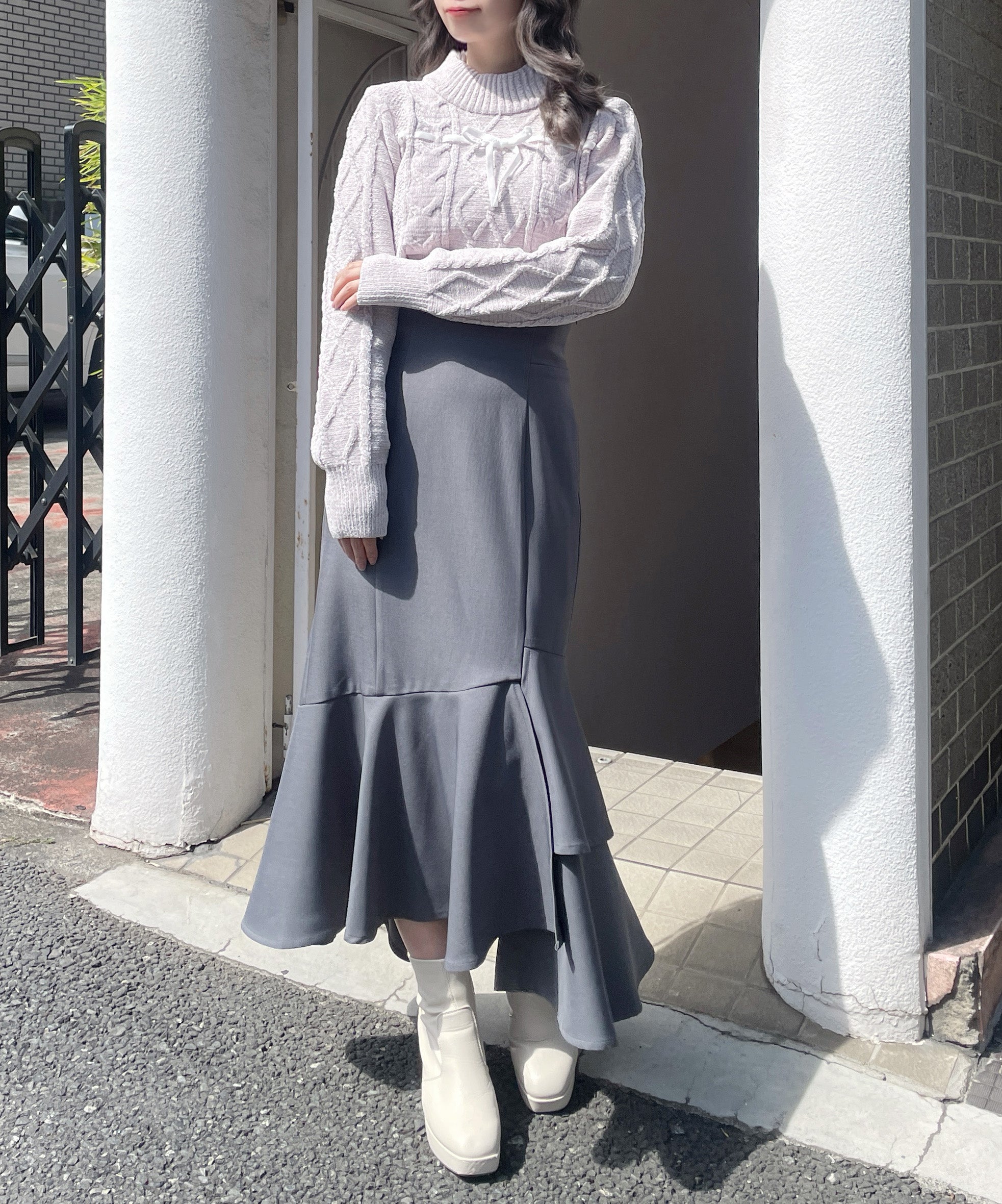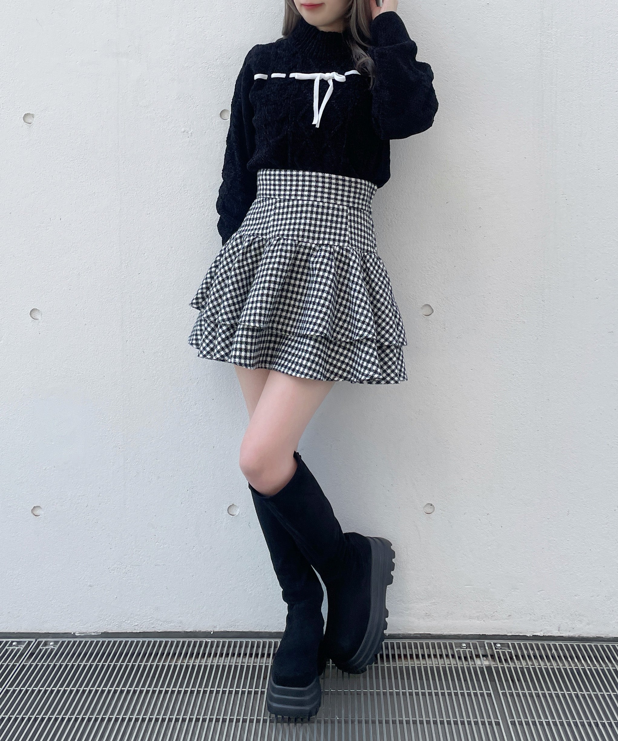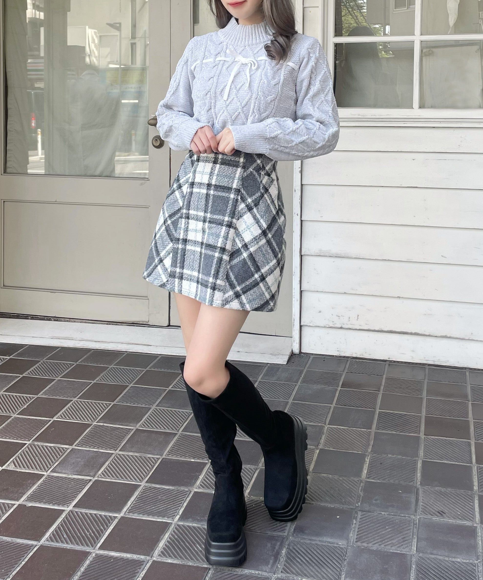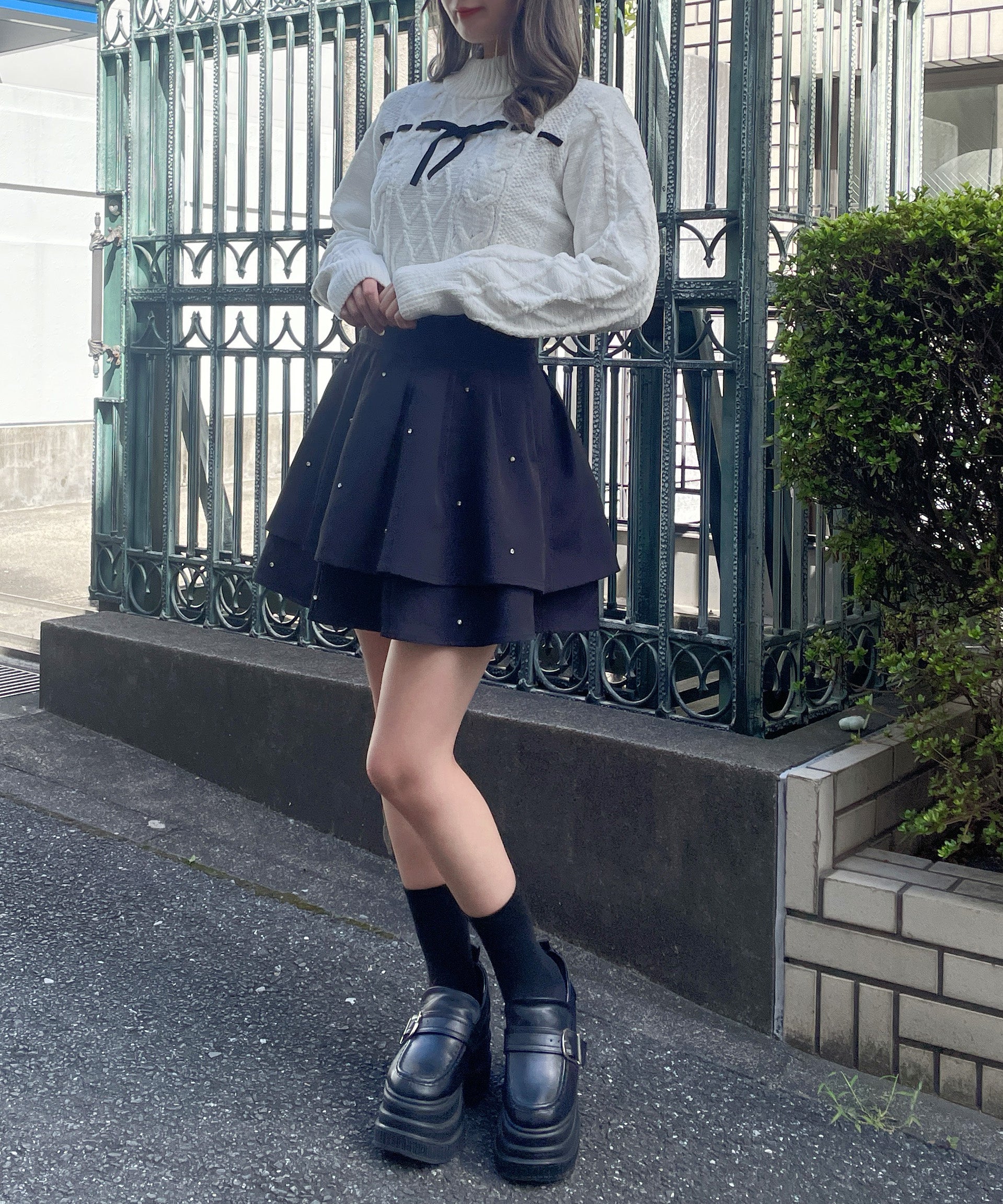 ・胸元のモールリボンがガーリーな印象で冬に大活躍の万能ニット♡