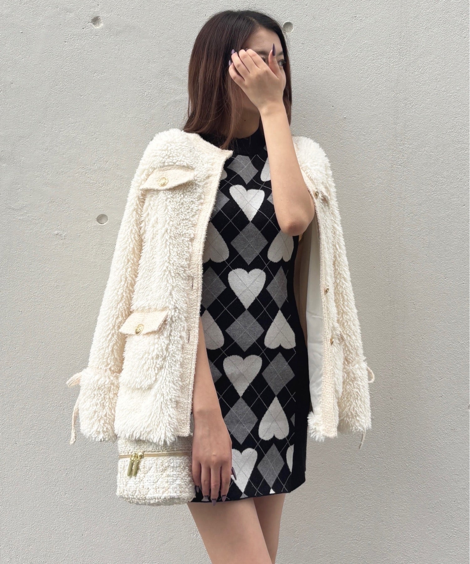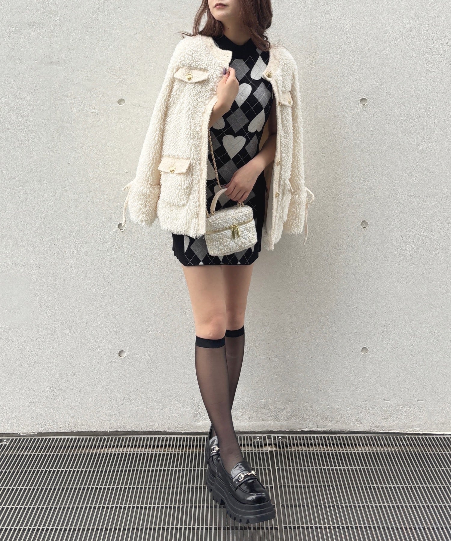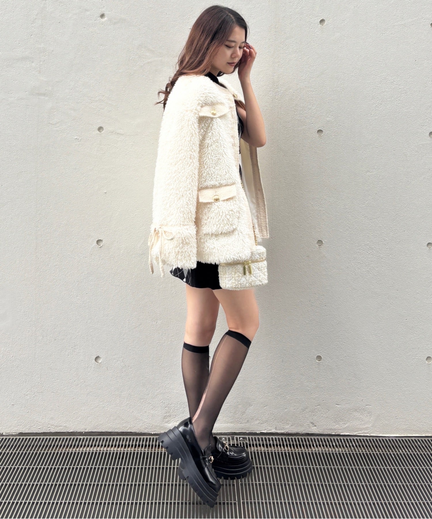 ・ツイード生地の部分の光沢がキラキラしていて冬に映えるデザイン♩