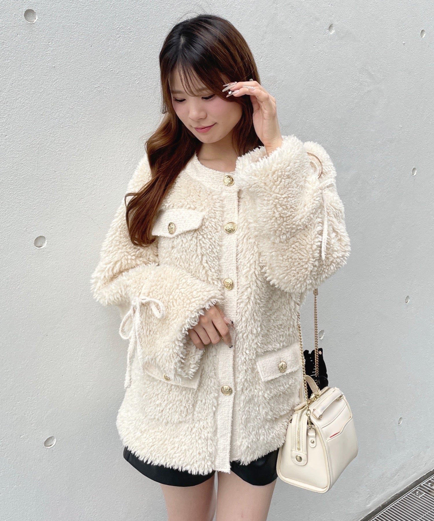 【予約商品 11月下旬発送】ノーカラーボアジャケット