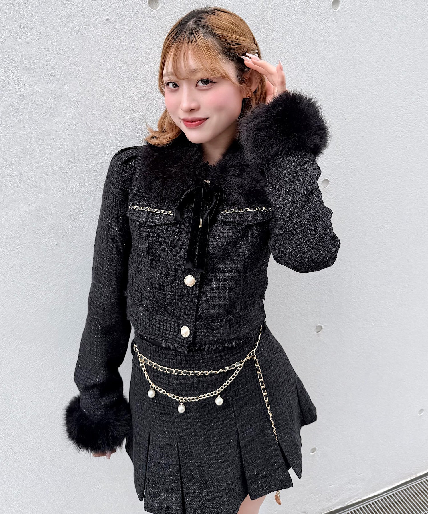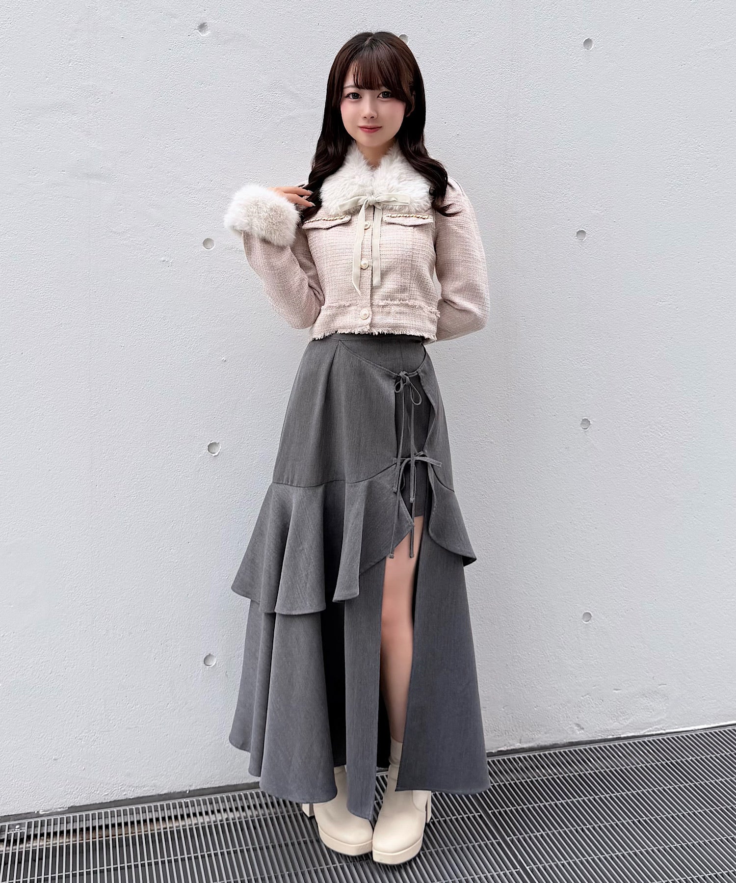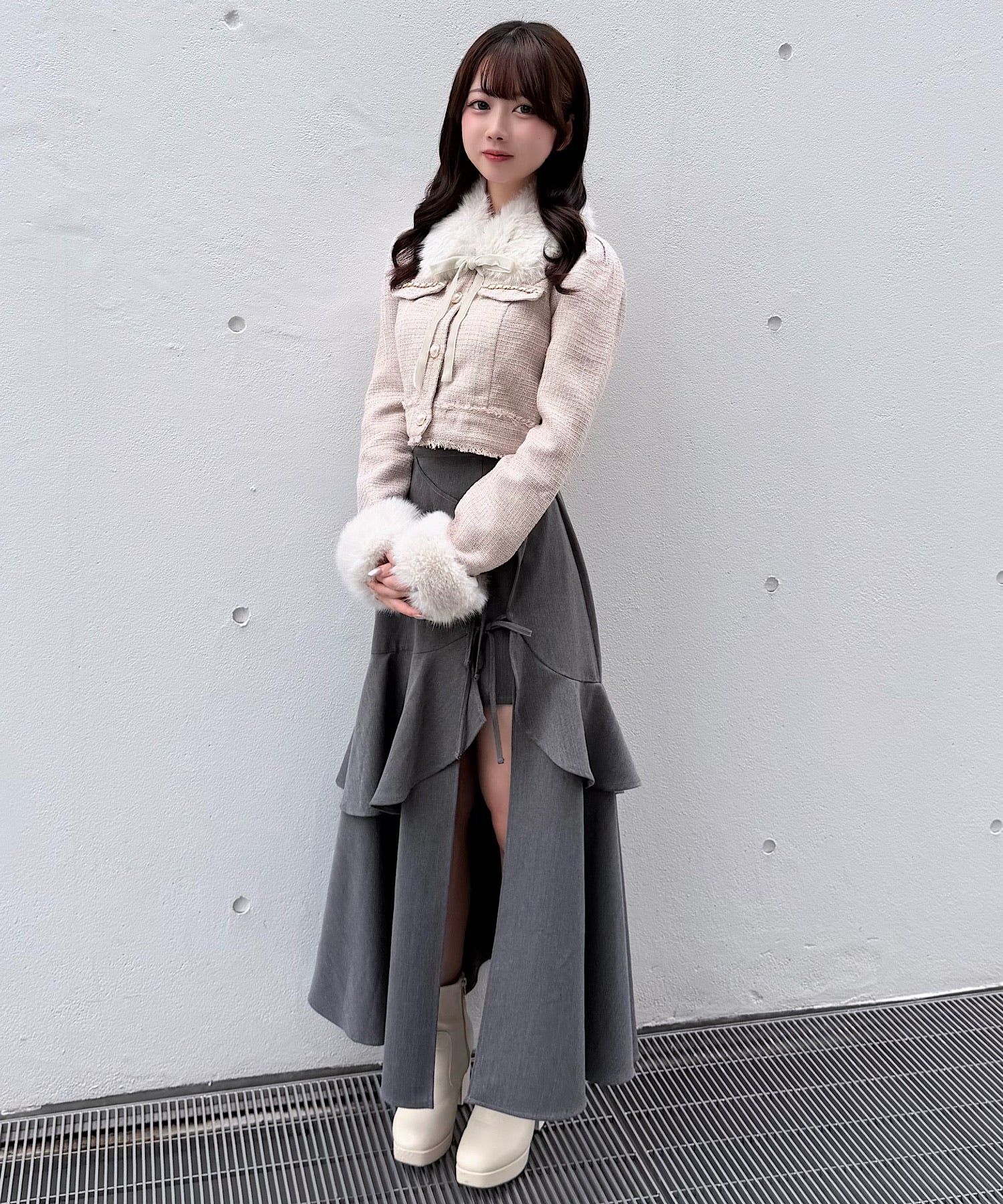 ・ファーのつけ衿と袖が可愛い♡どちらも取り外し可能です◎