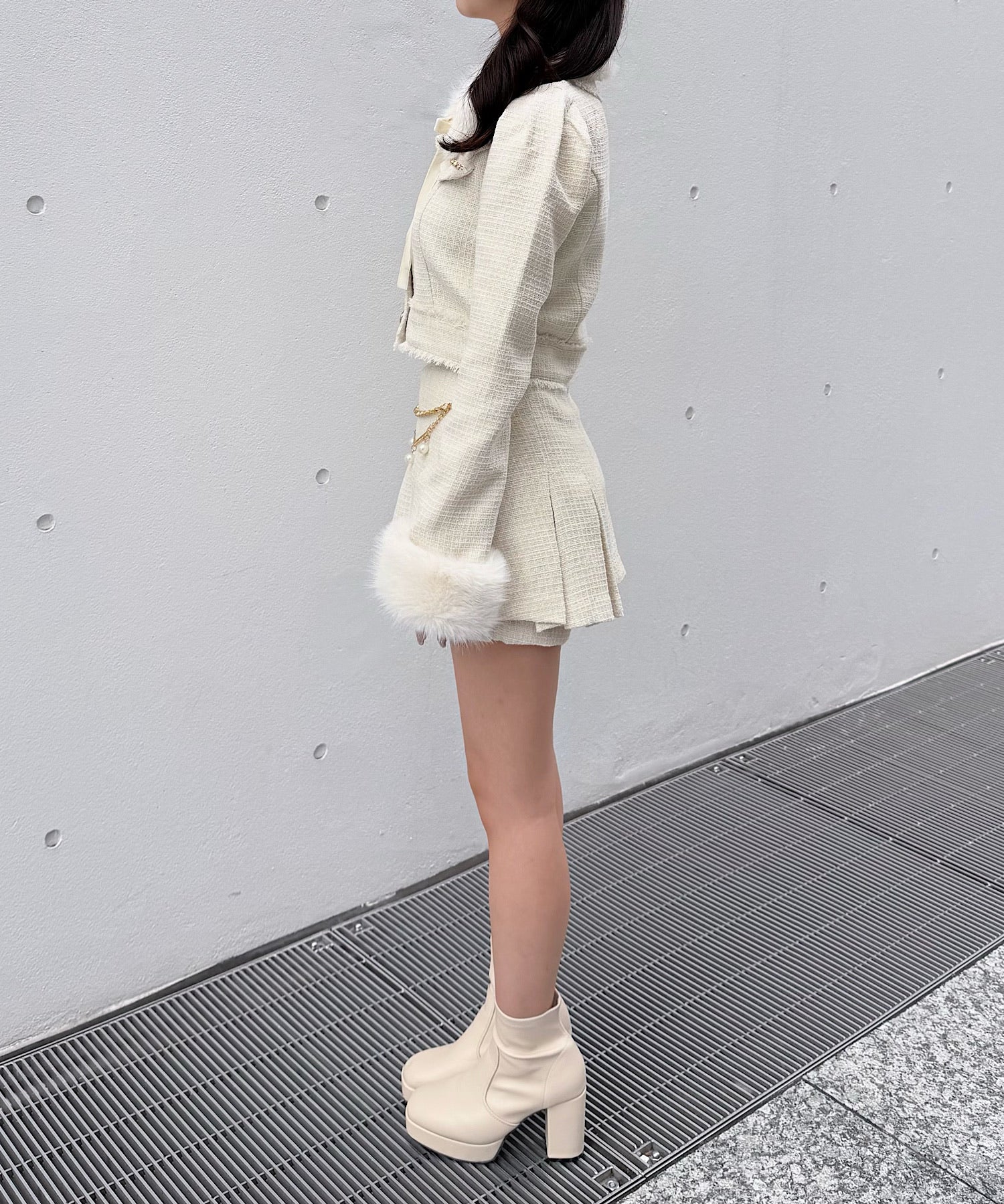 【予約商品11月上旬お届け予定】ファーノーカラーツィードジャケット