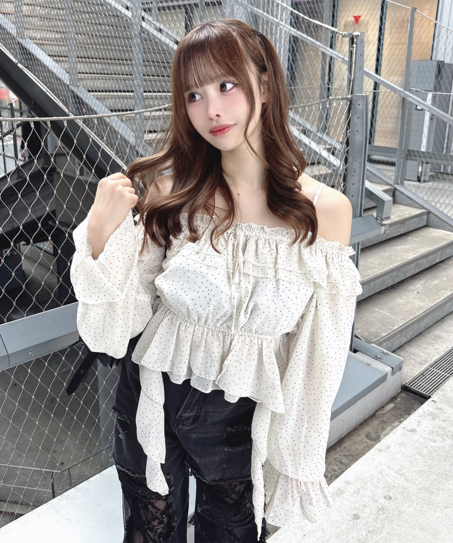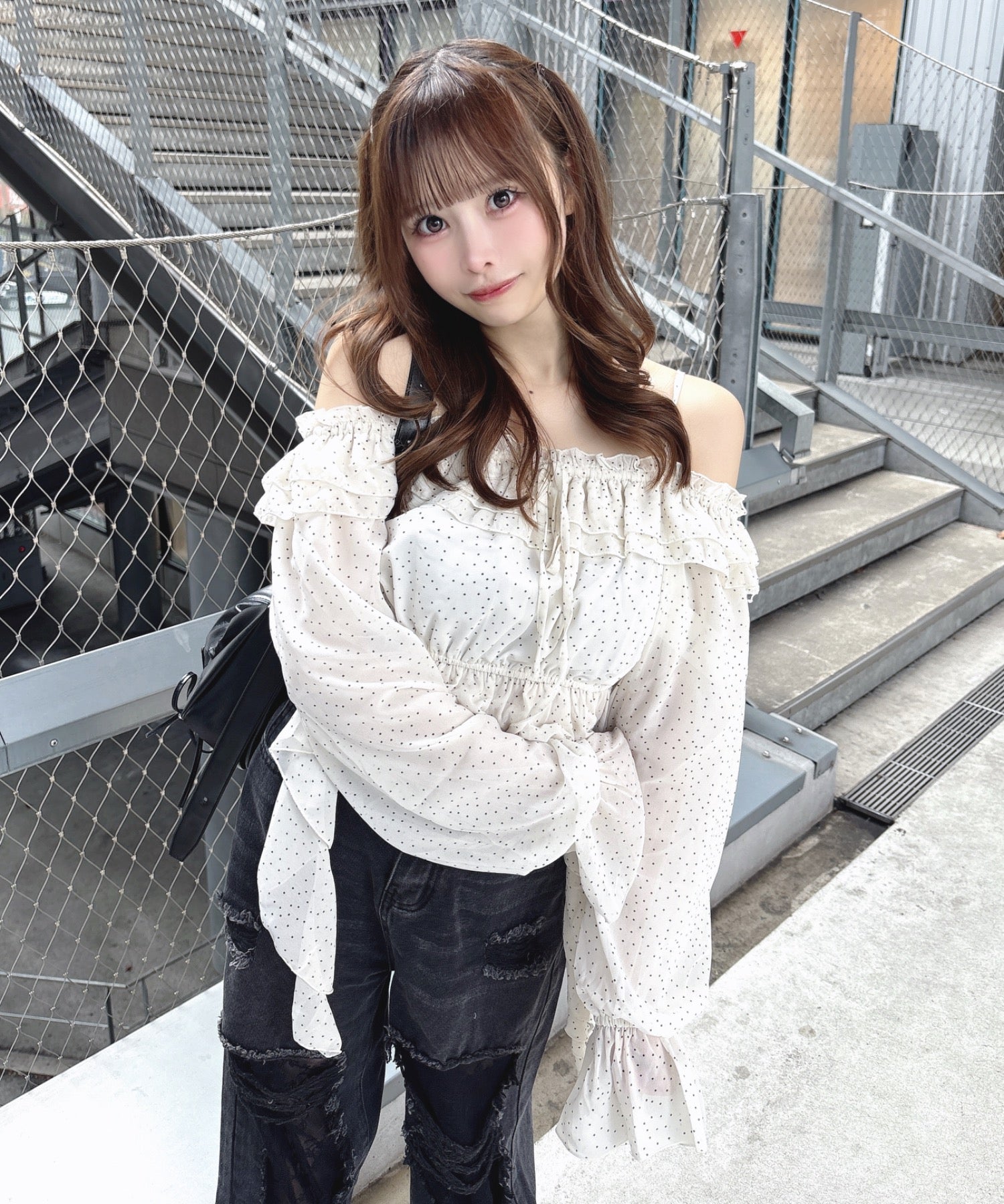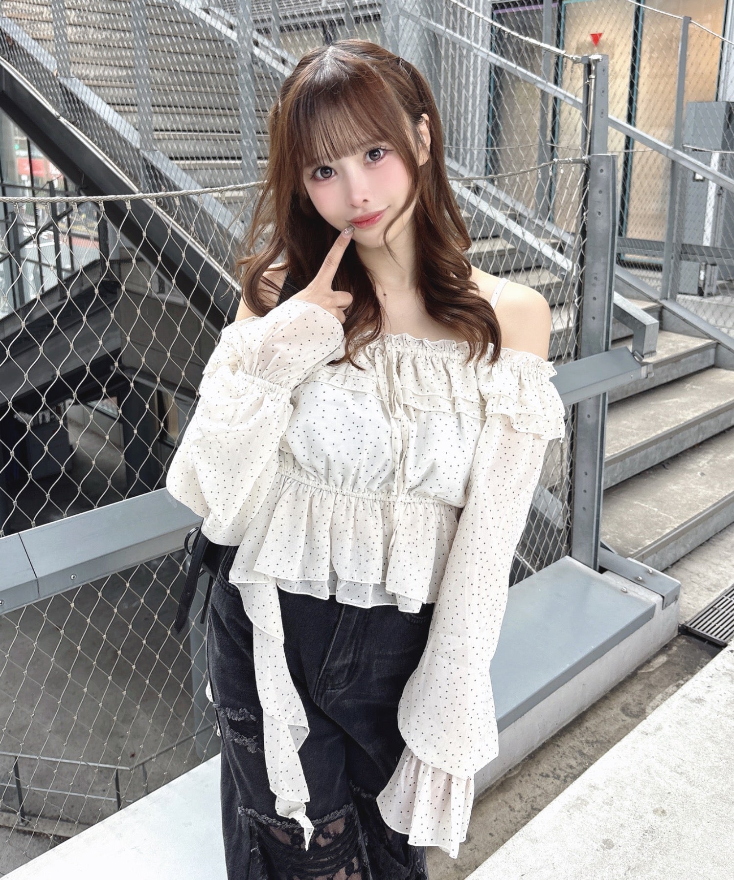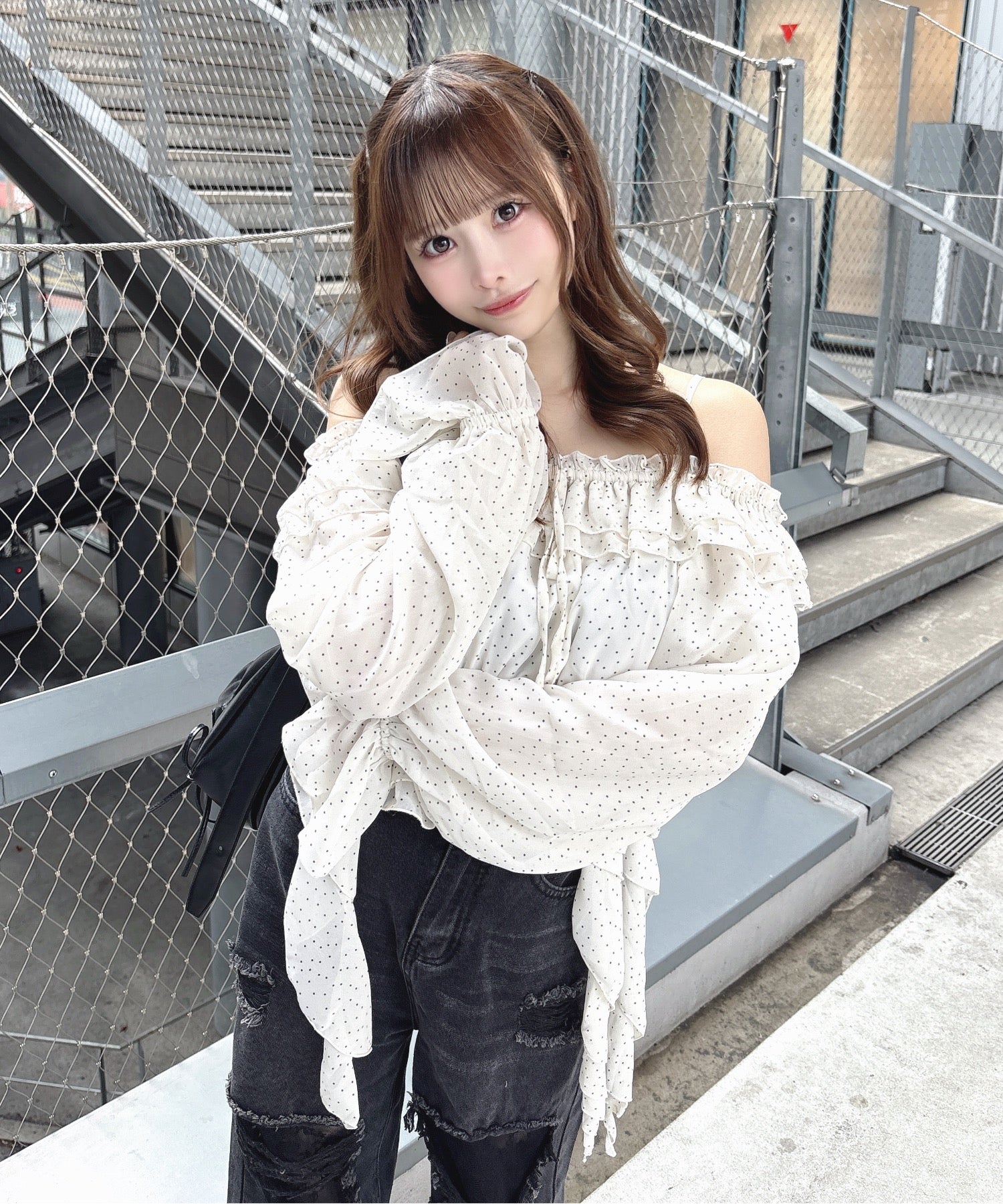 ・オフショルにふんわりとしたスリーブが華奢見え効果◎