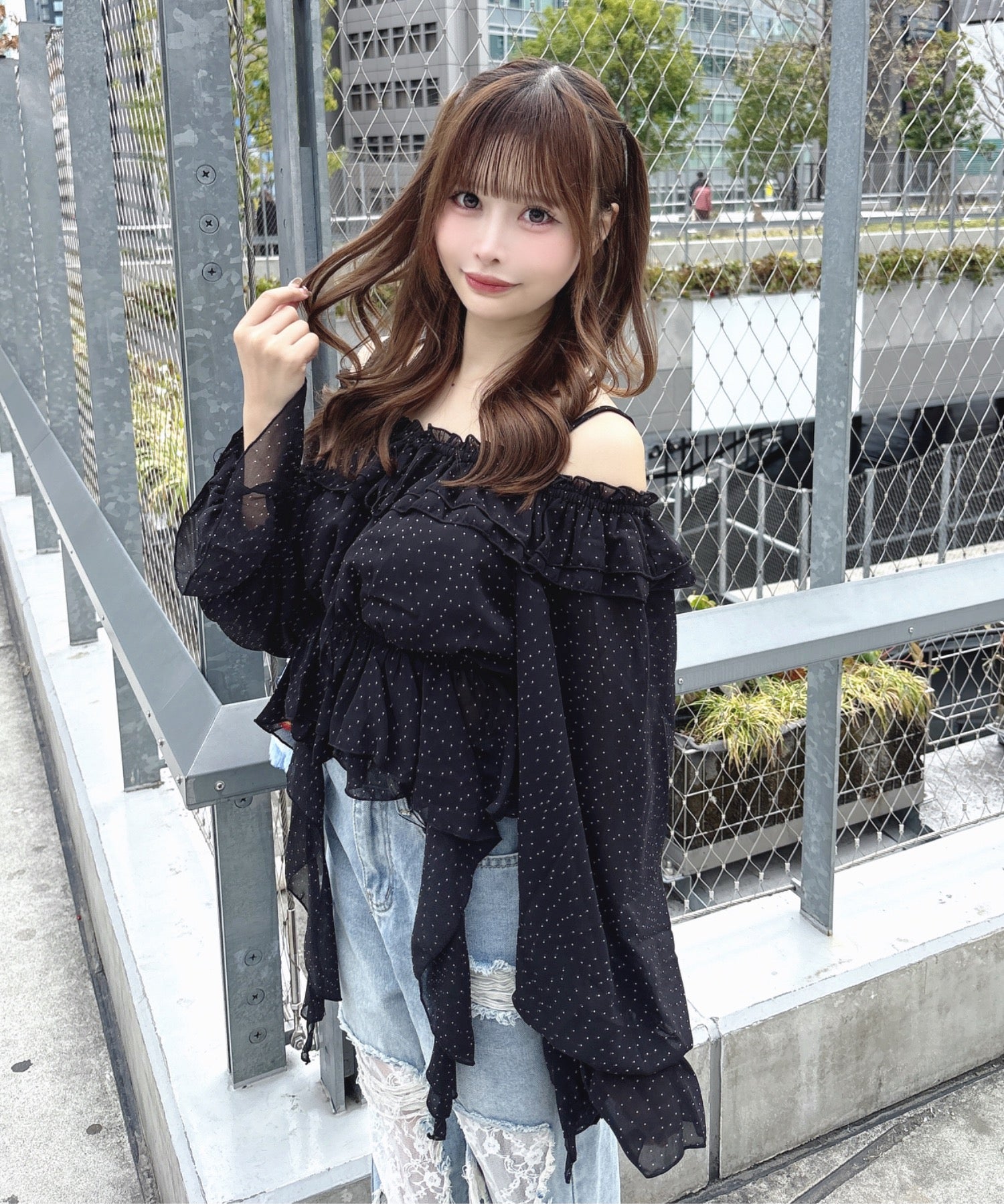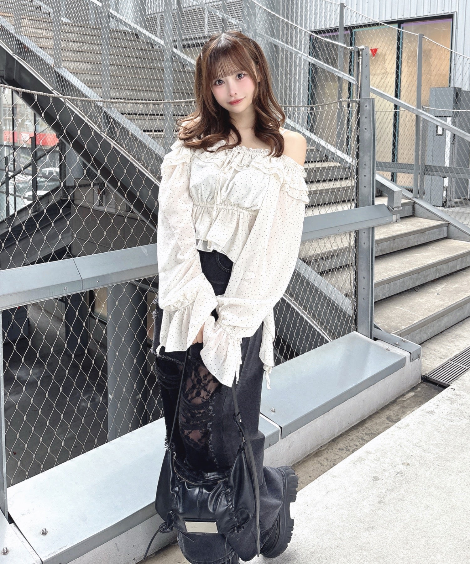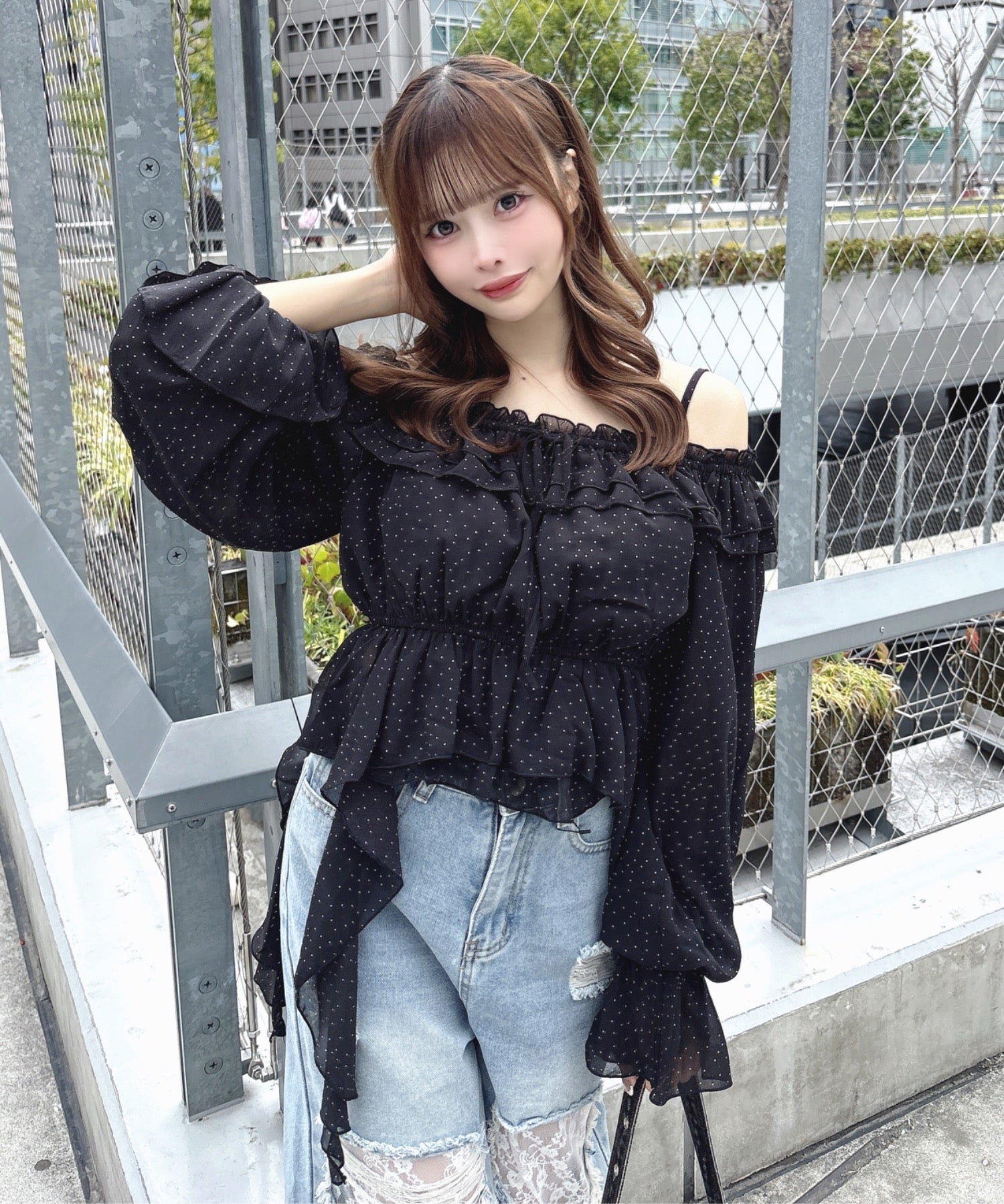 ・オフショルにふんわりとしたスリーブが華奢見え効果◎