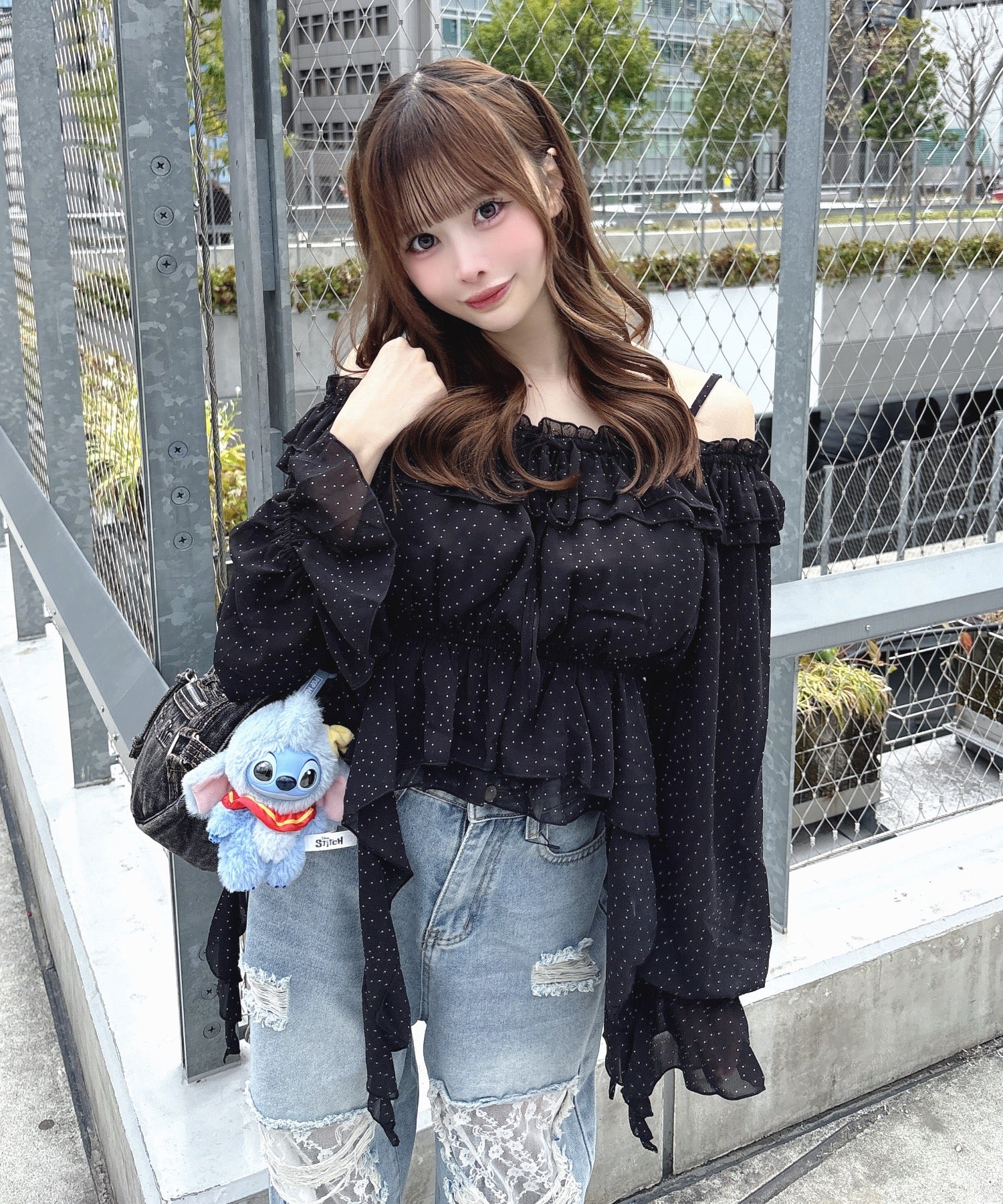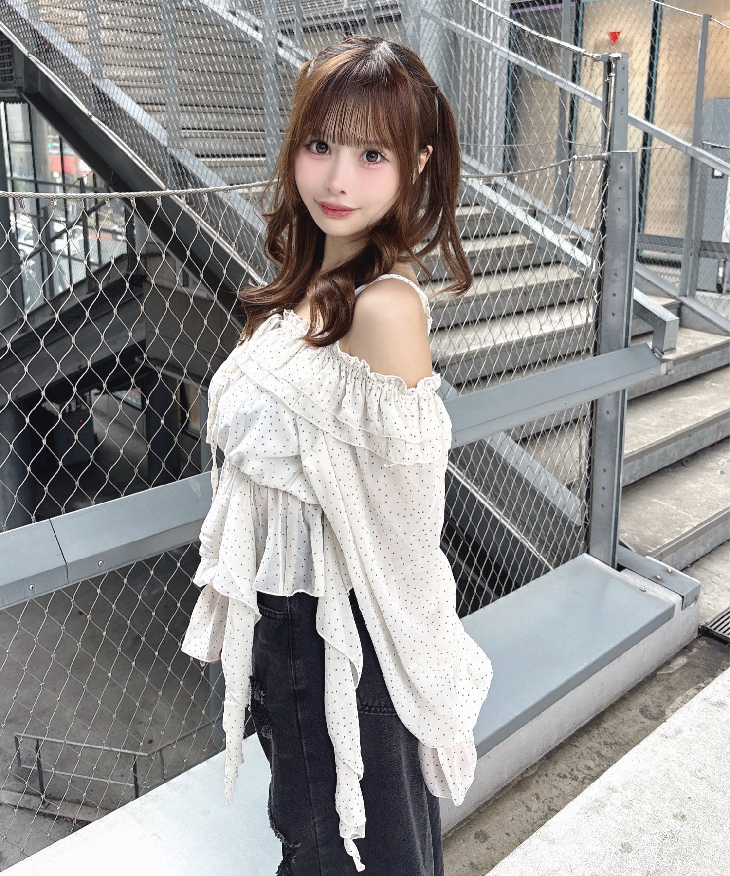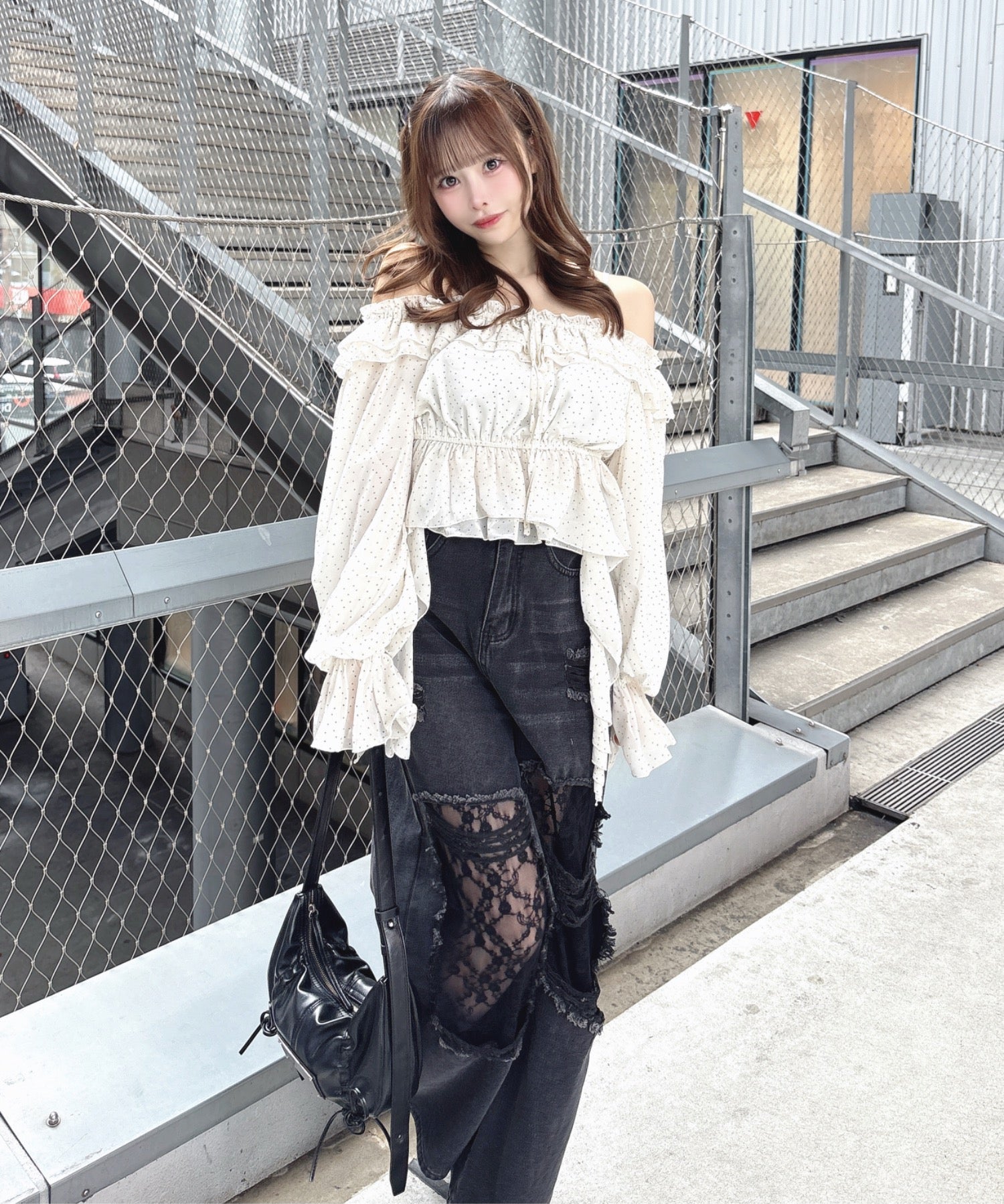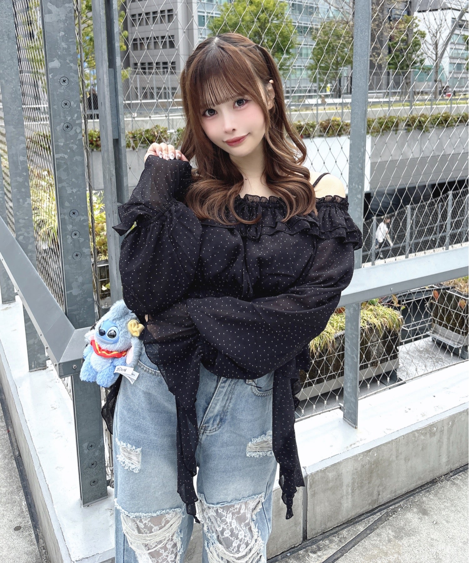 ・オフショルにふんわりとしたスリーブが華奢見え効果◎