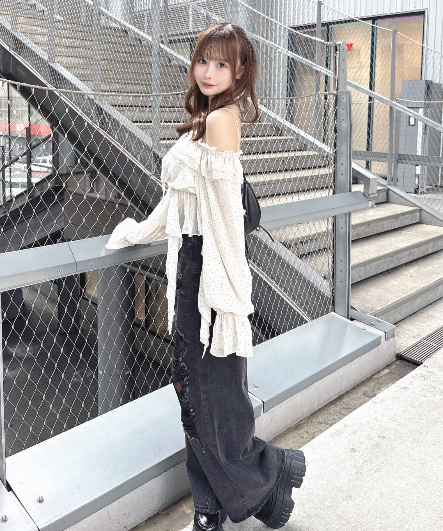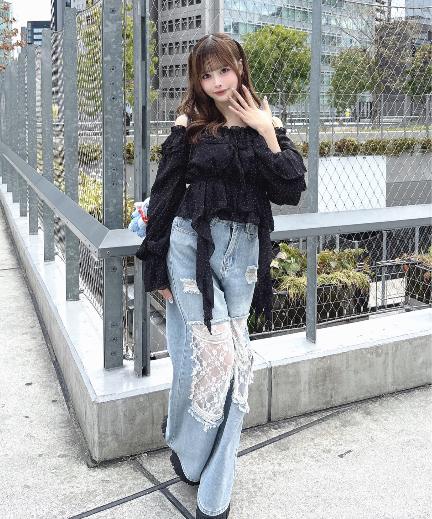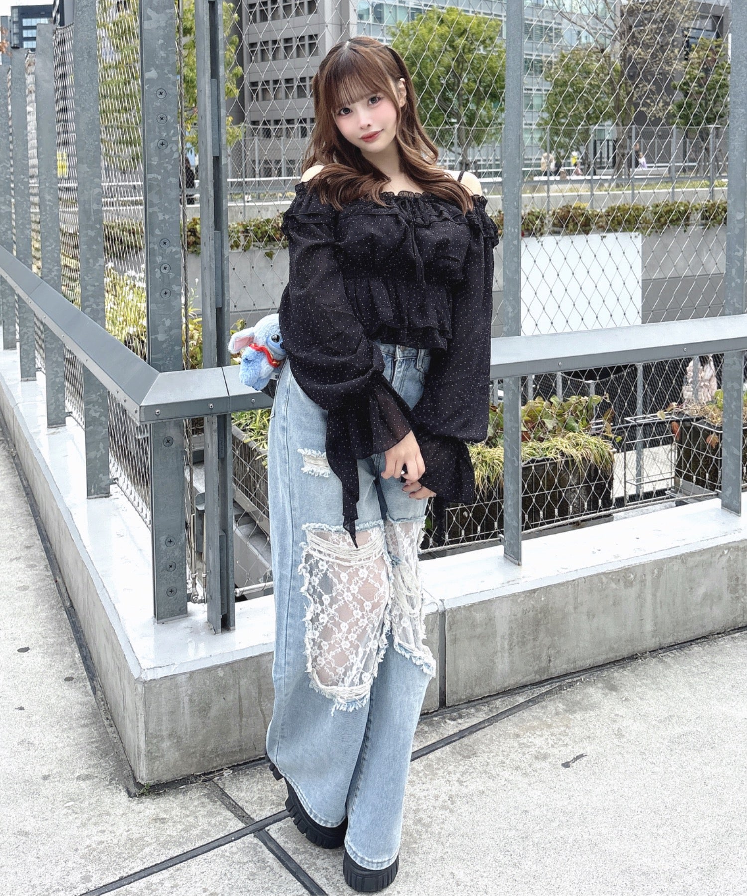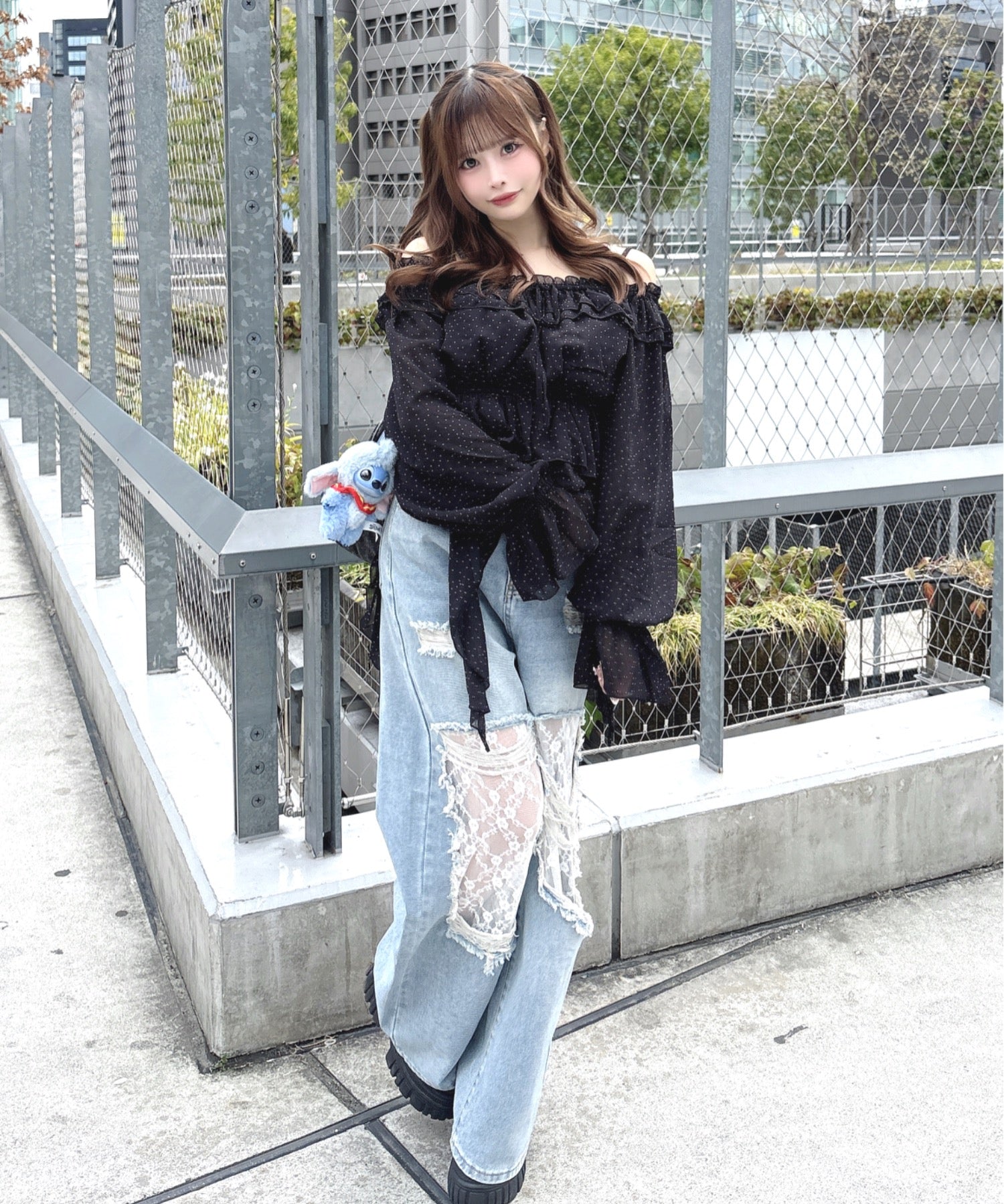 ・オフショルにデニムの組み合わせが王道可愛い♡