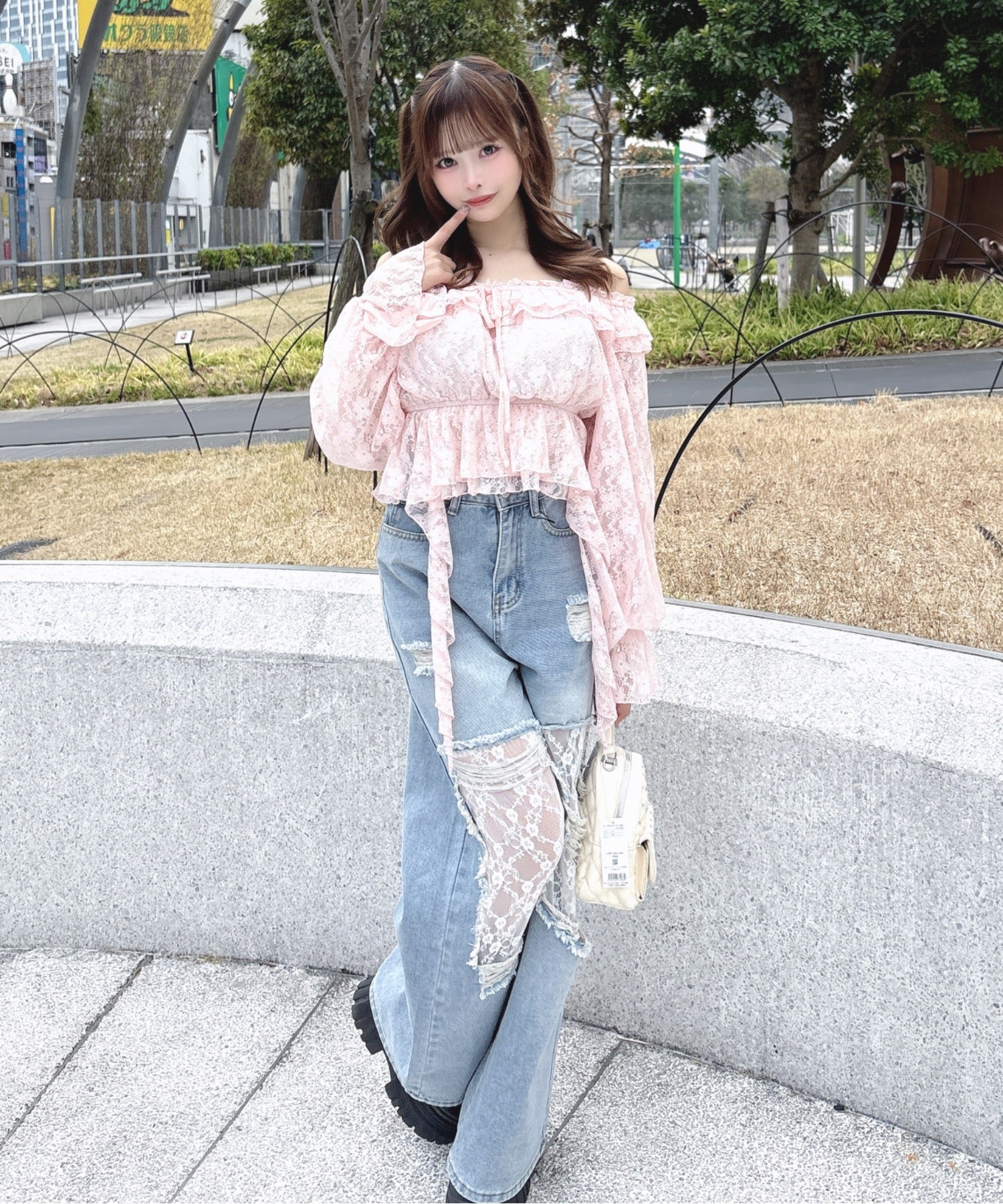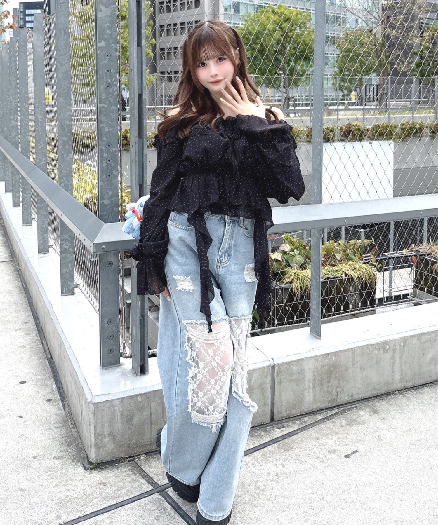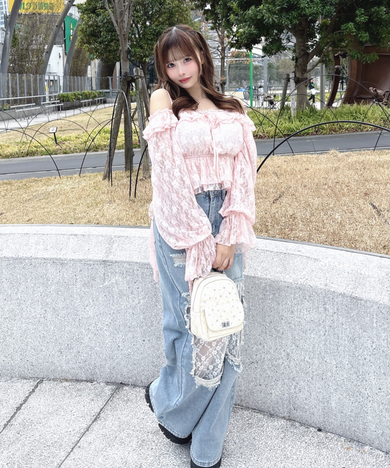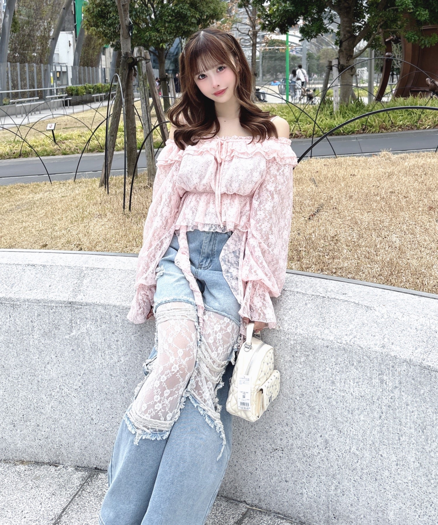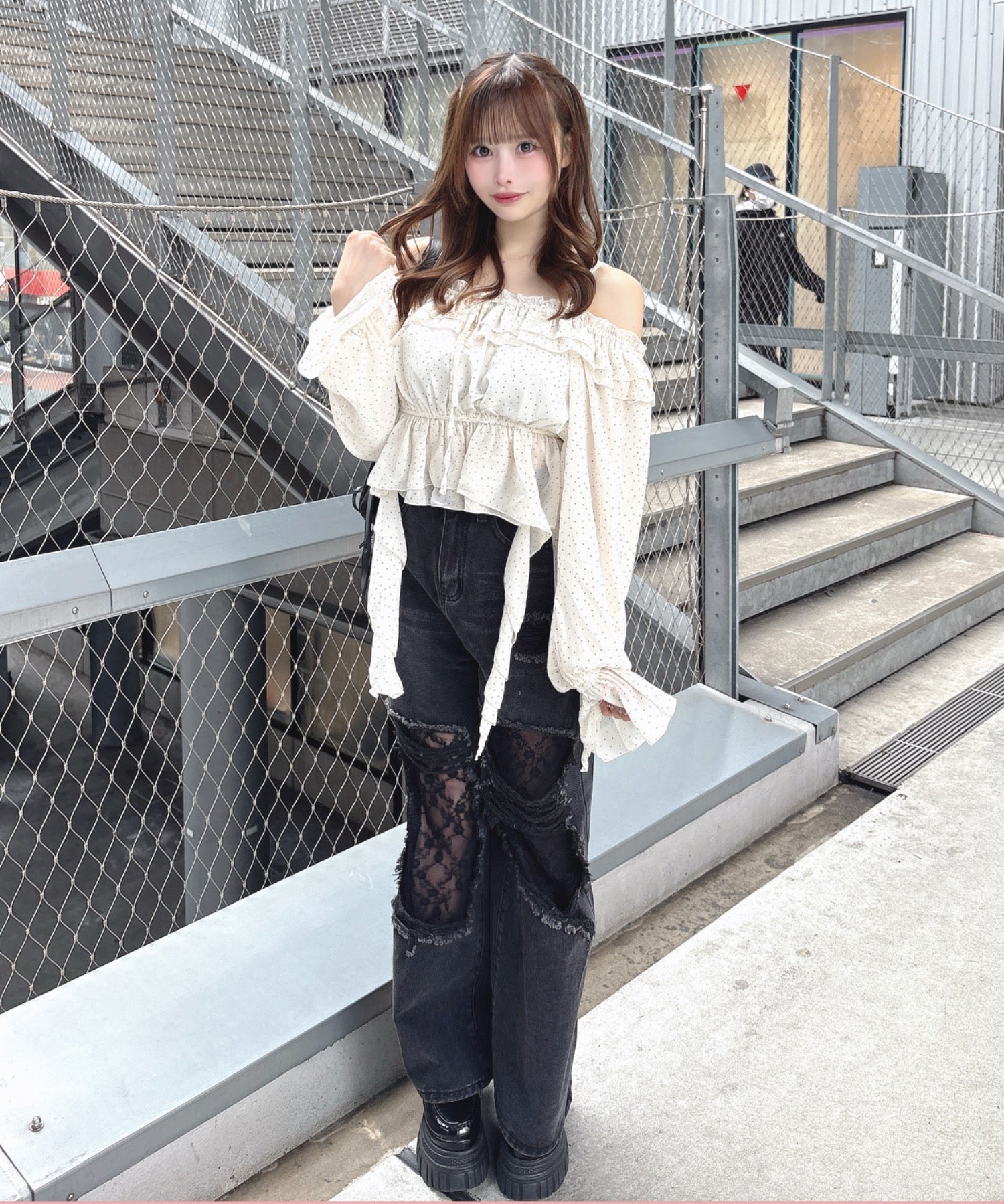 ・オフショルにデニムの組み合わせが王道可愛い♡