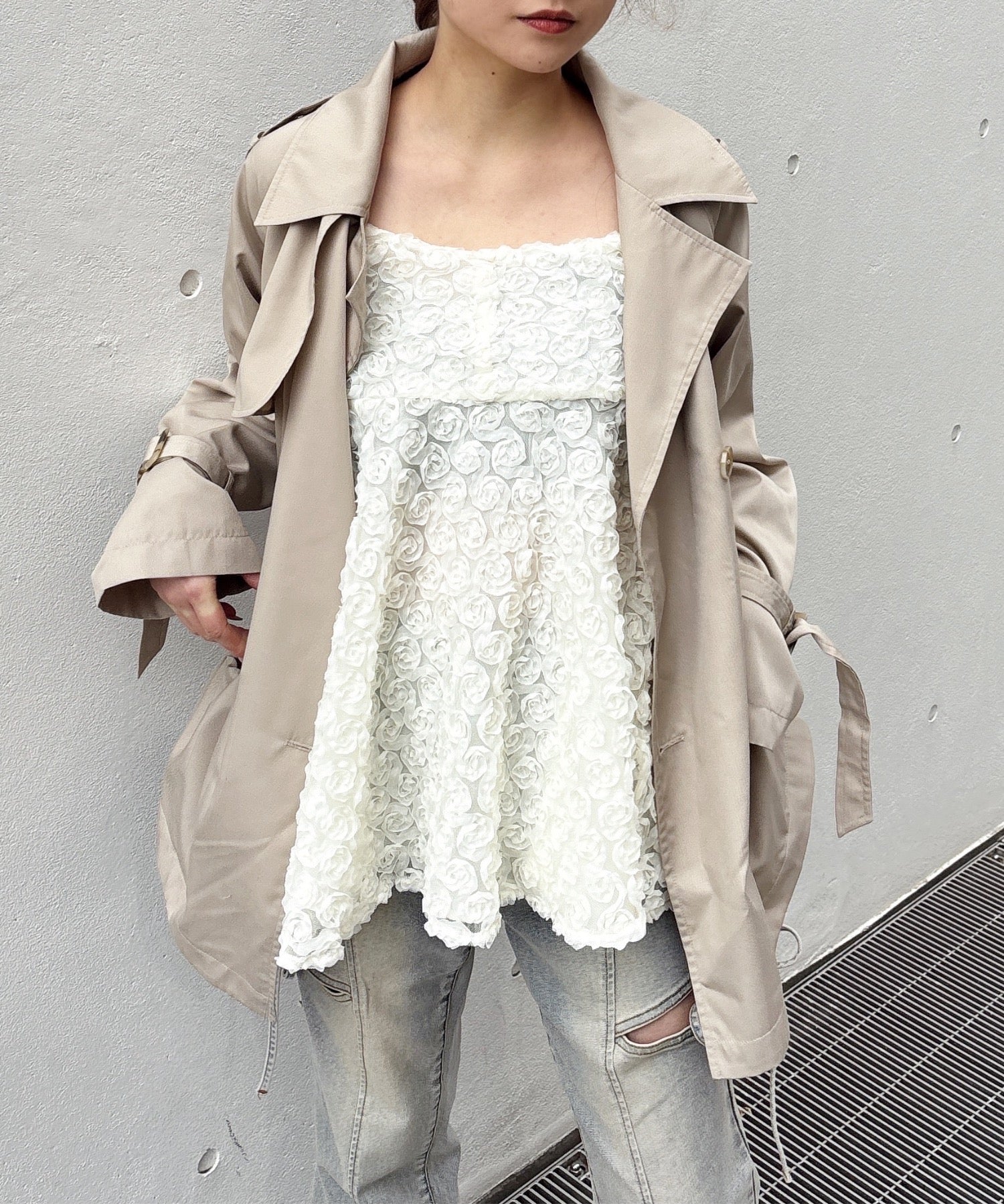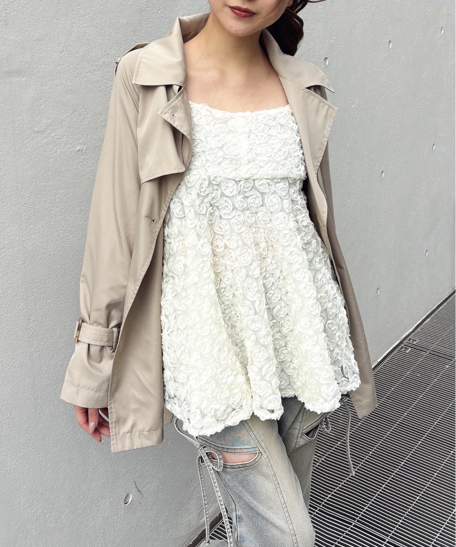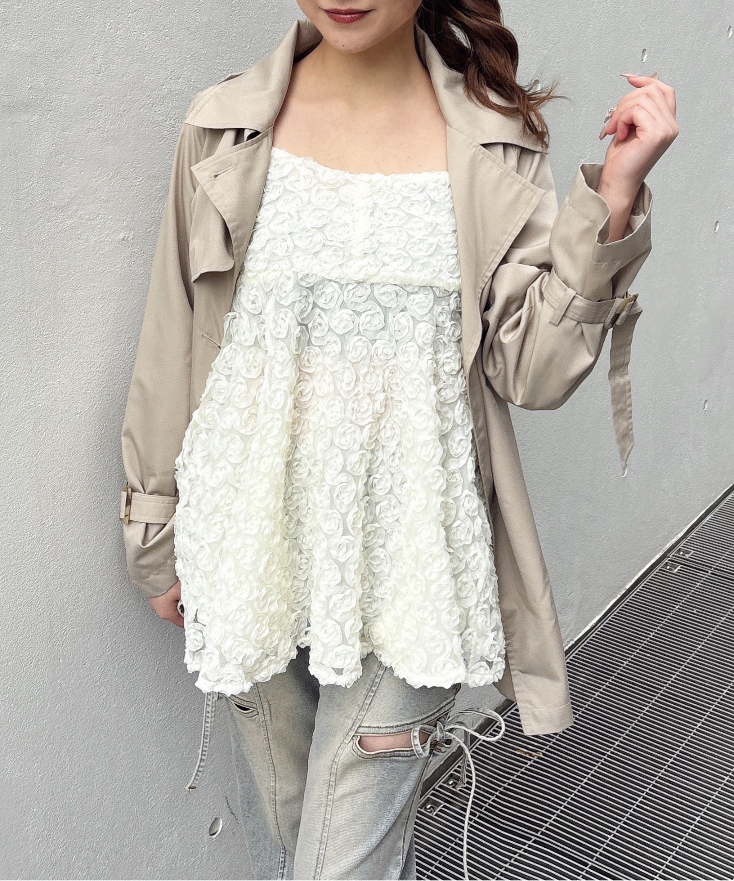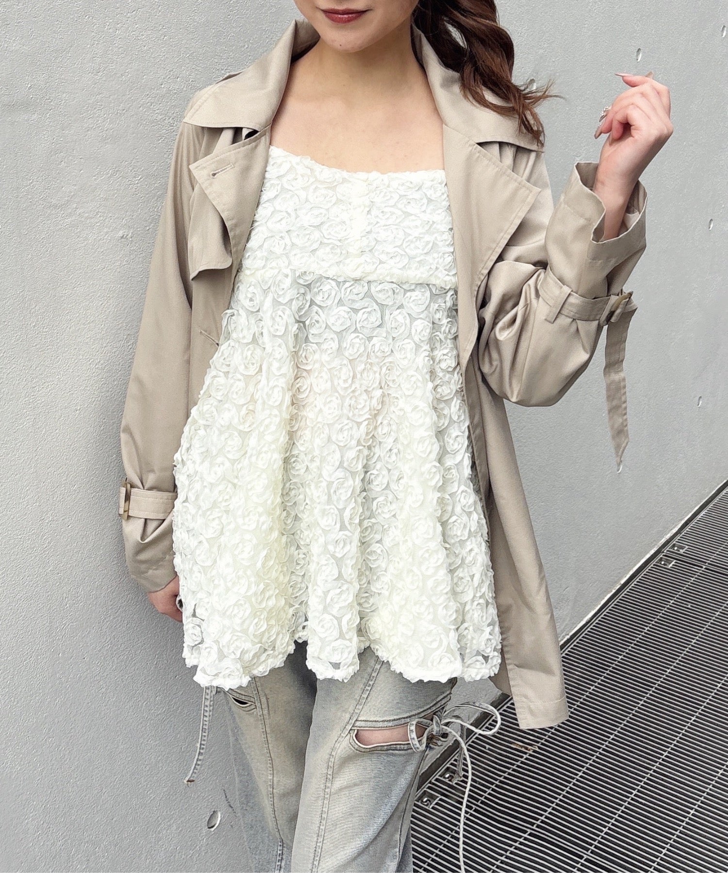 ・チュニックをキャミソールとして着て、上からアウターを羽織るのも可愛い◎