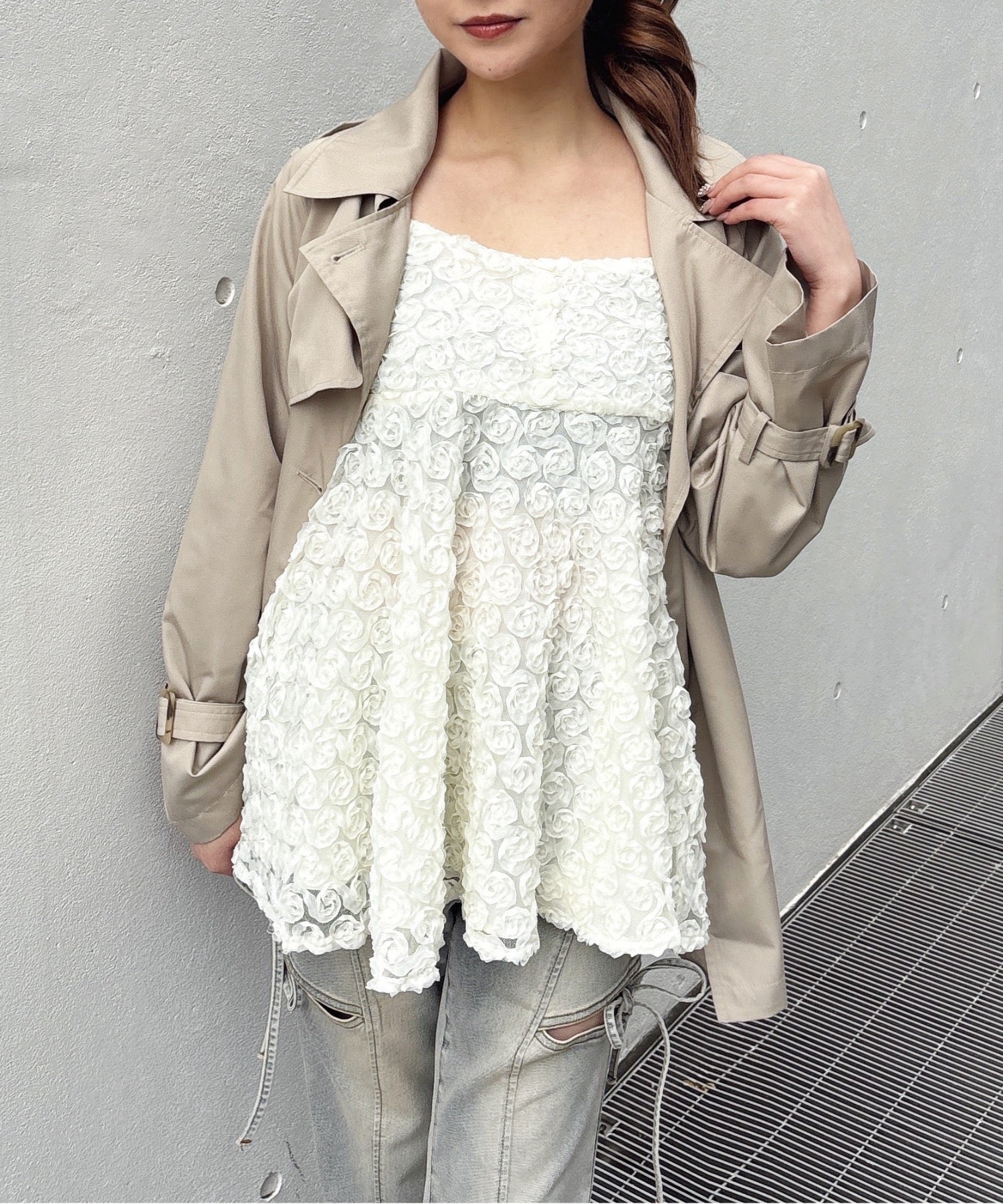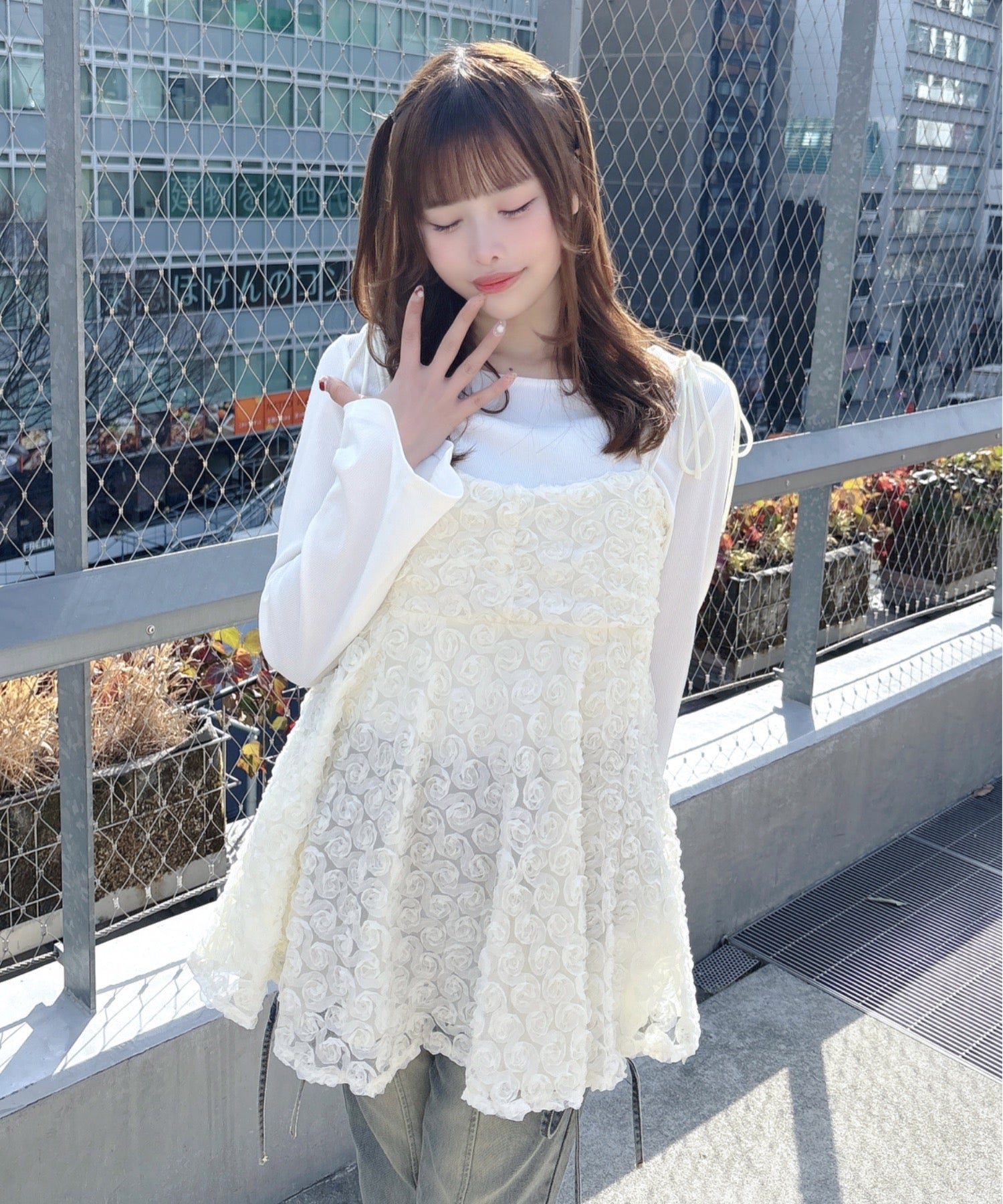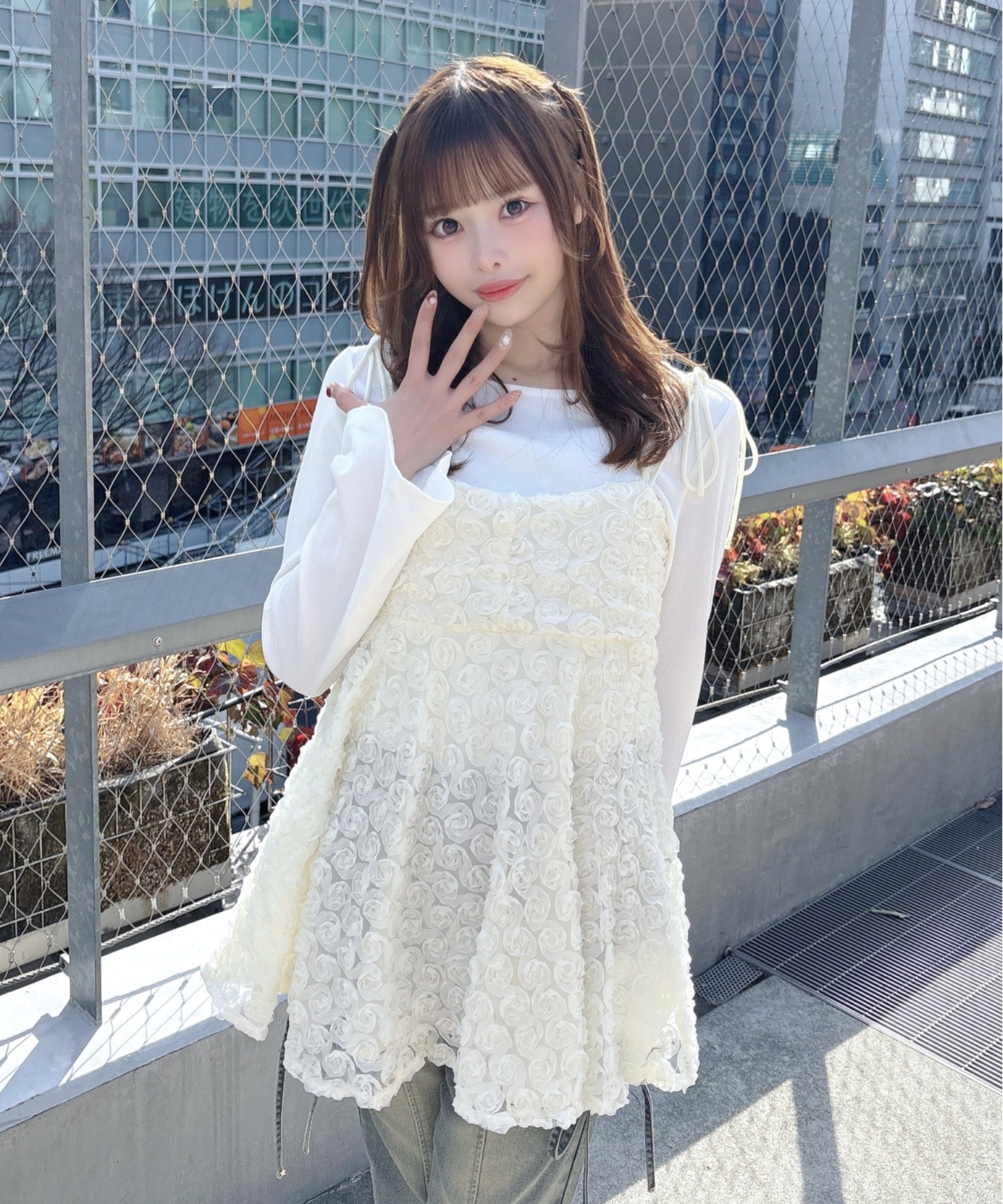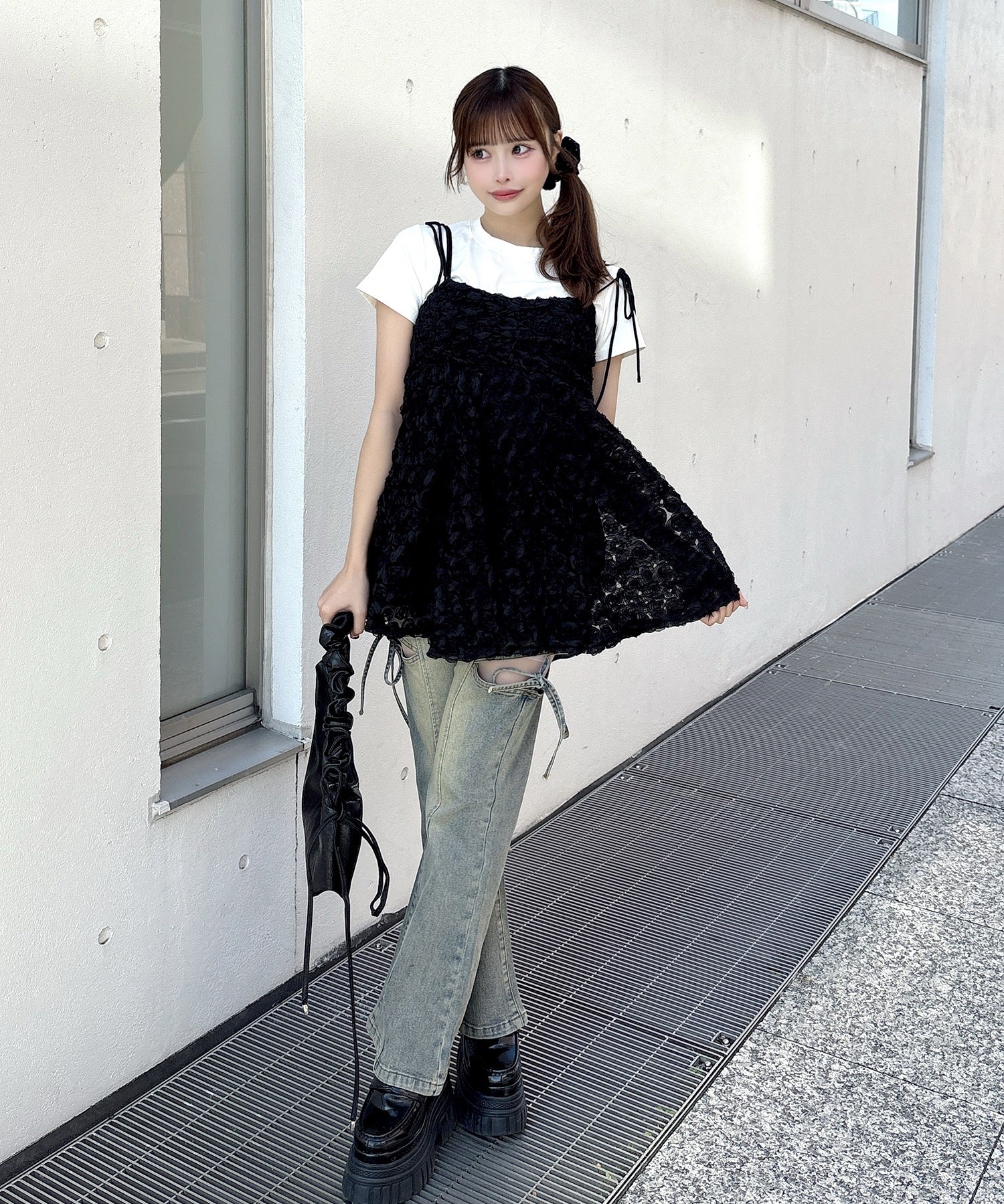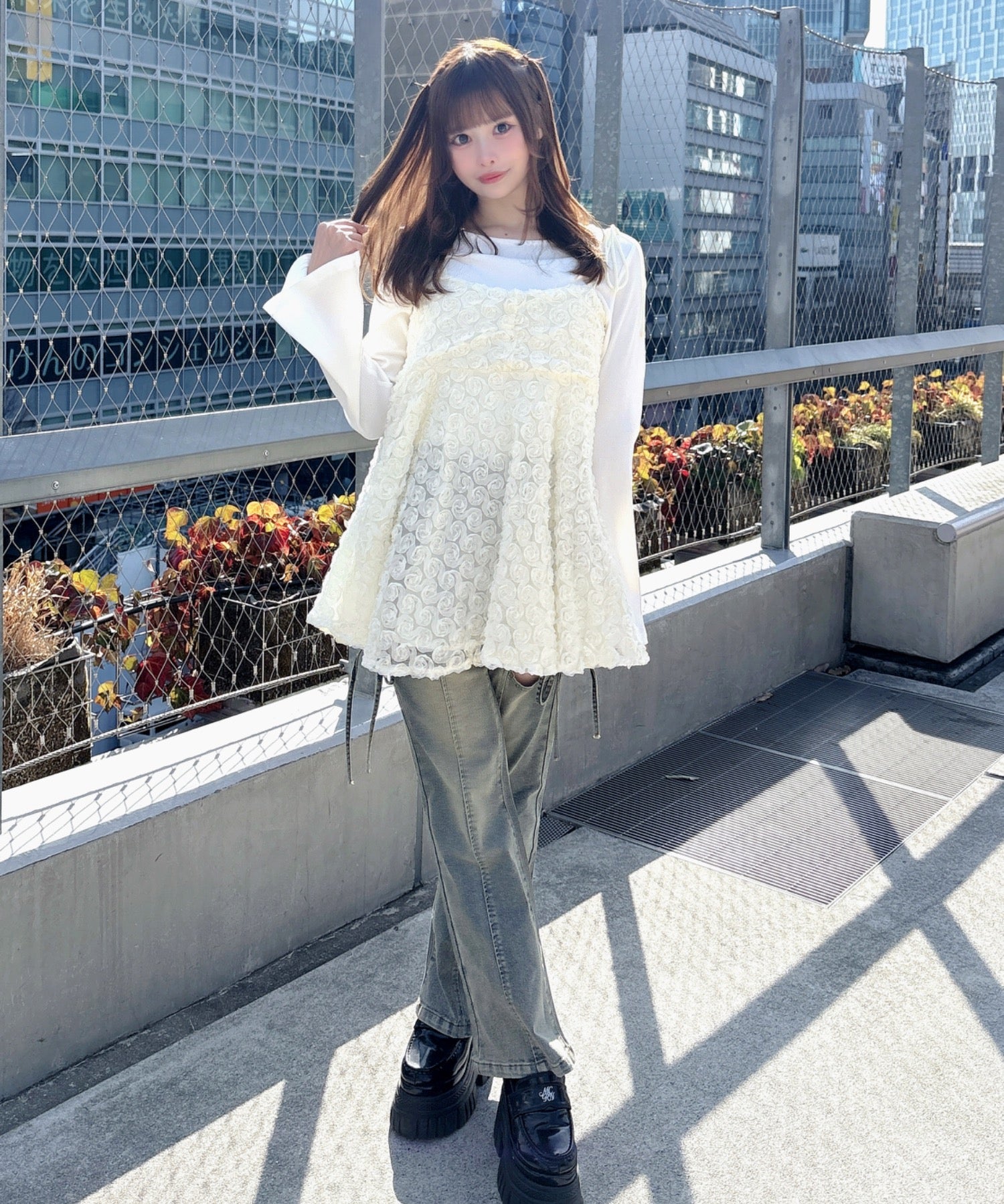 ・チュニックをキャミソールとして着て、上からアウターを羽織るのも可愛い◎