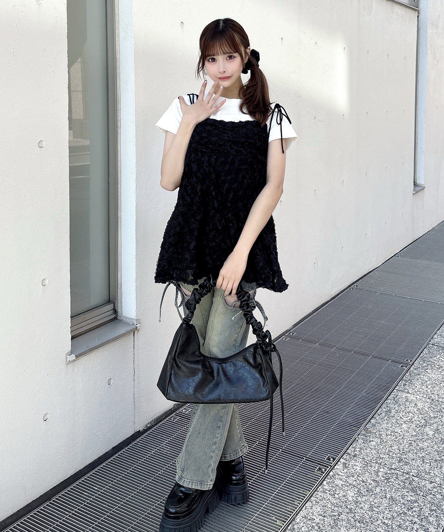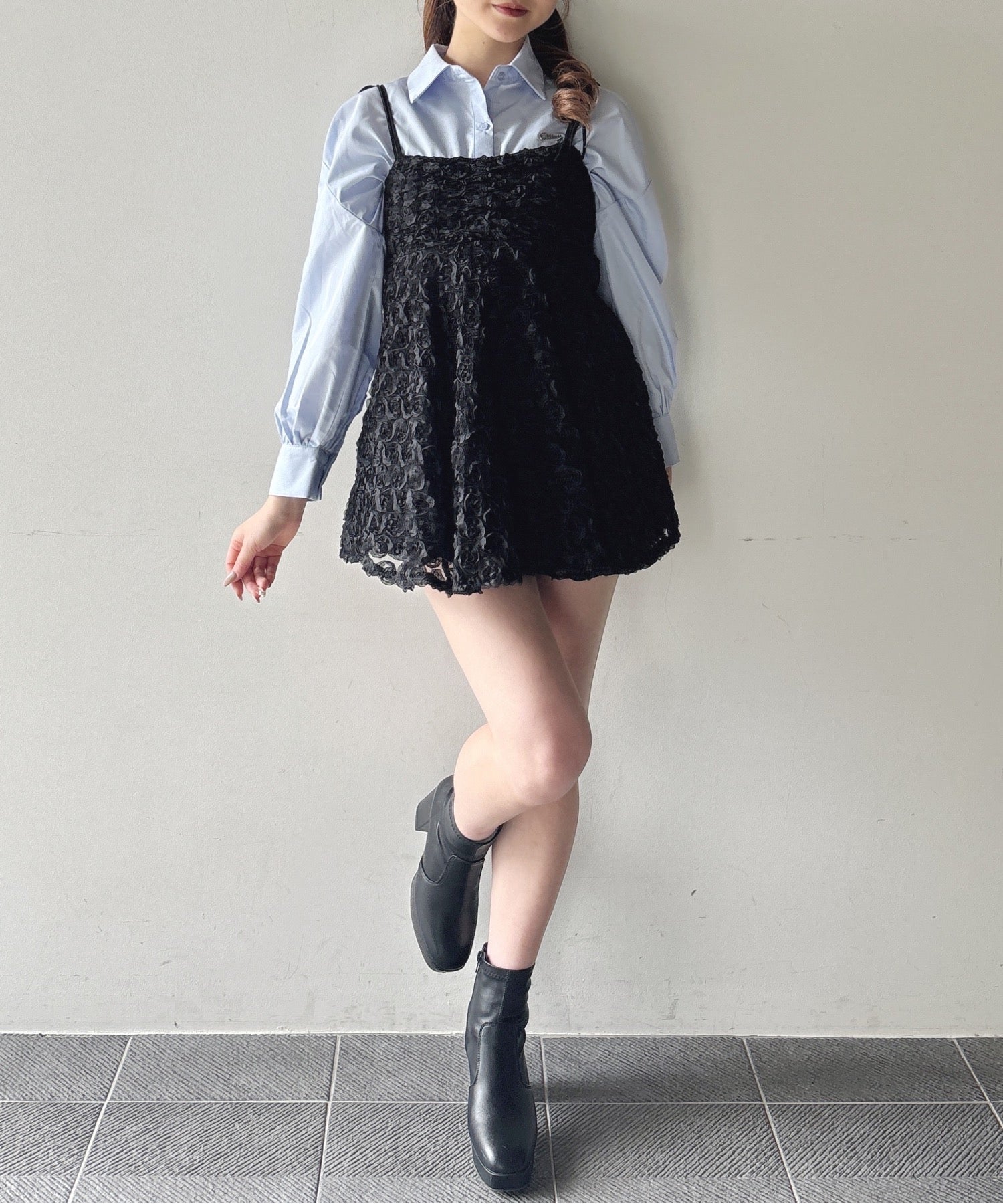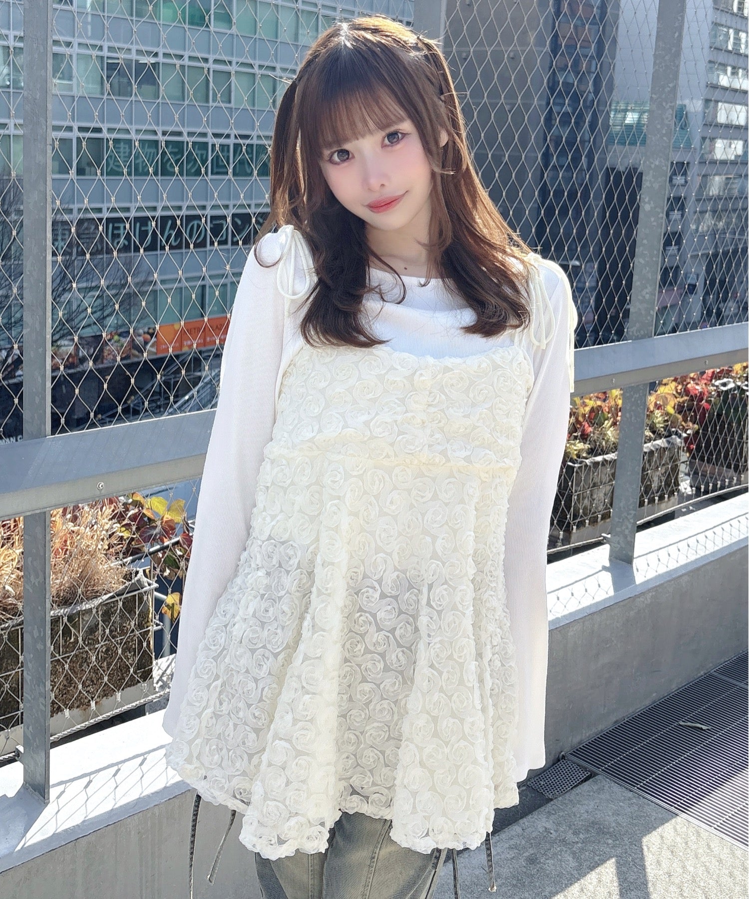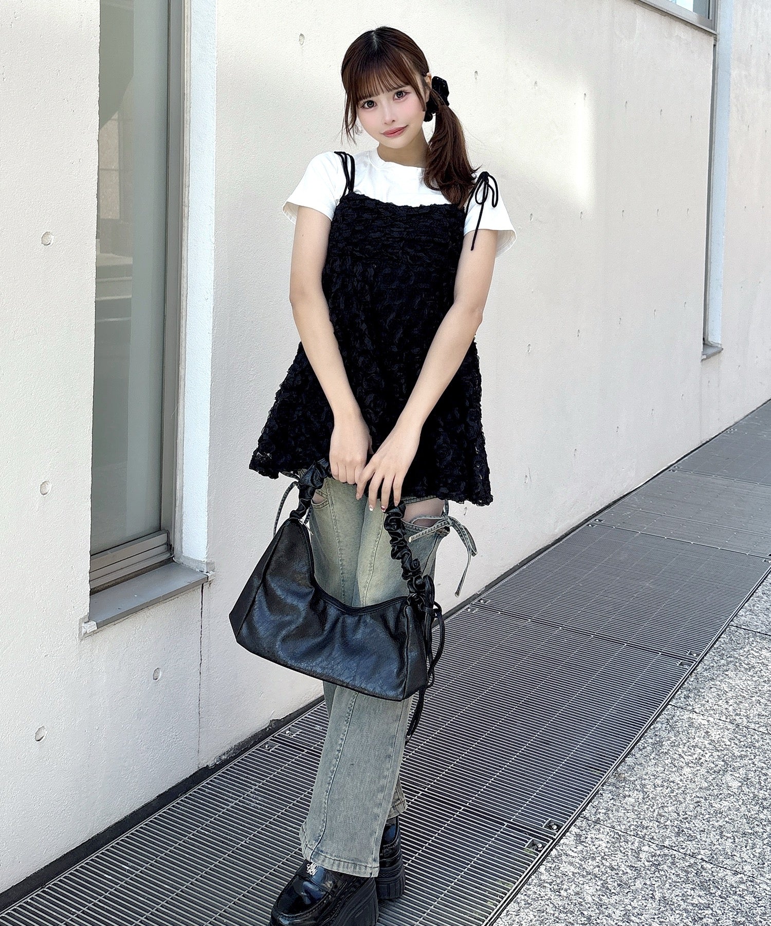 ・チュニックをキャミソールとして着て、上からアウターを羽織るのも可愛い◎