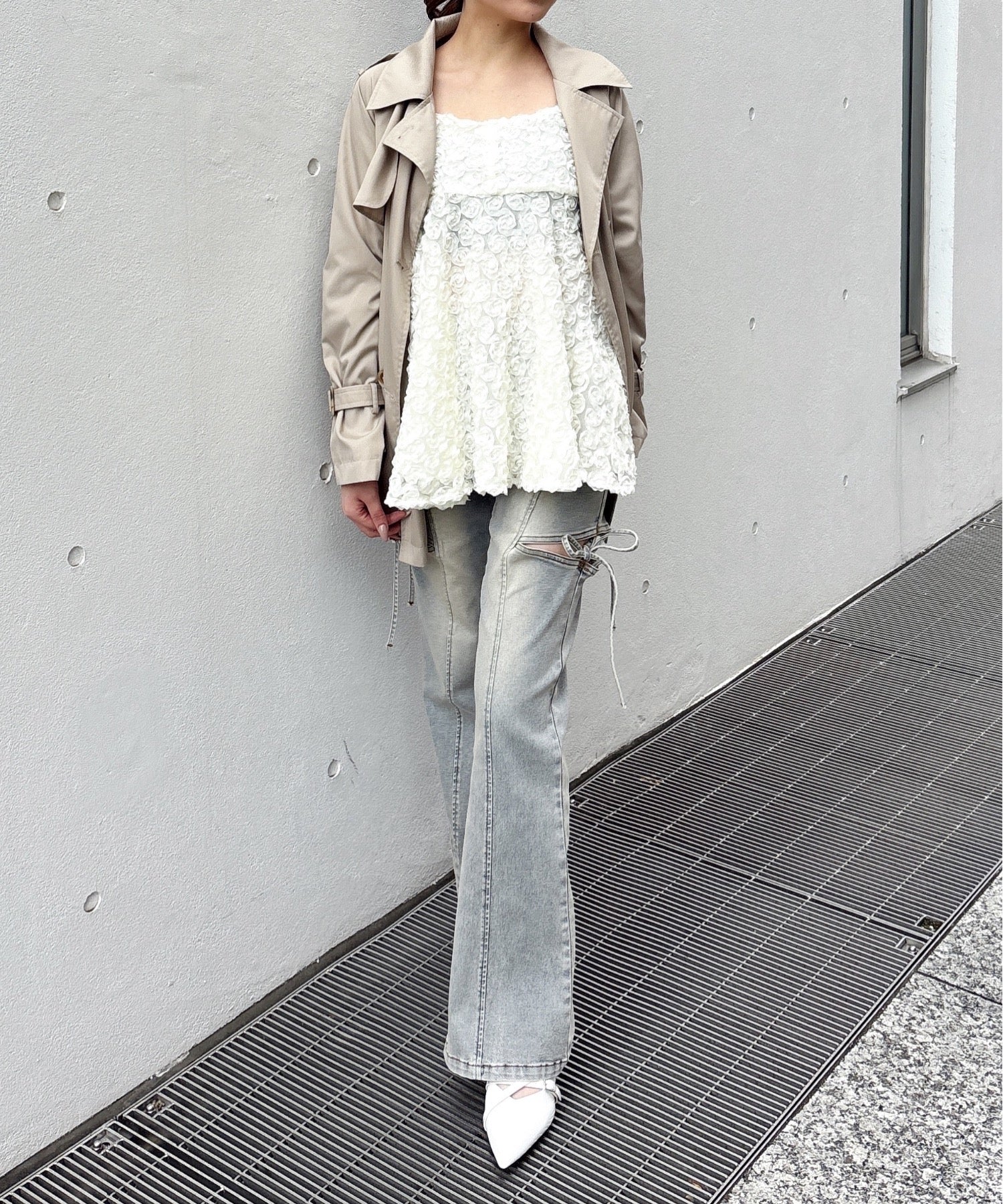 ・ふんわり広がるシルエットがポイントで足長効果も期待できる丈感◎