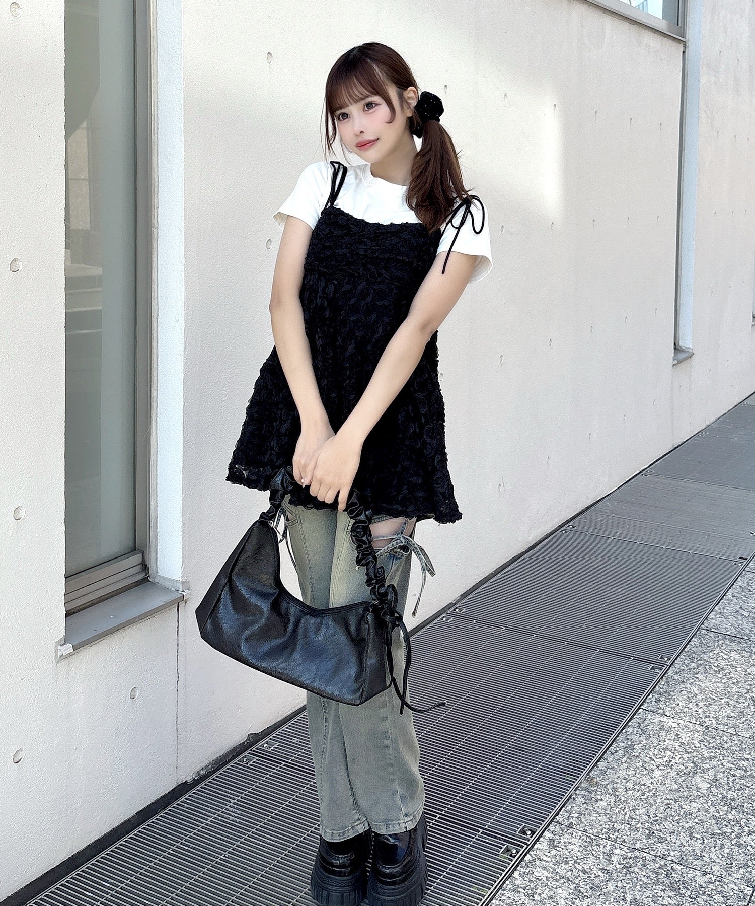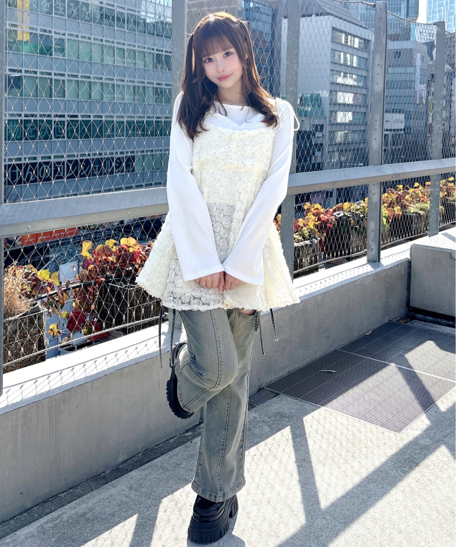 ・インナーにTシャツやカットソーを組み合わせたレイヤードスタイルがおすすめ♡