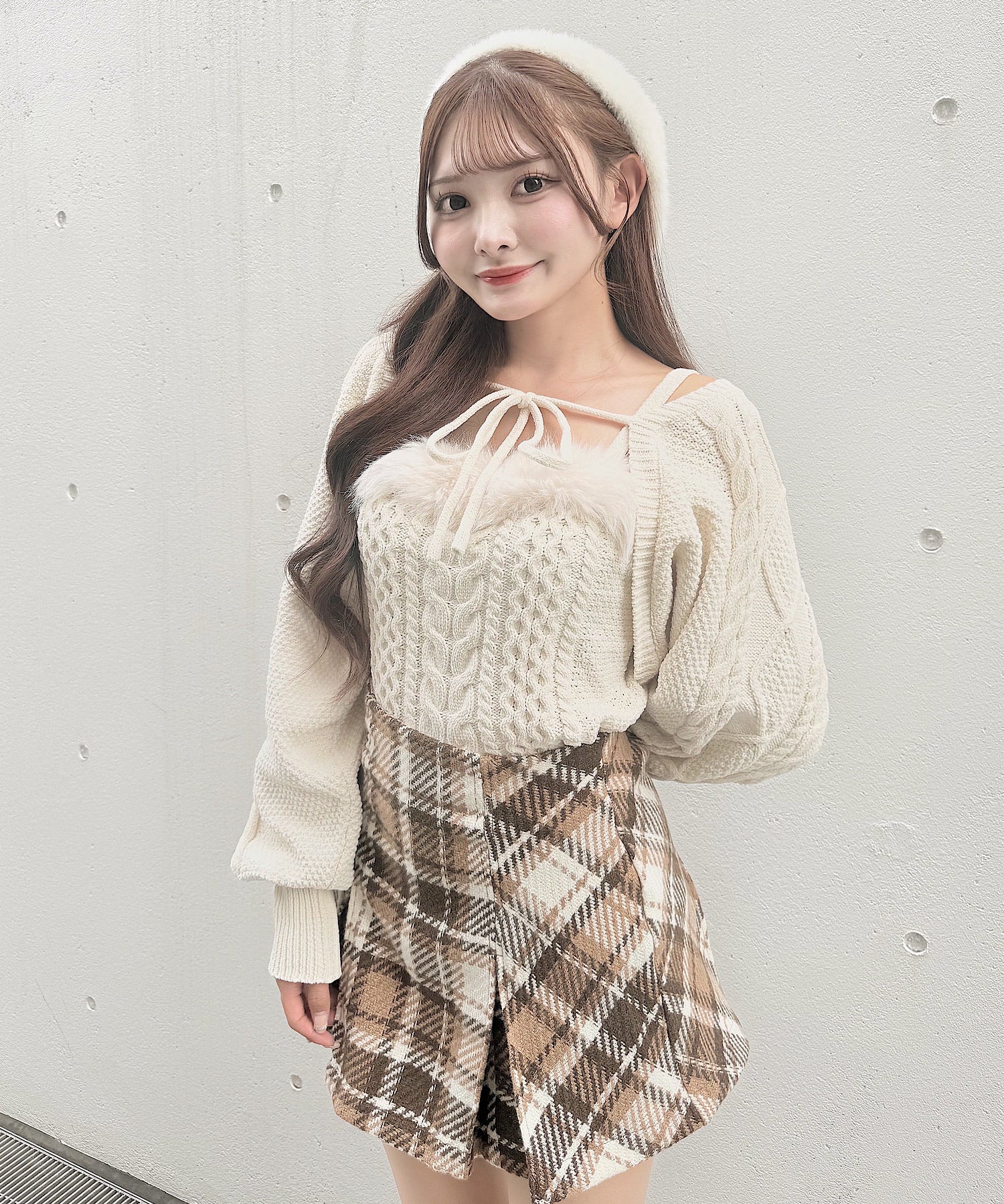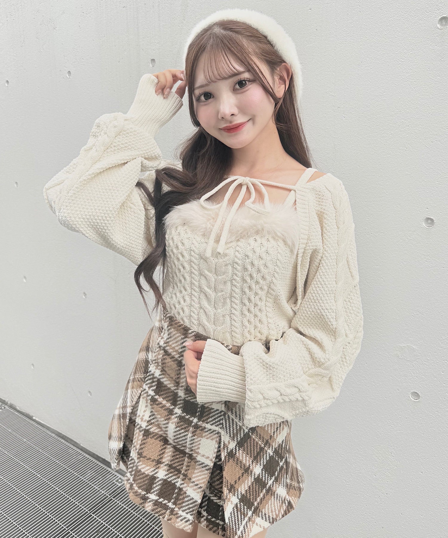 【予約商品10月中旬発送】ファーケーブルアンサンブルニット