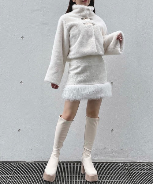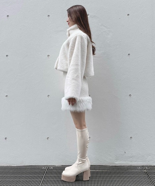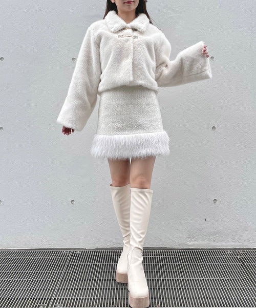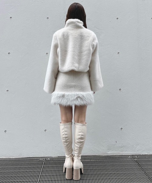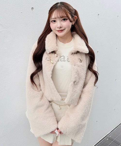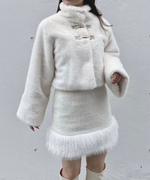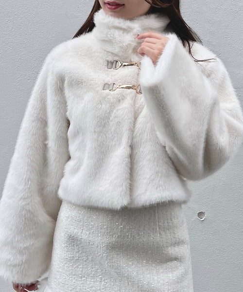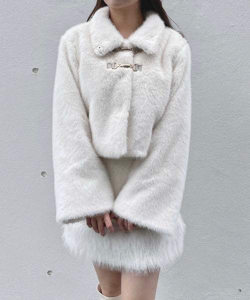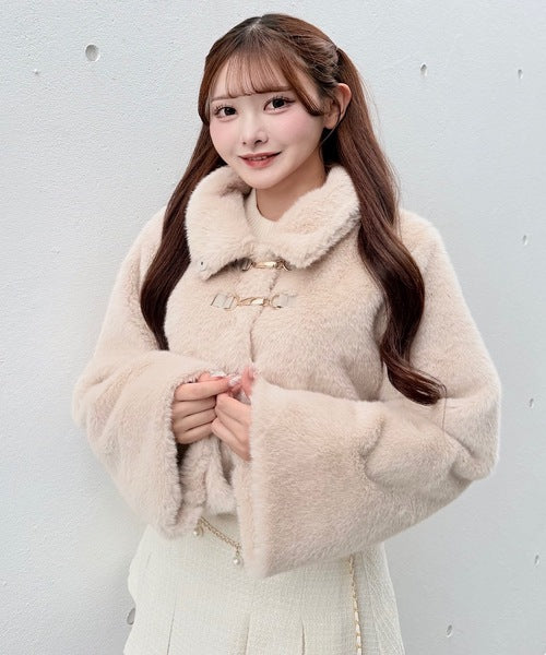 ・袖口は広めにボリューム感を持たせ、見頃はクロップド丈ですっきりと女性らしく見せてくれるファージャケット。