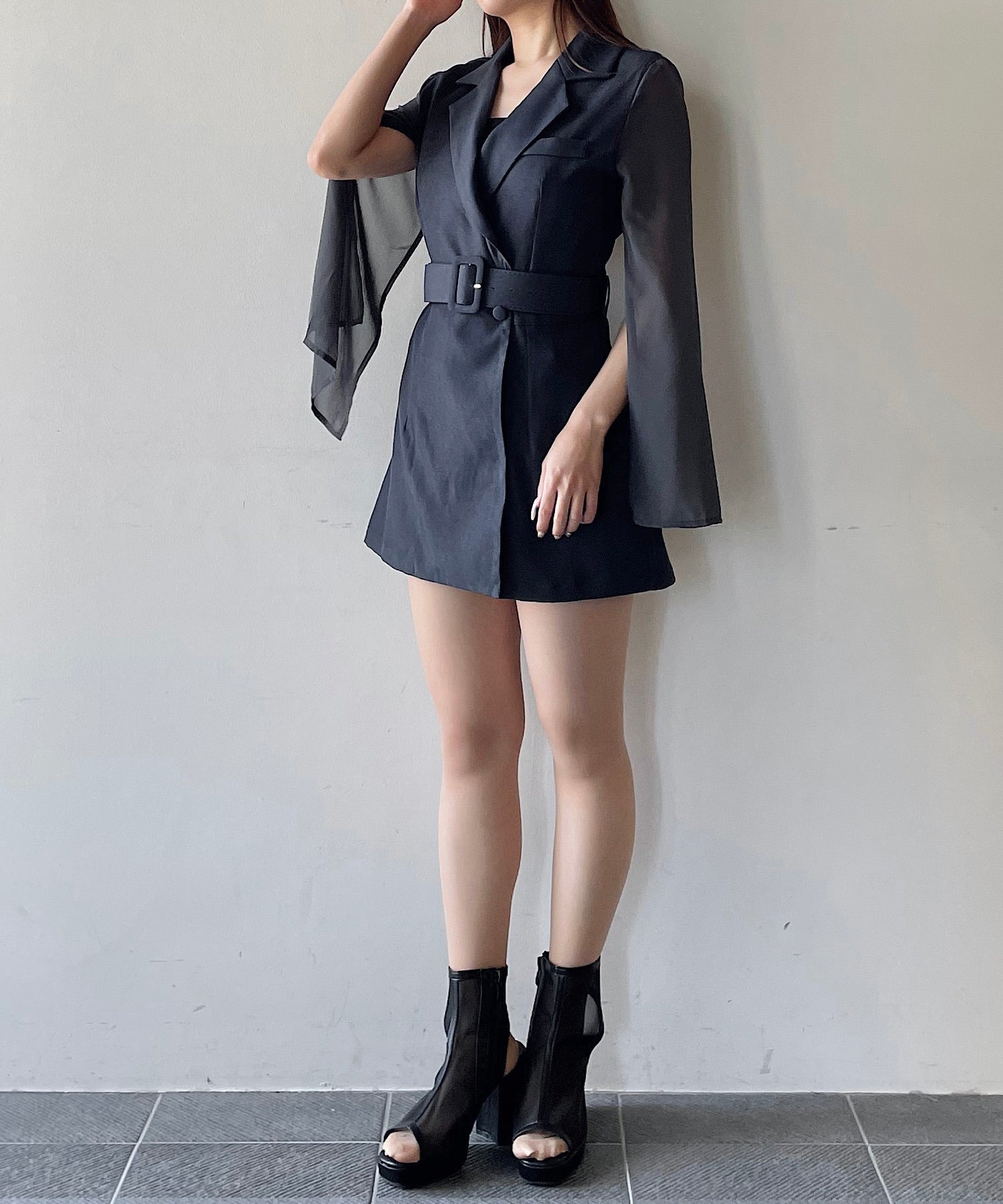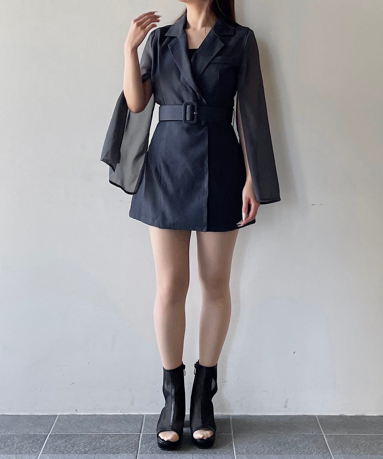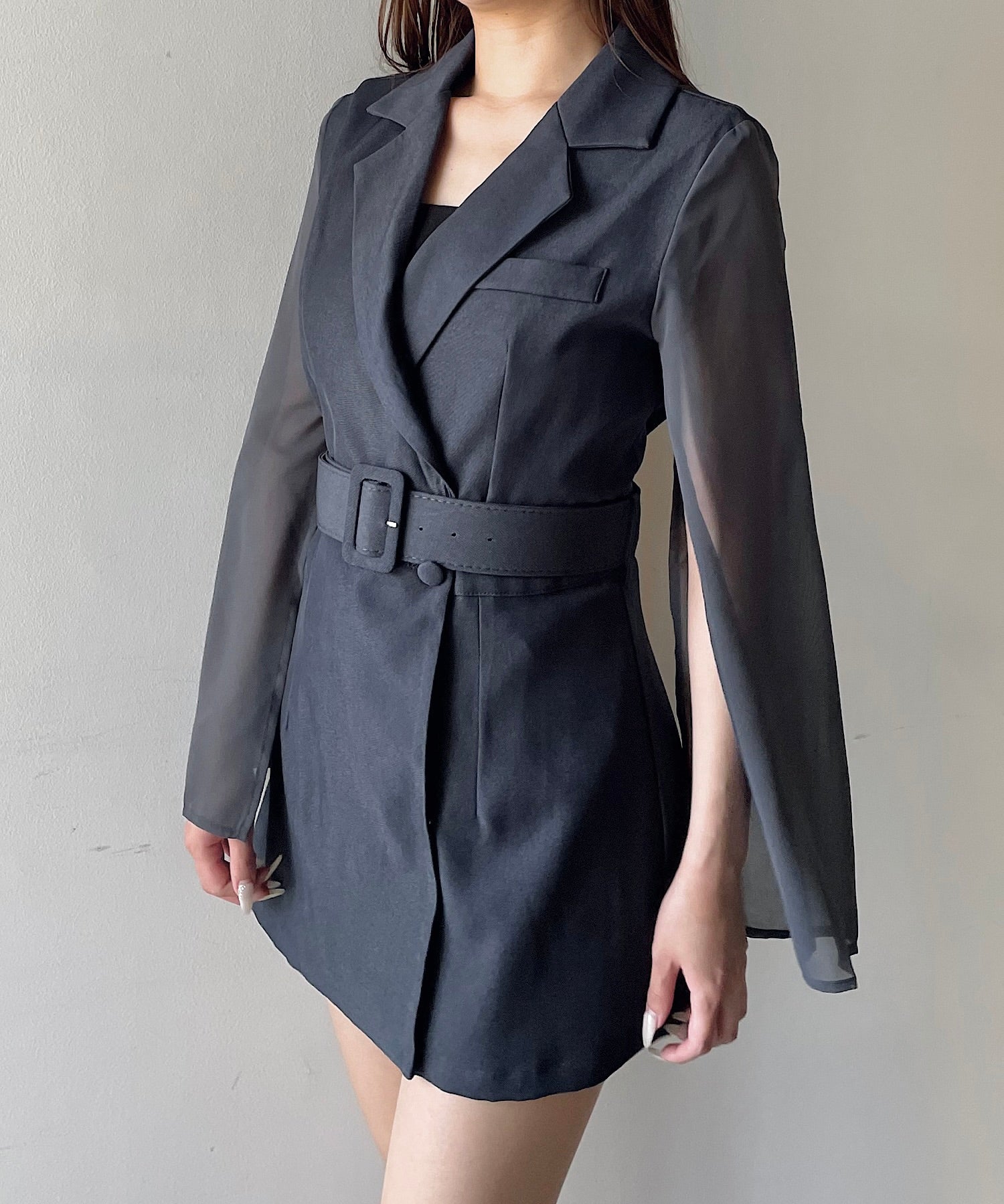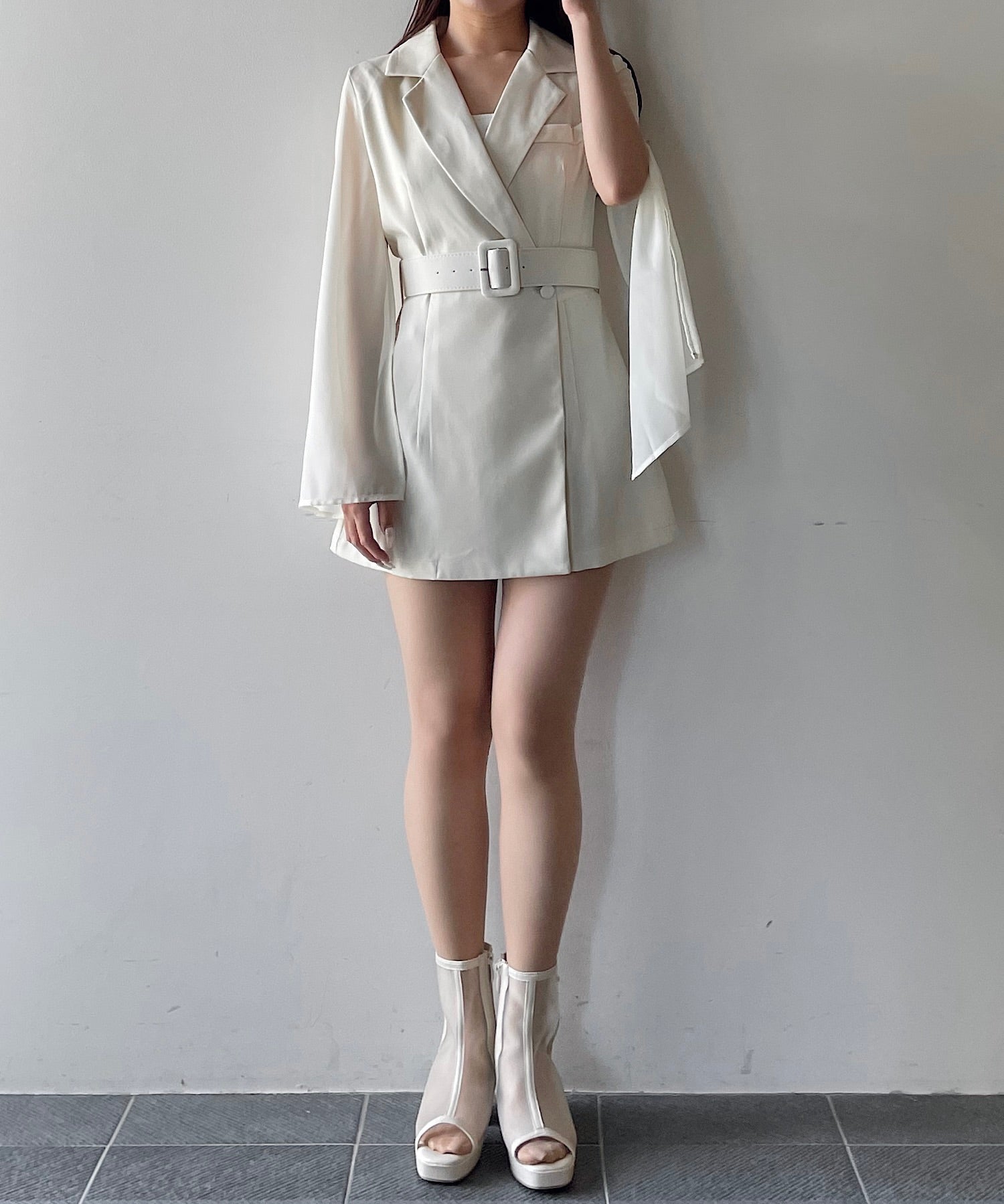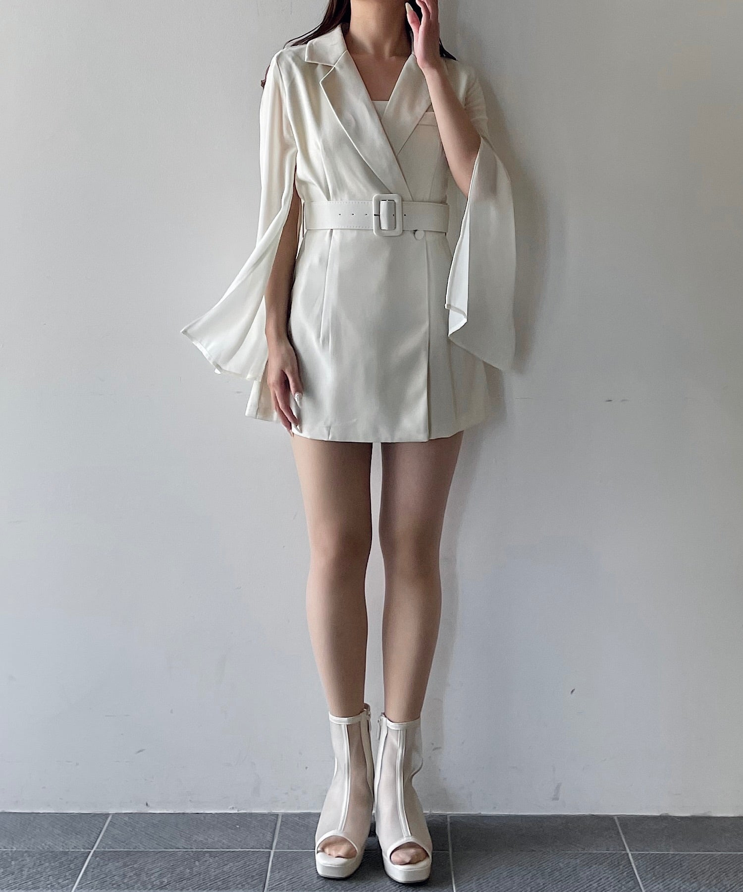 ・スリットスリーブが大人な肌見せを叶えてくれる、テーラードジャケットワンピース♡