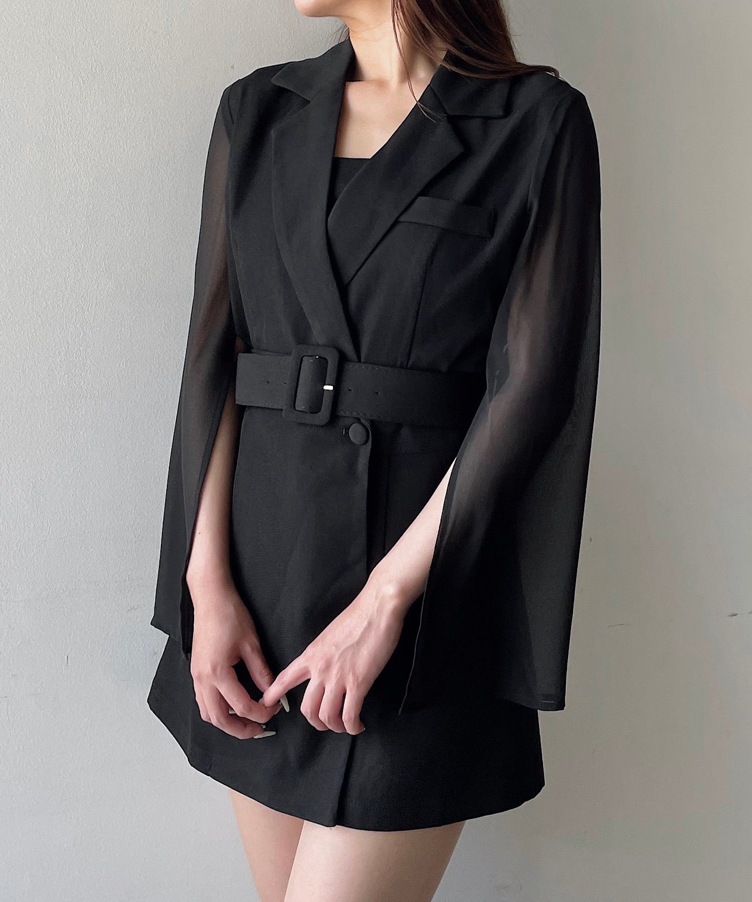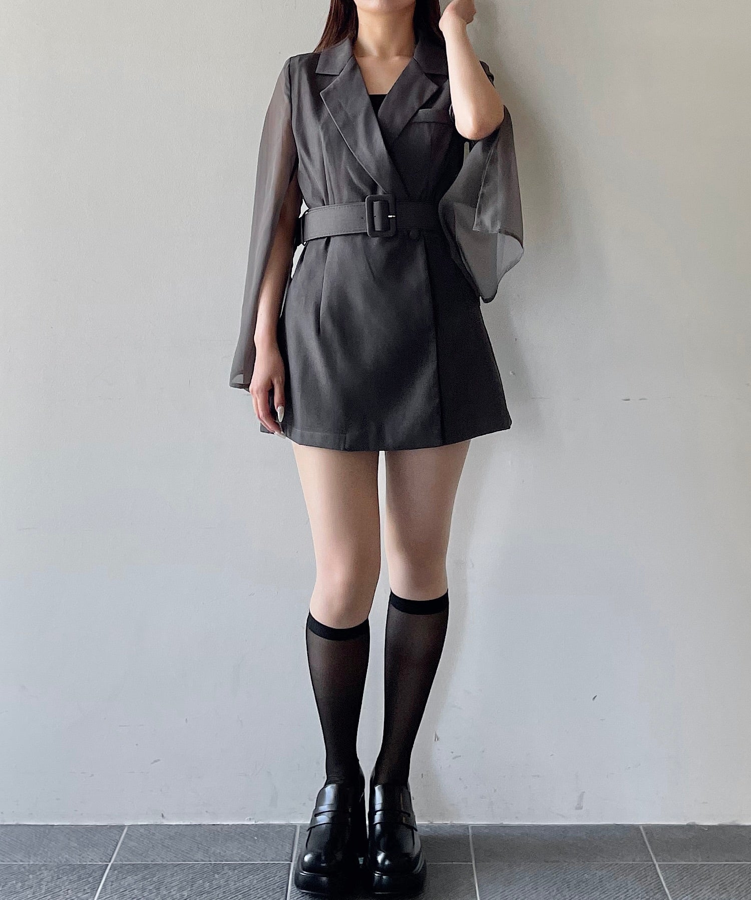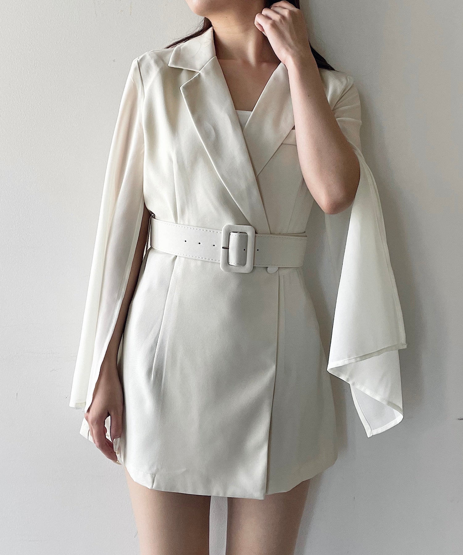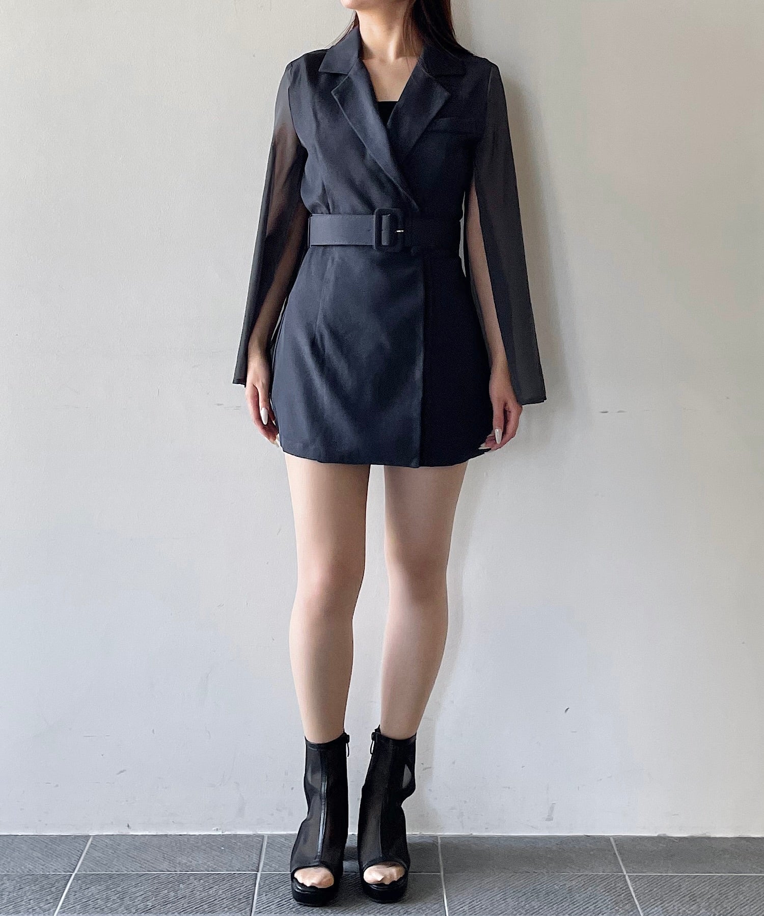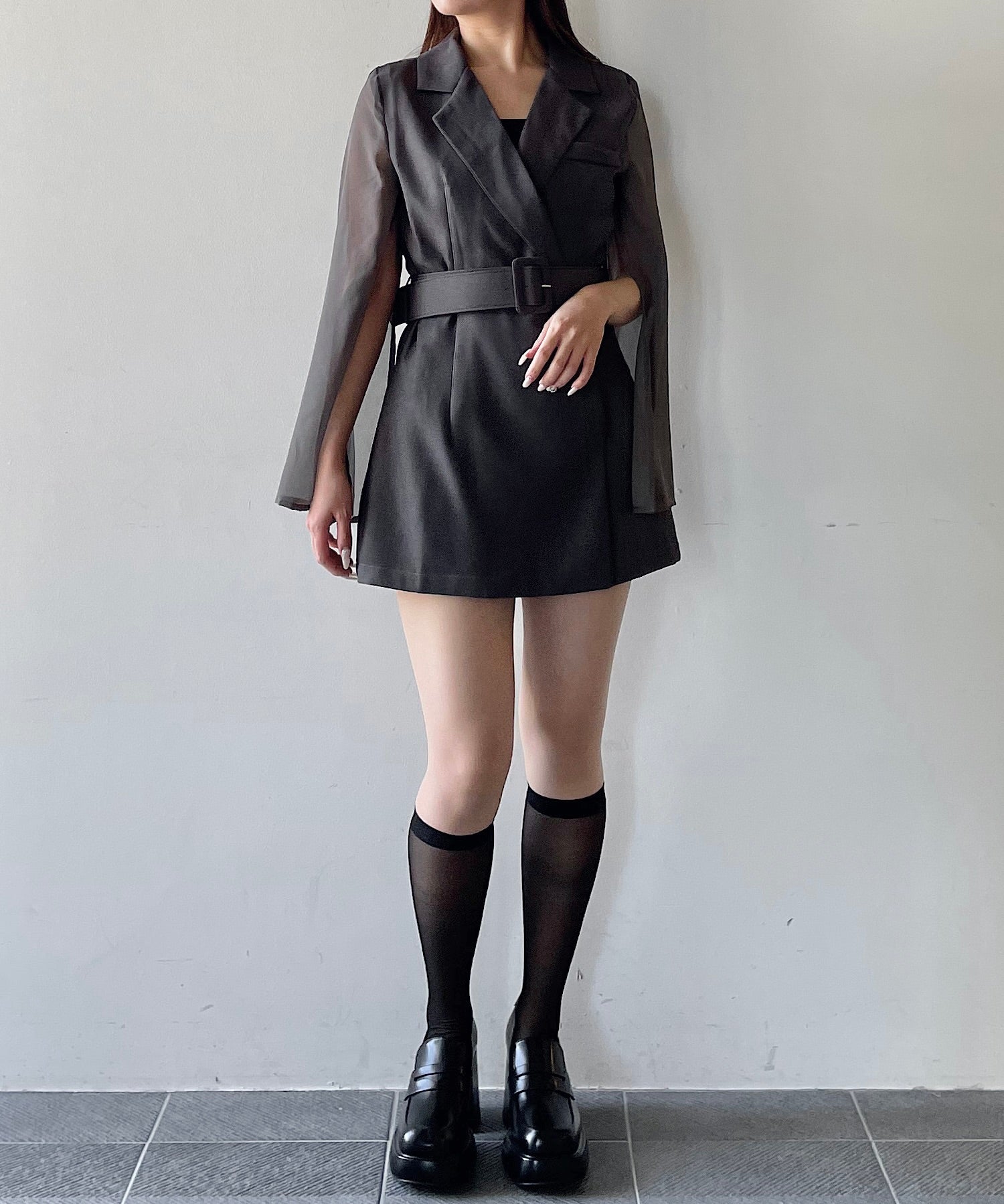 ・スリットスリーブが大人な肌見せを叶えてくれる、テーラードジャケットワンピース♡