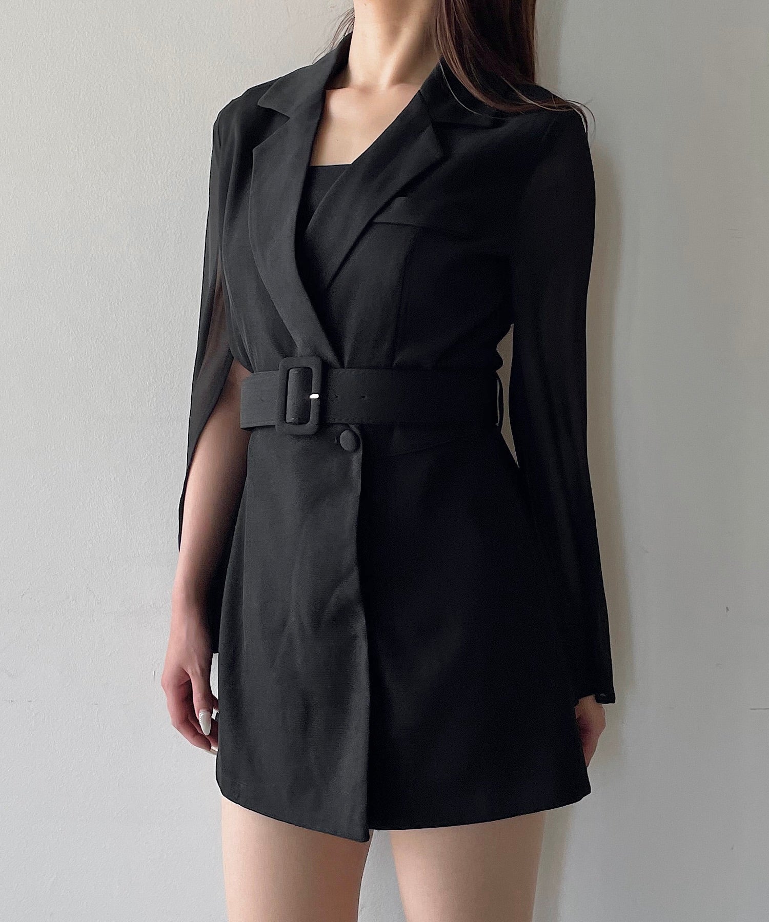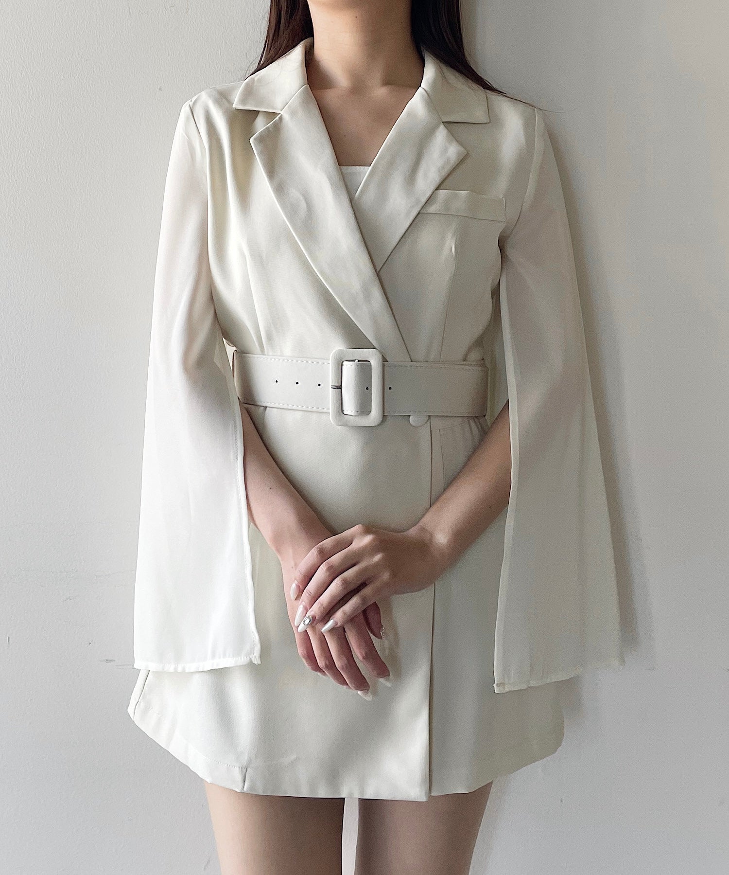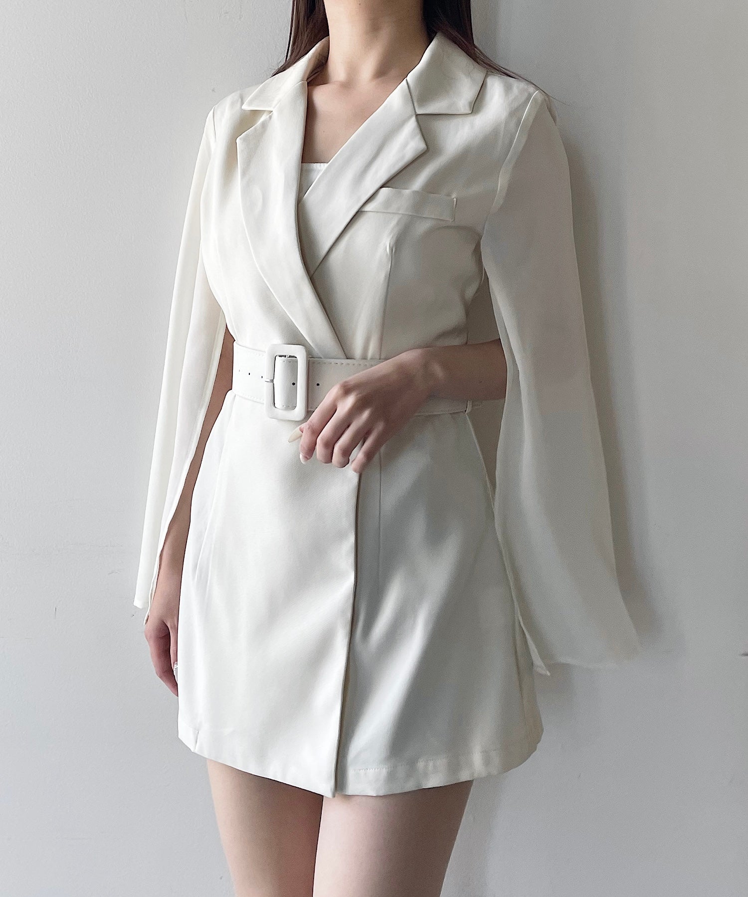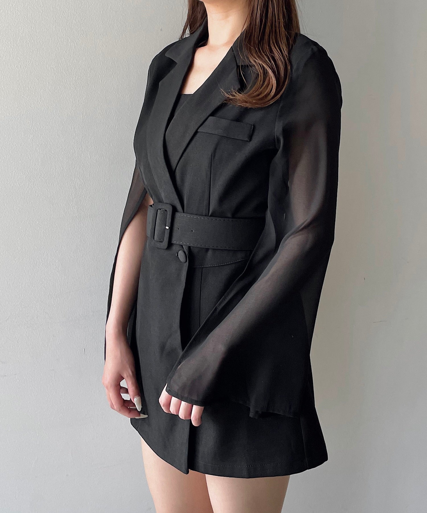 ・スリットスリーブが大人な肌見せを叶えてくれる、テーラードジャケットワンピース♡