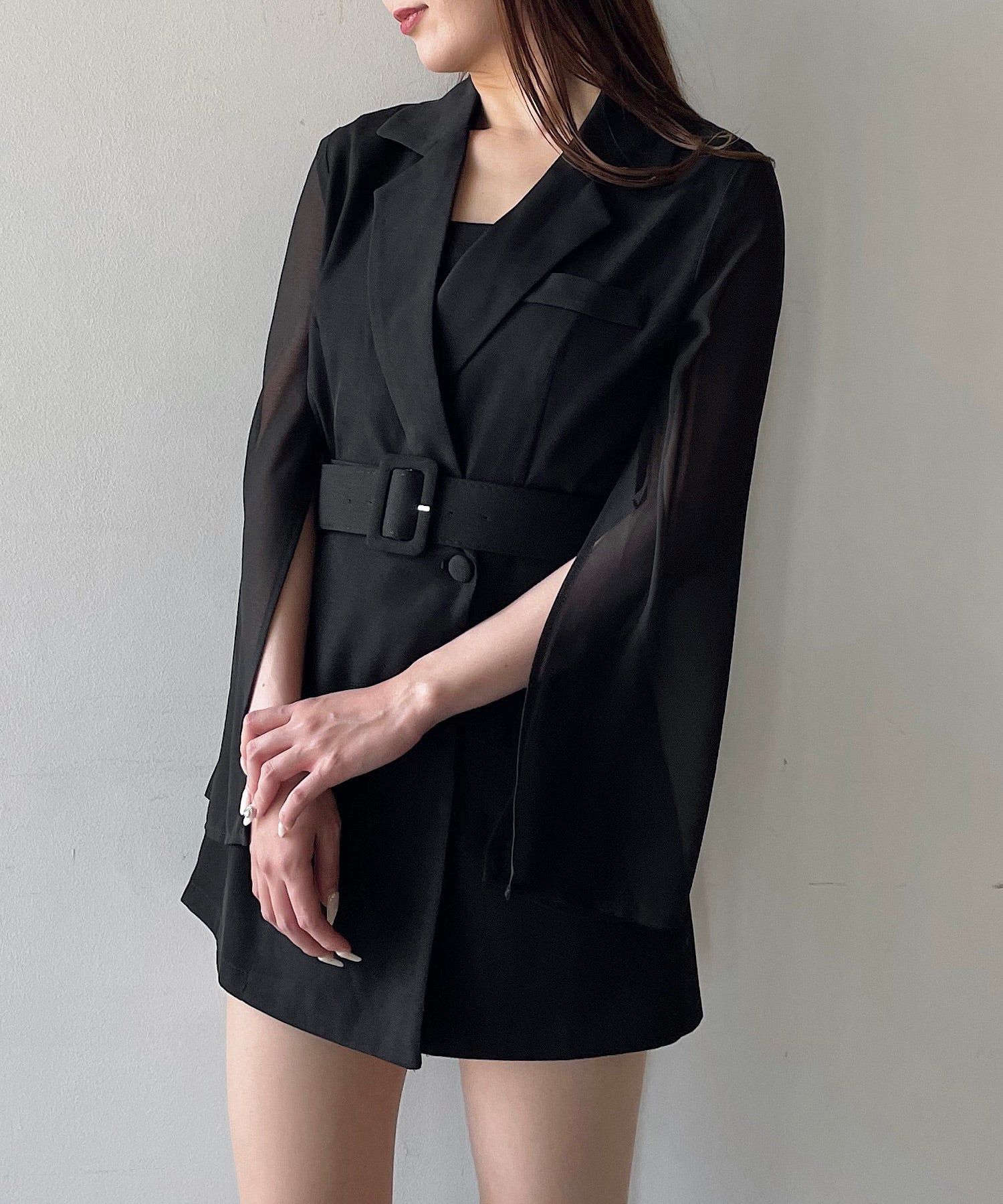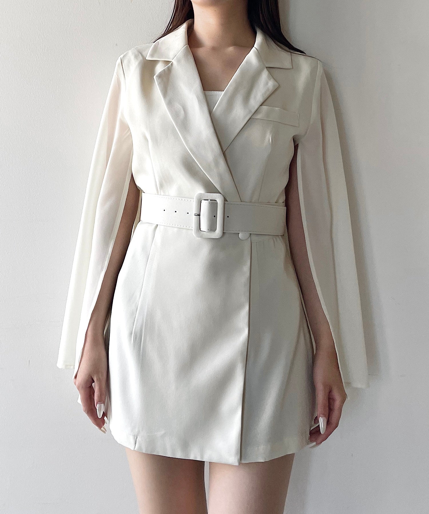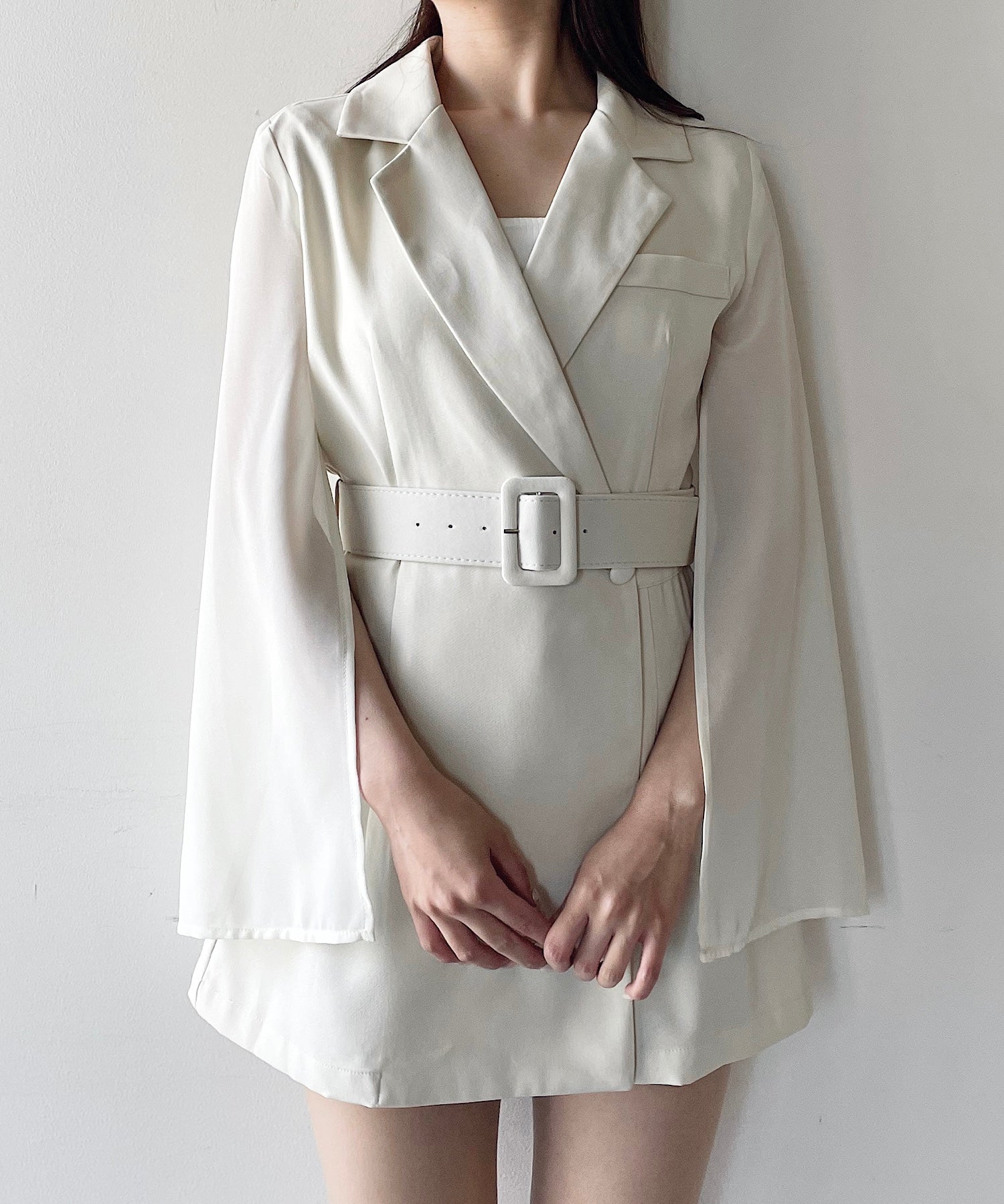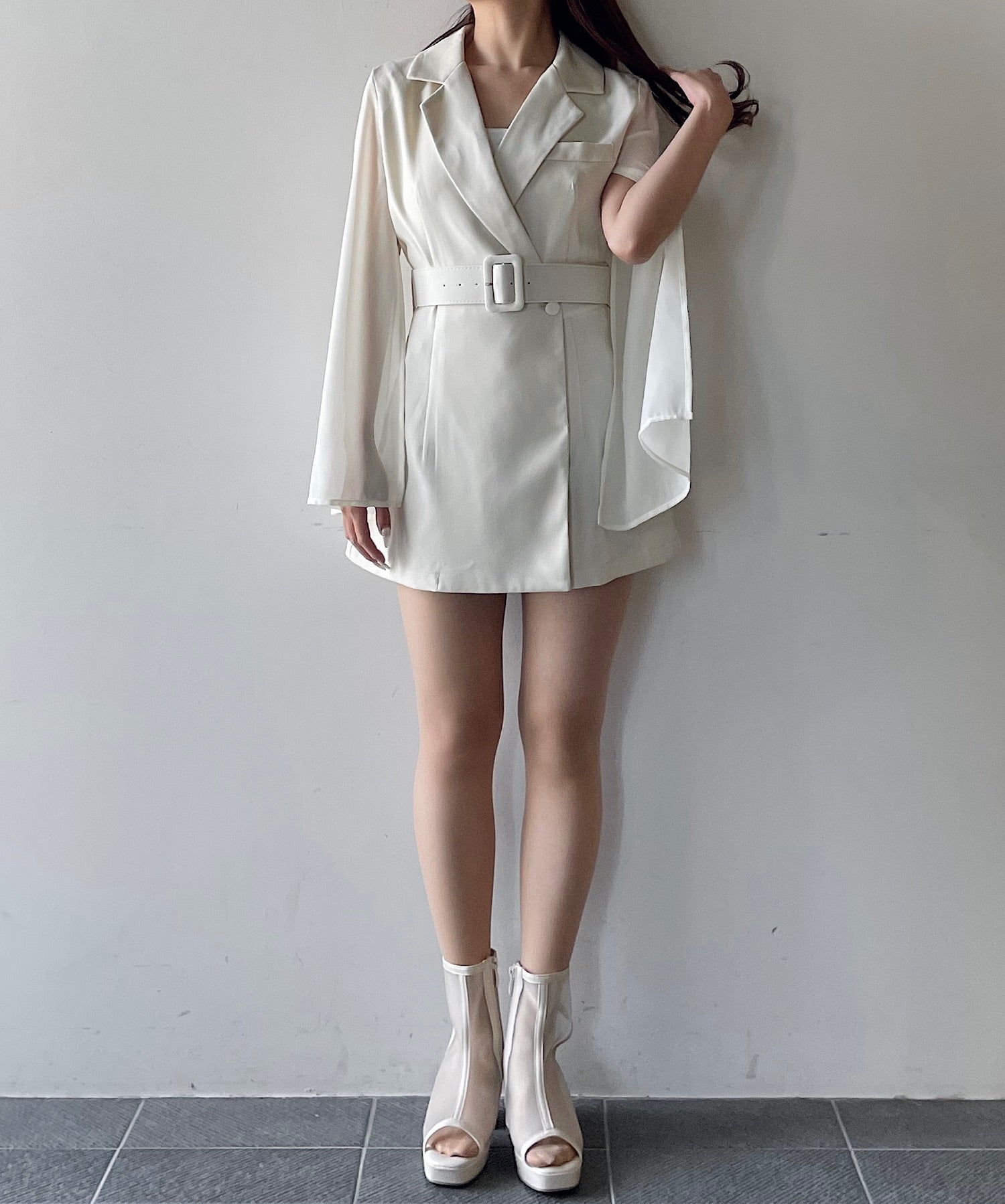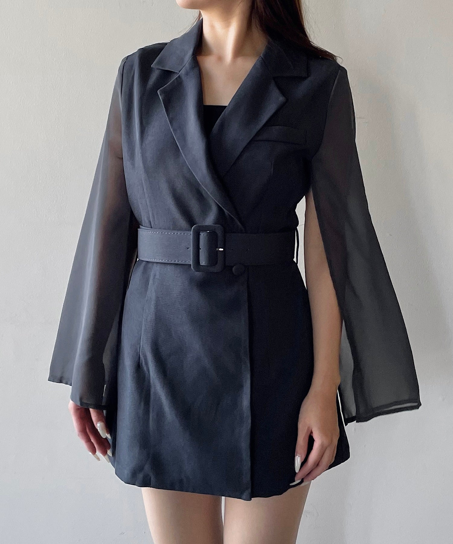 ・スリットスリーブが大人な肌見せを叶えてくれる、テーラードジャケットワンピース♡