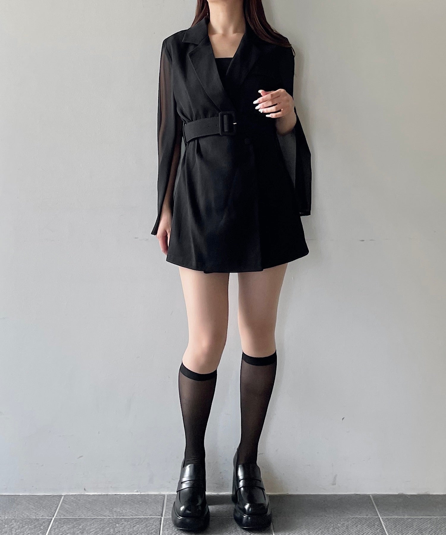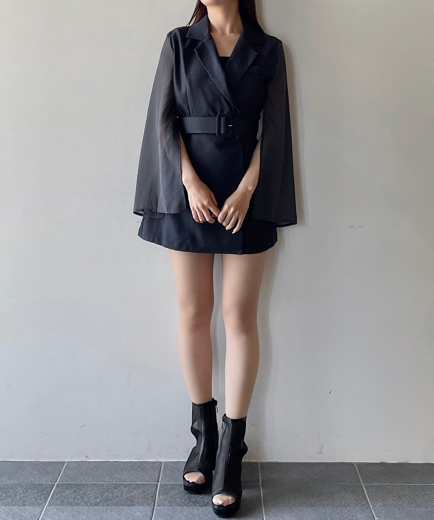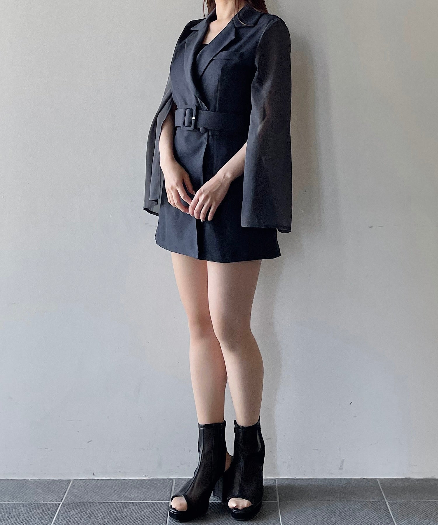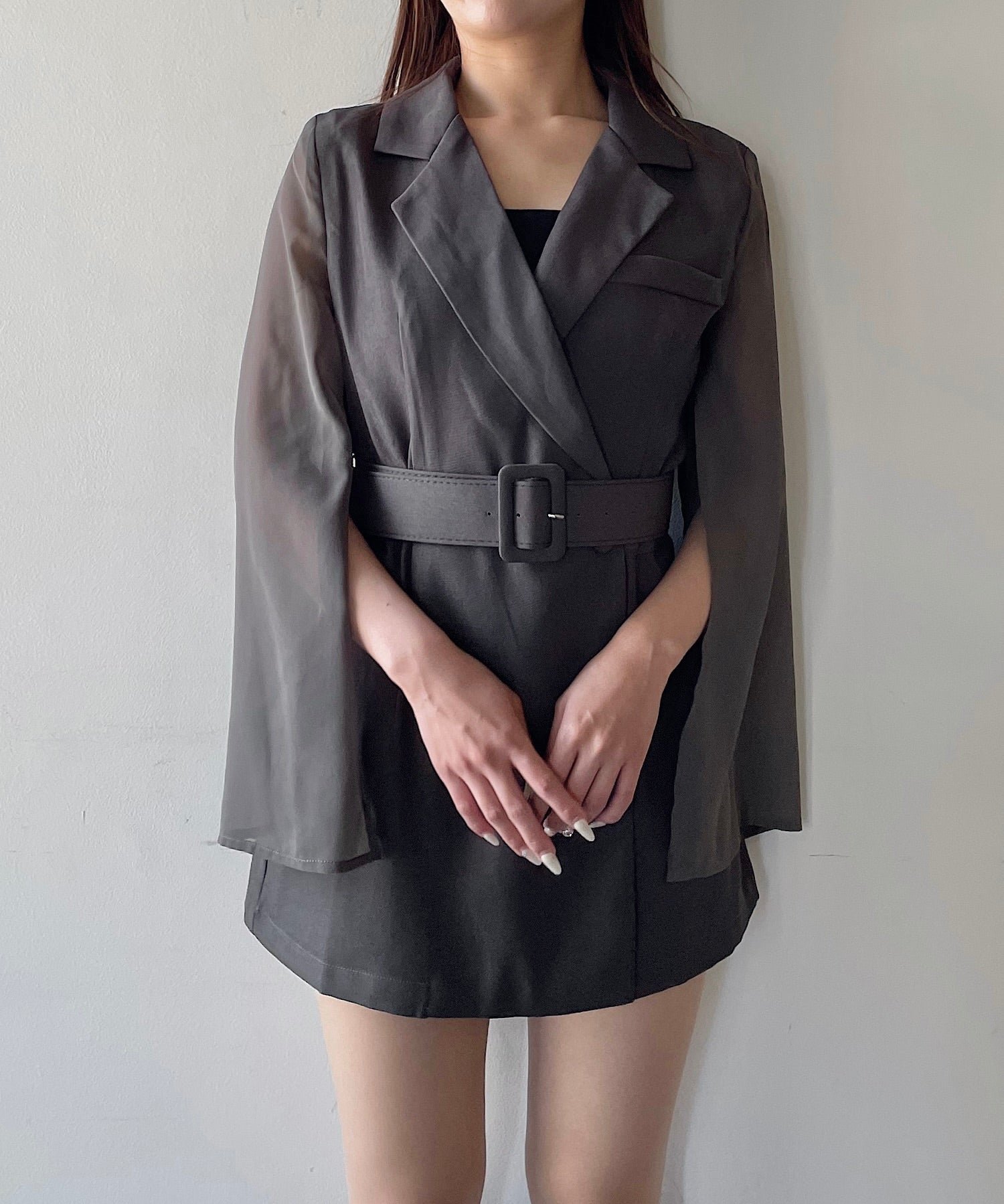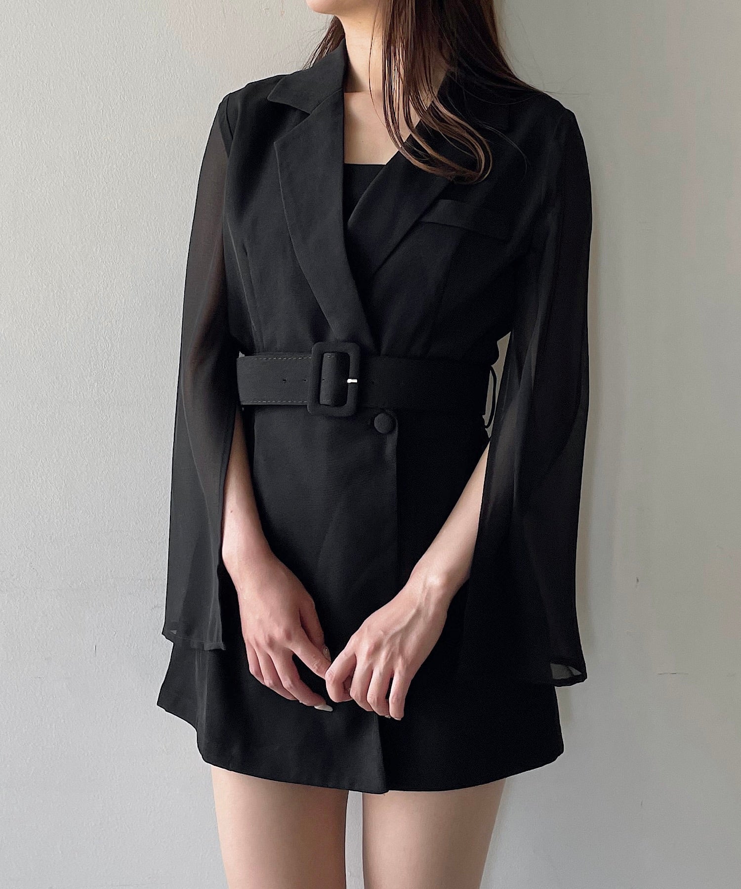 ・スリットスリーブが大人な肌見せを叶えてくれる、テーラードジャケットワンピース♡