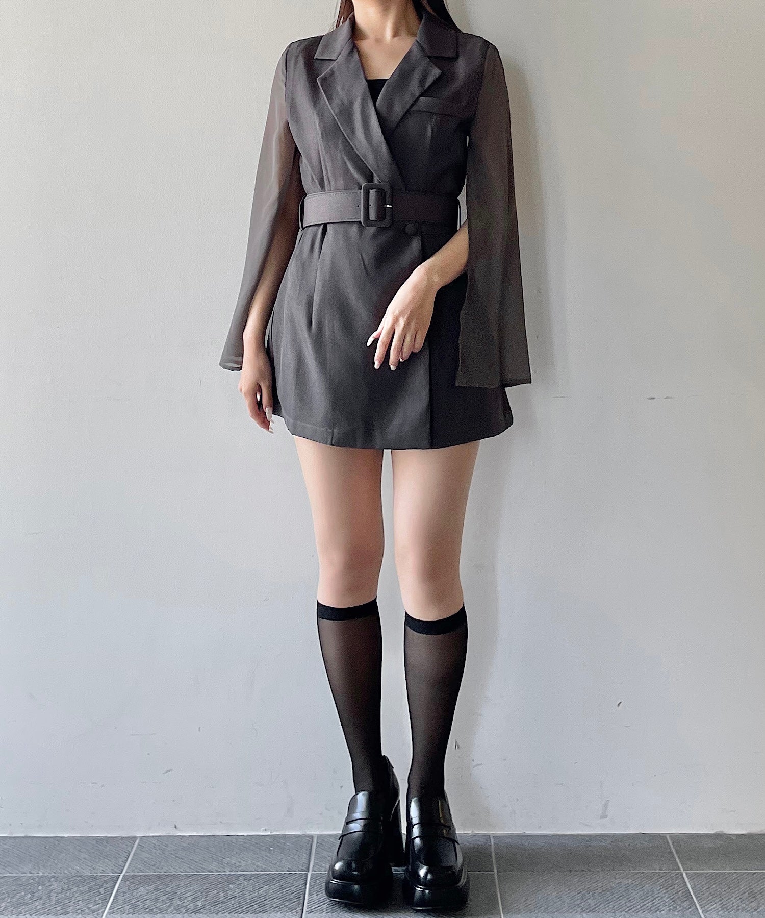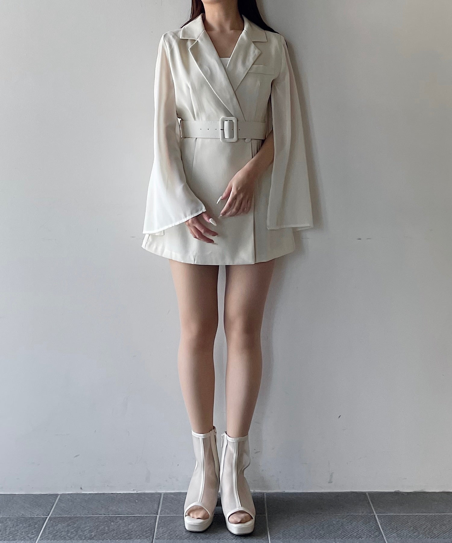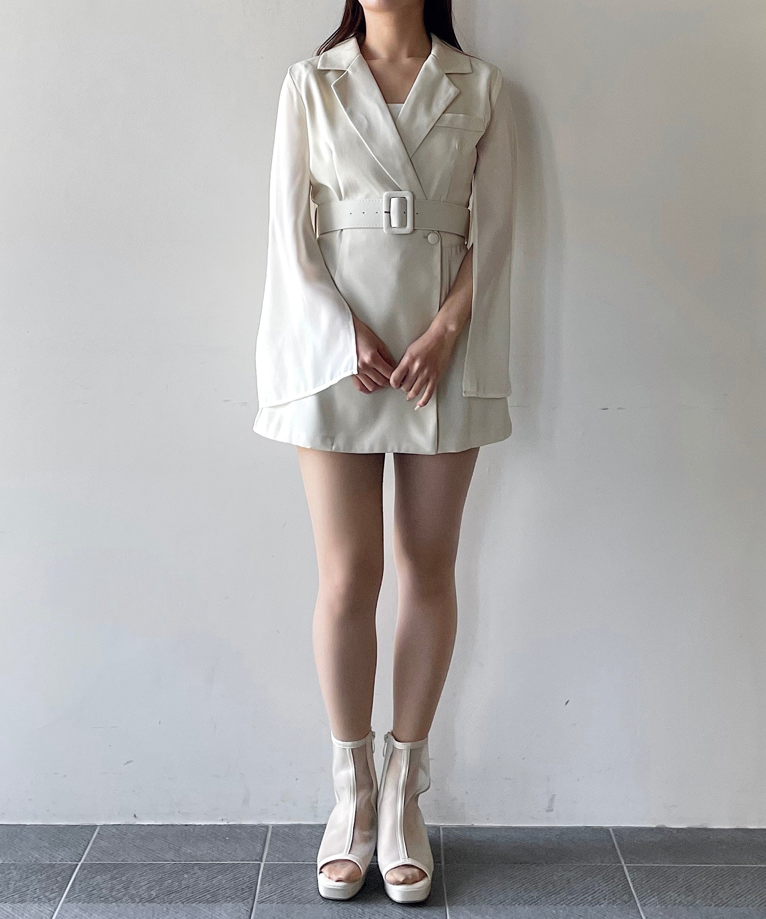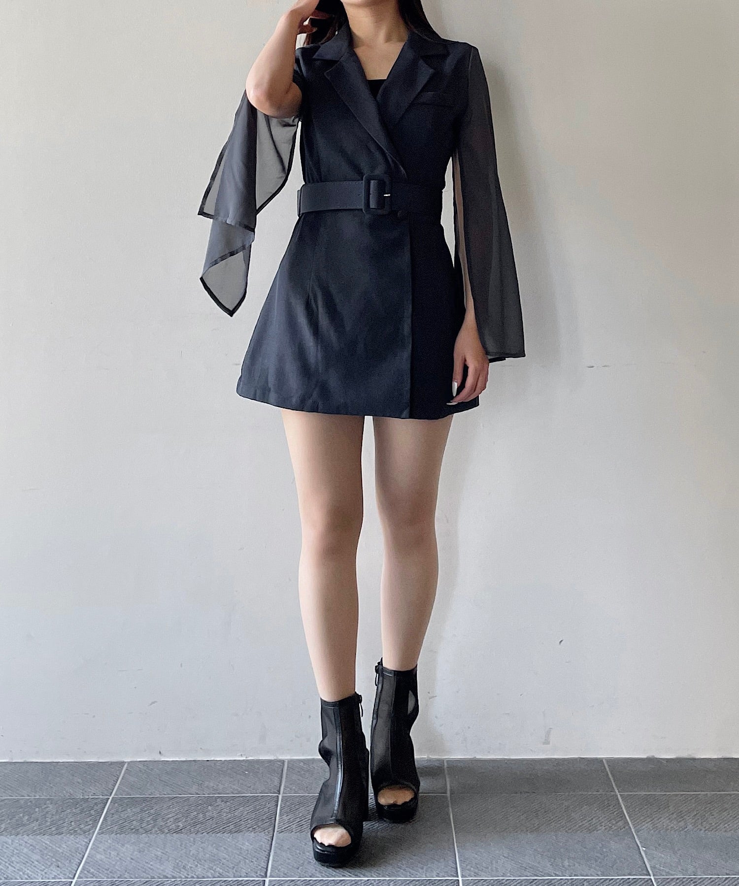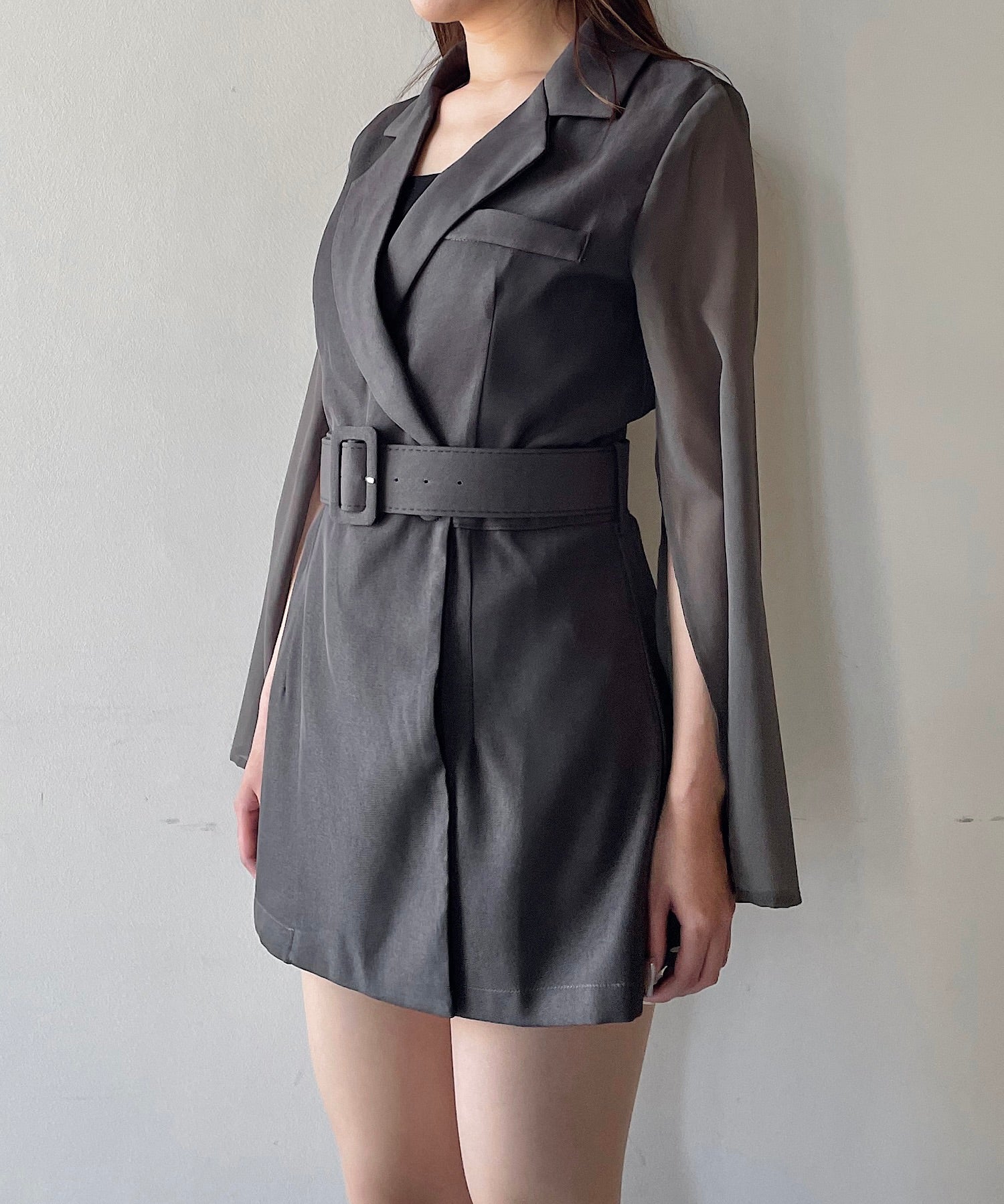 ・スリットスリーブが大人な肌見せを叶えてくれる、テーラードジャケットワンピース♡