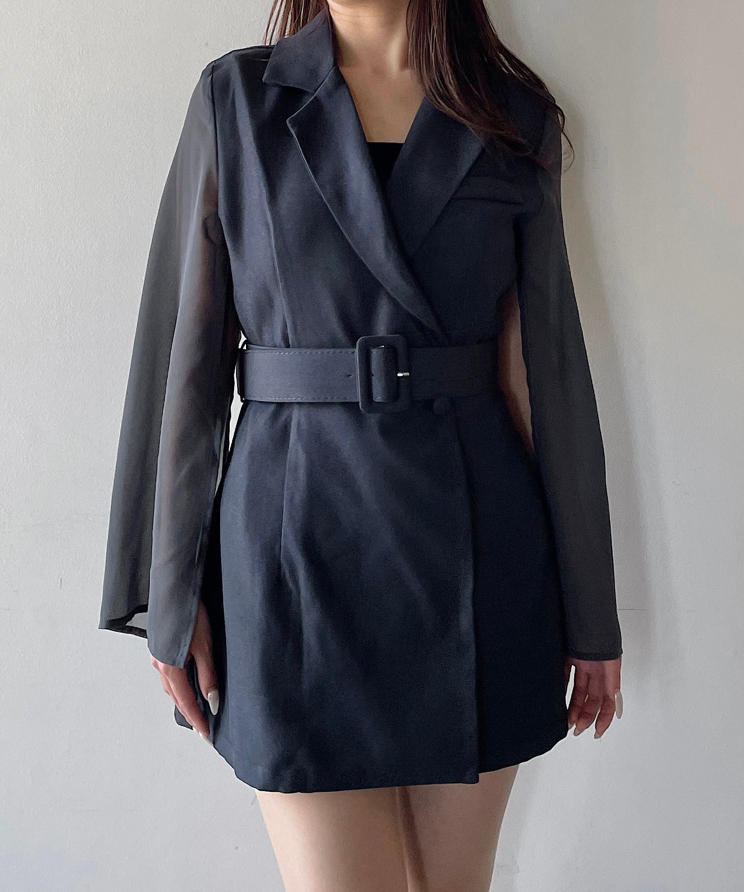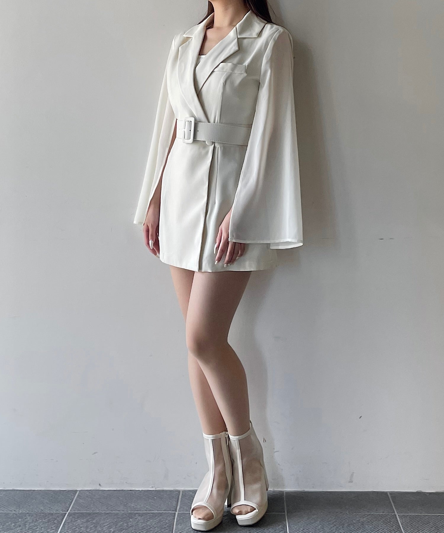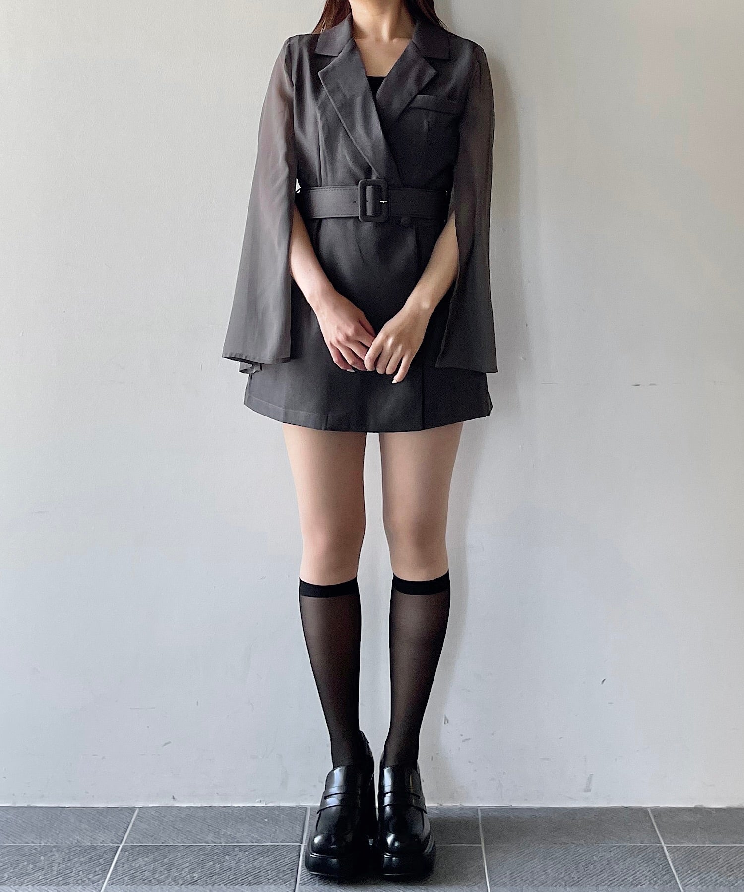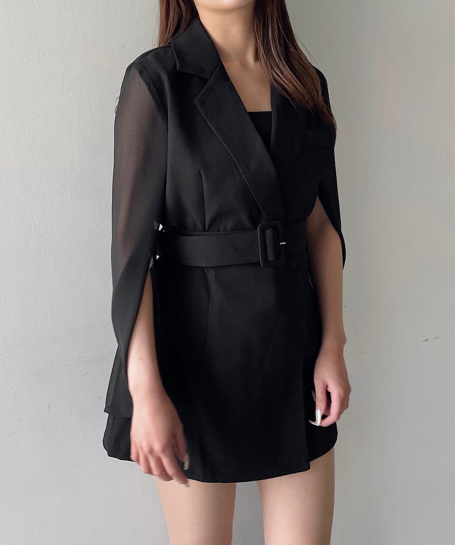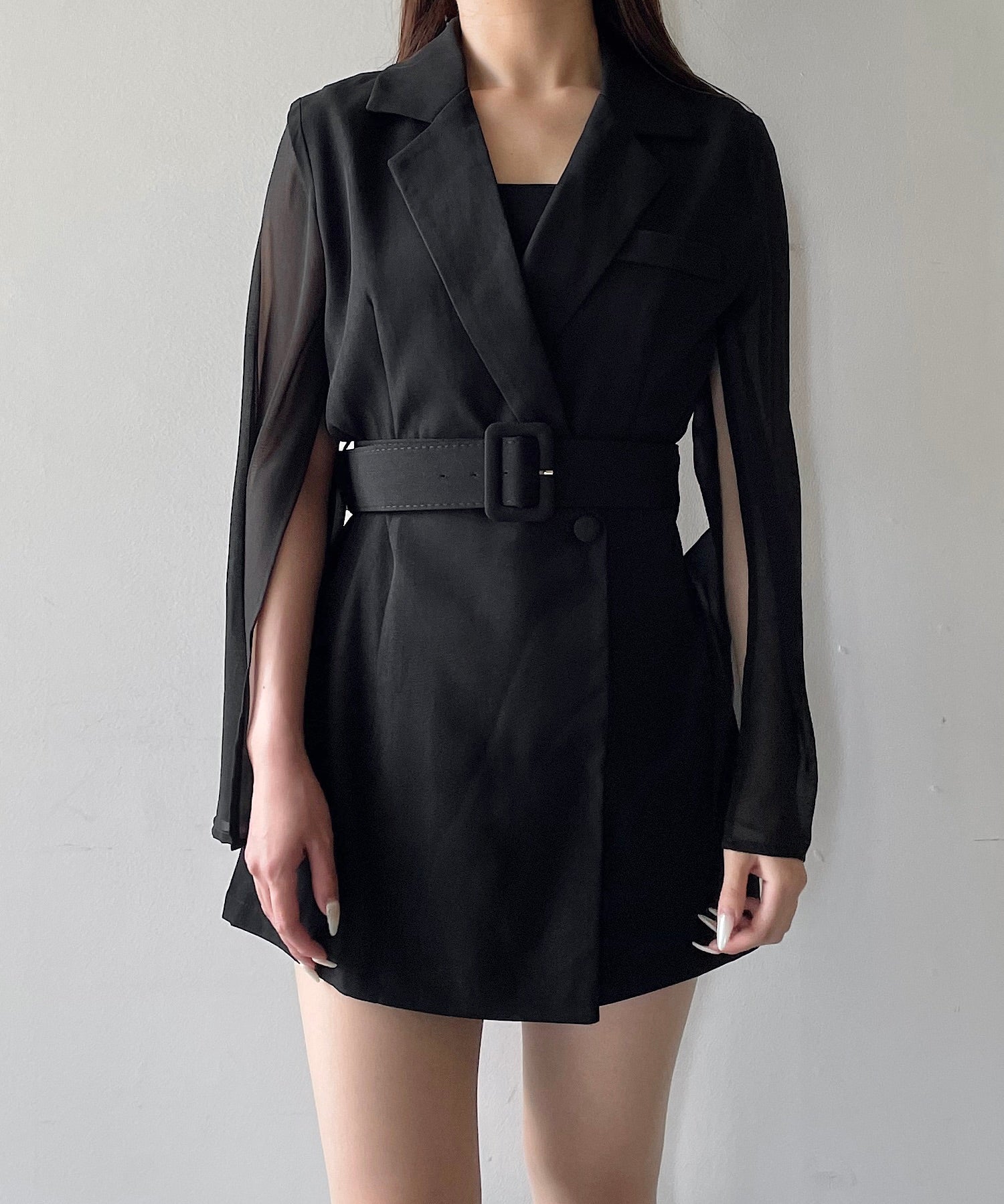・スリットスリーブが大人な肌見せを叶えてくれる、テーラードジャケットワンピース♡