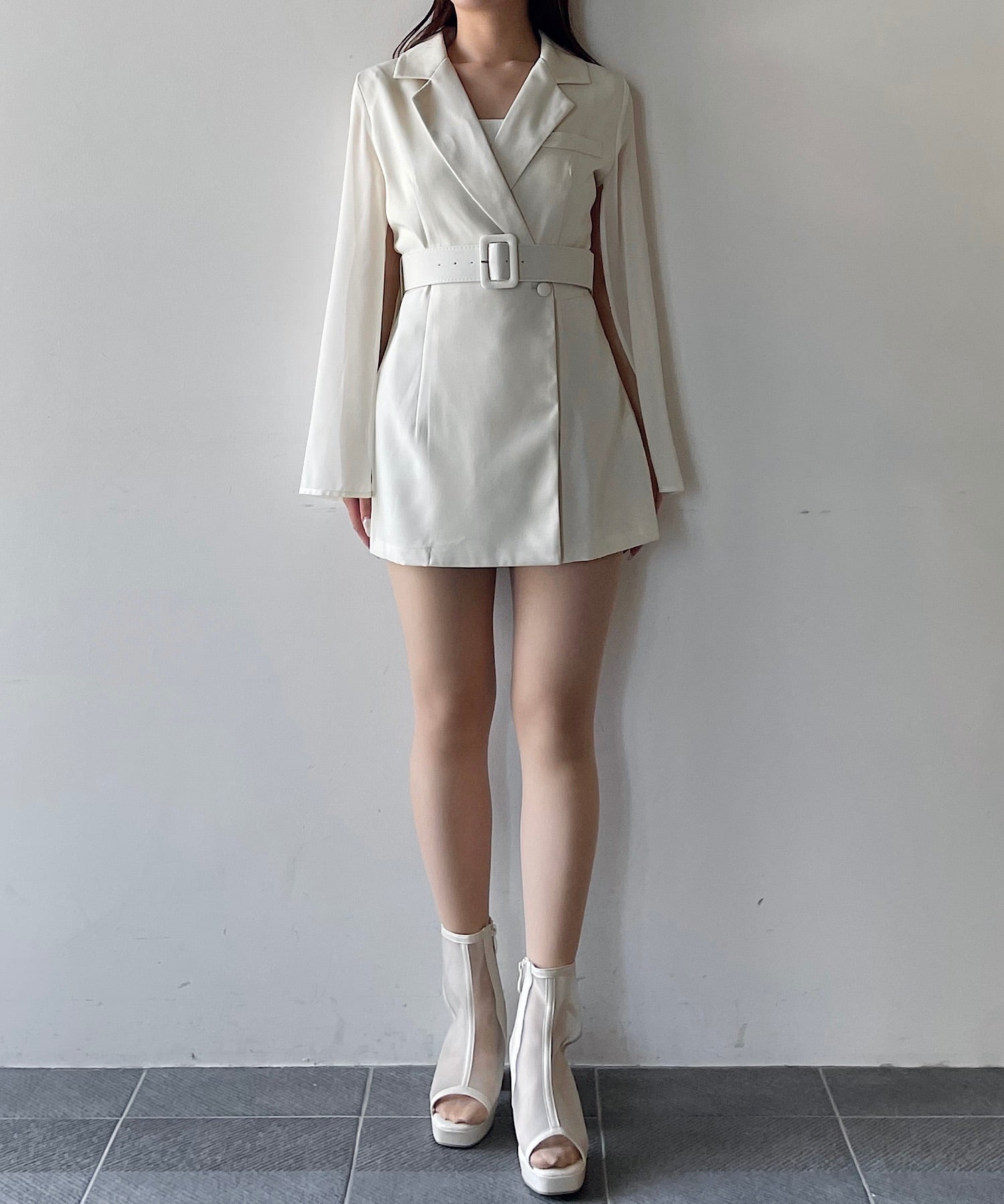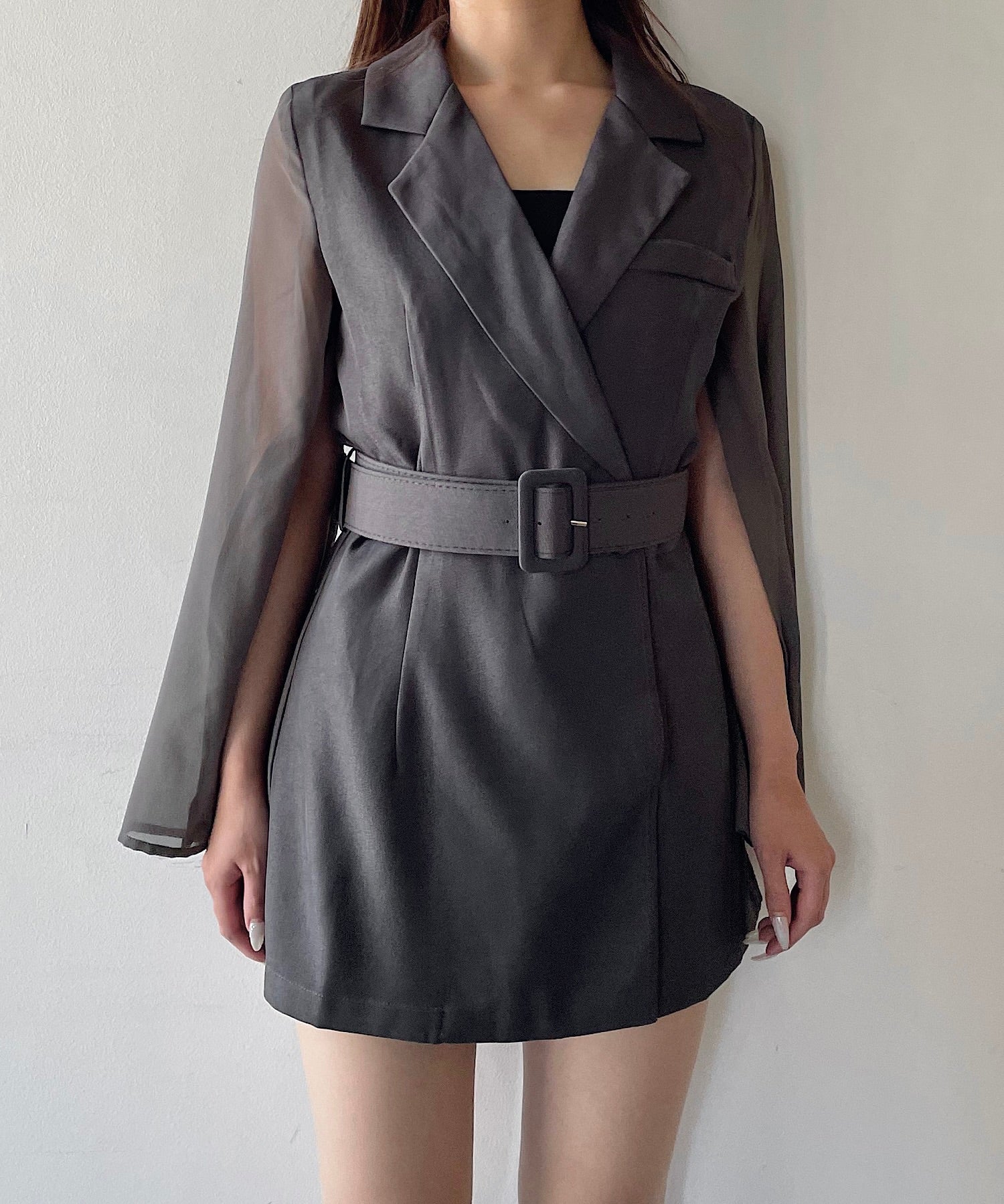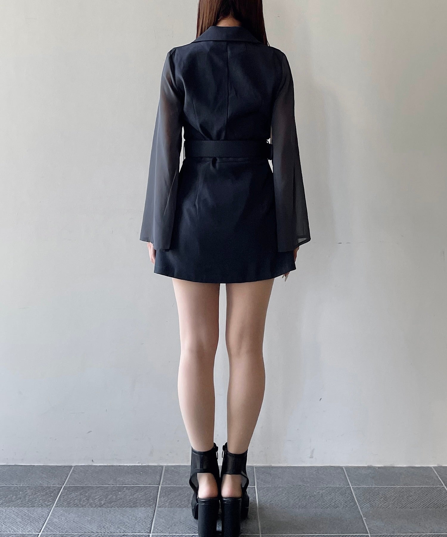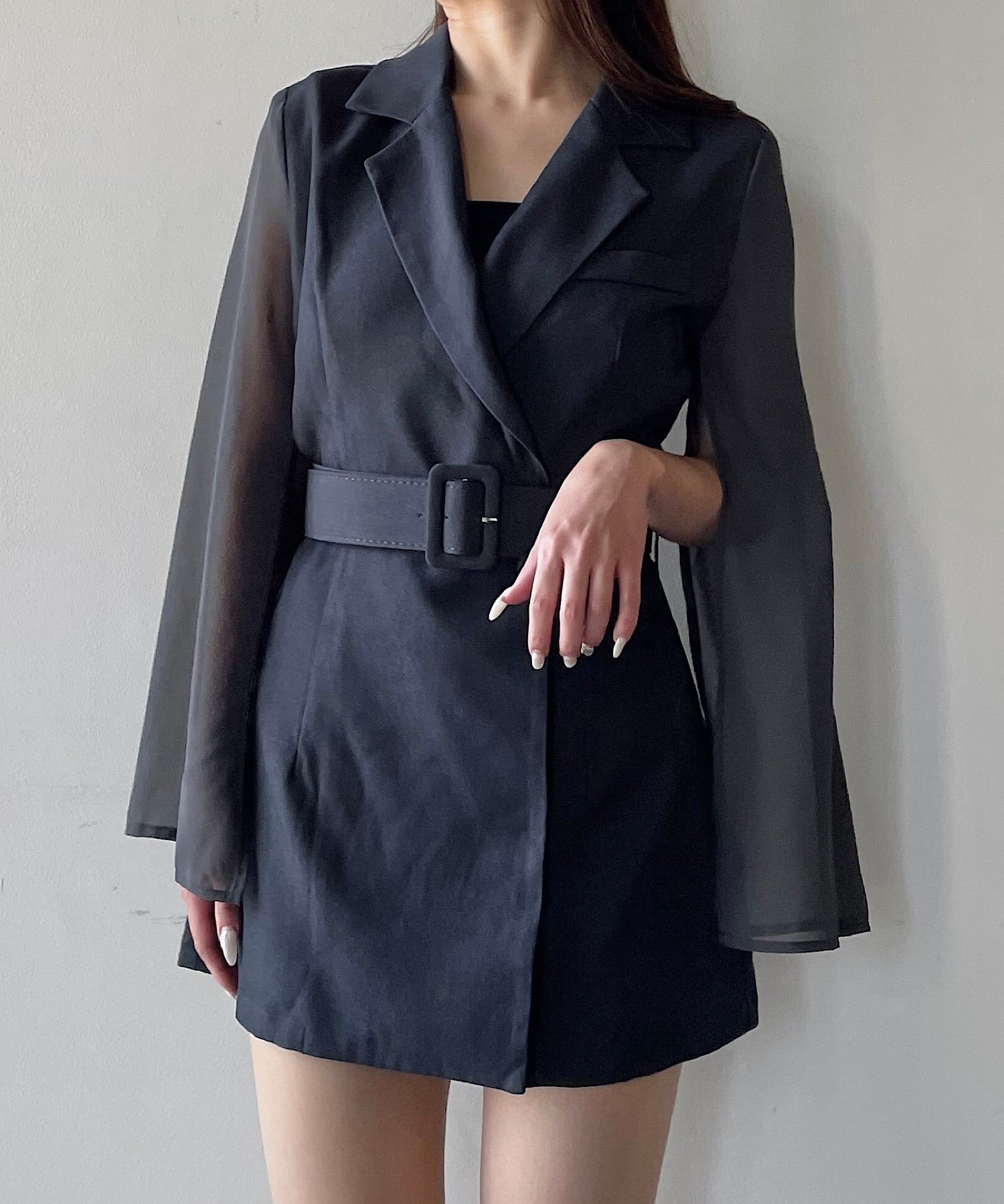 ・スリットスリーブが大人な肌見せを叶えてくれる、テーラードジャケットワンピース♡