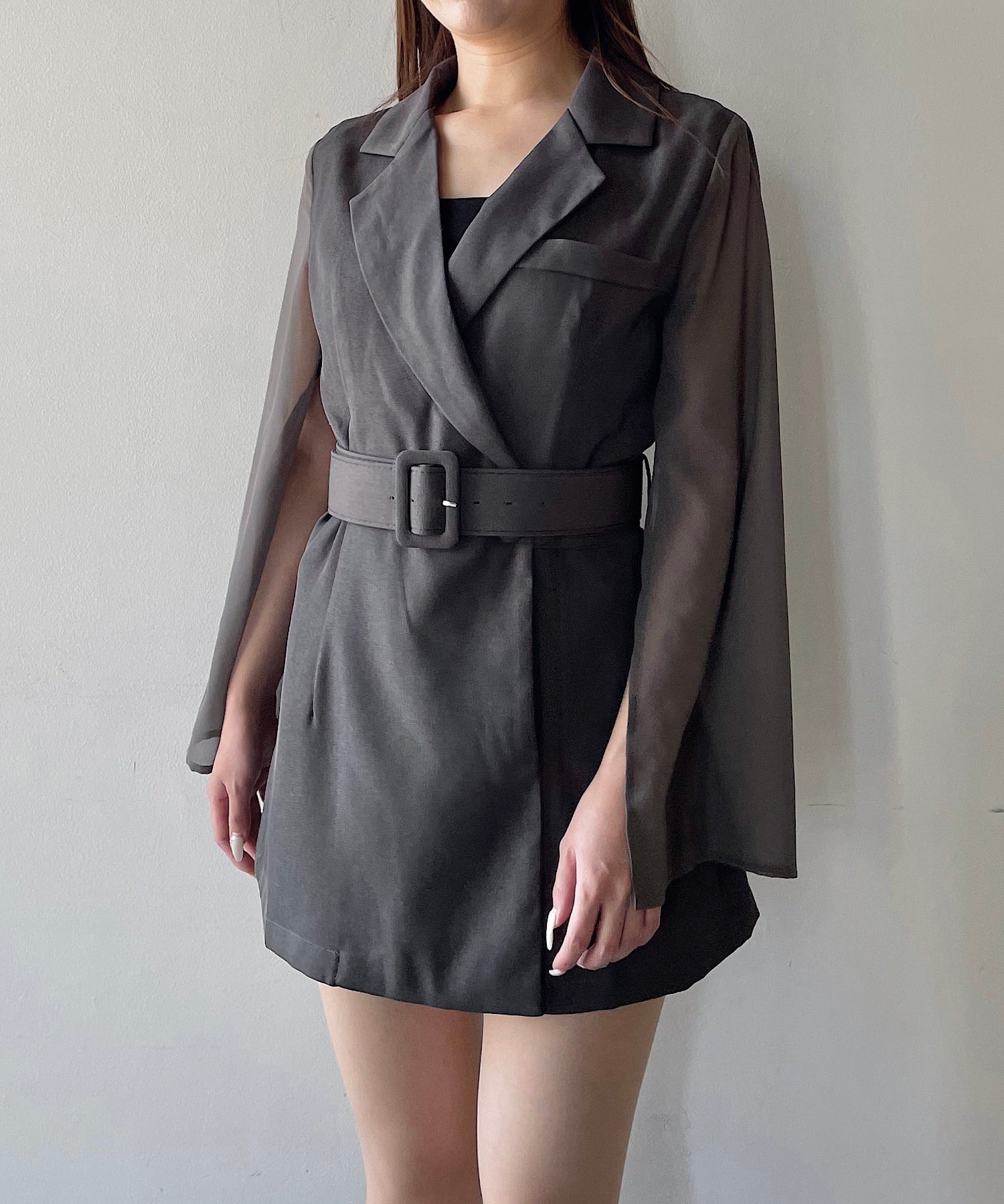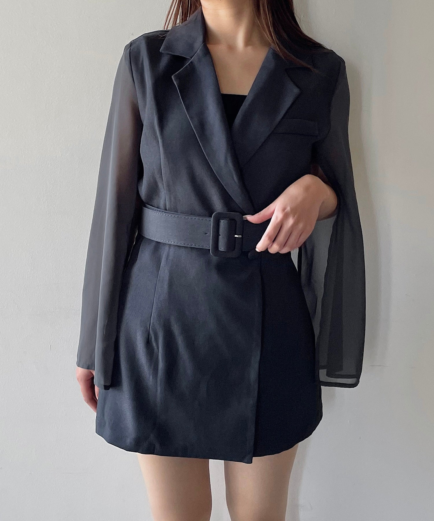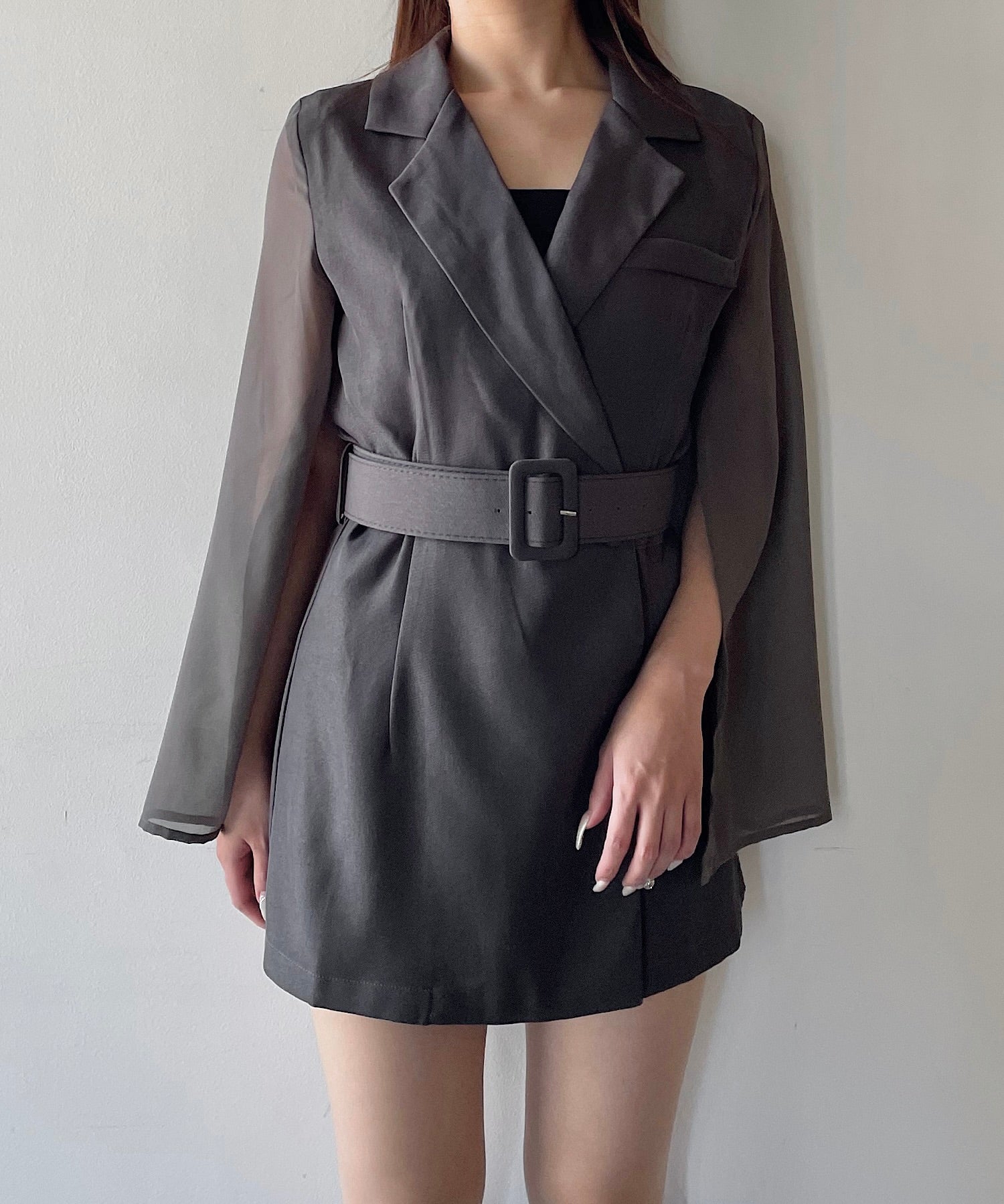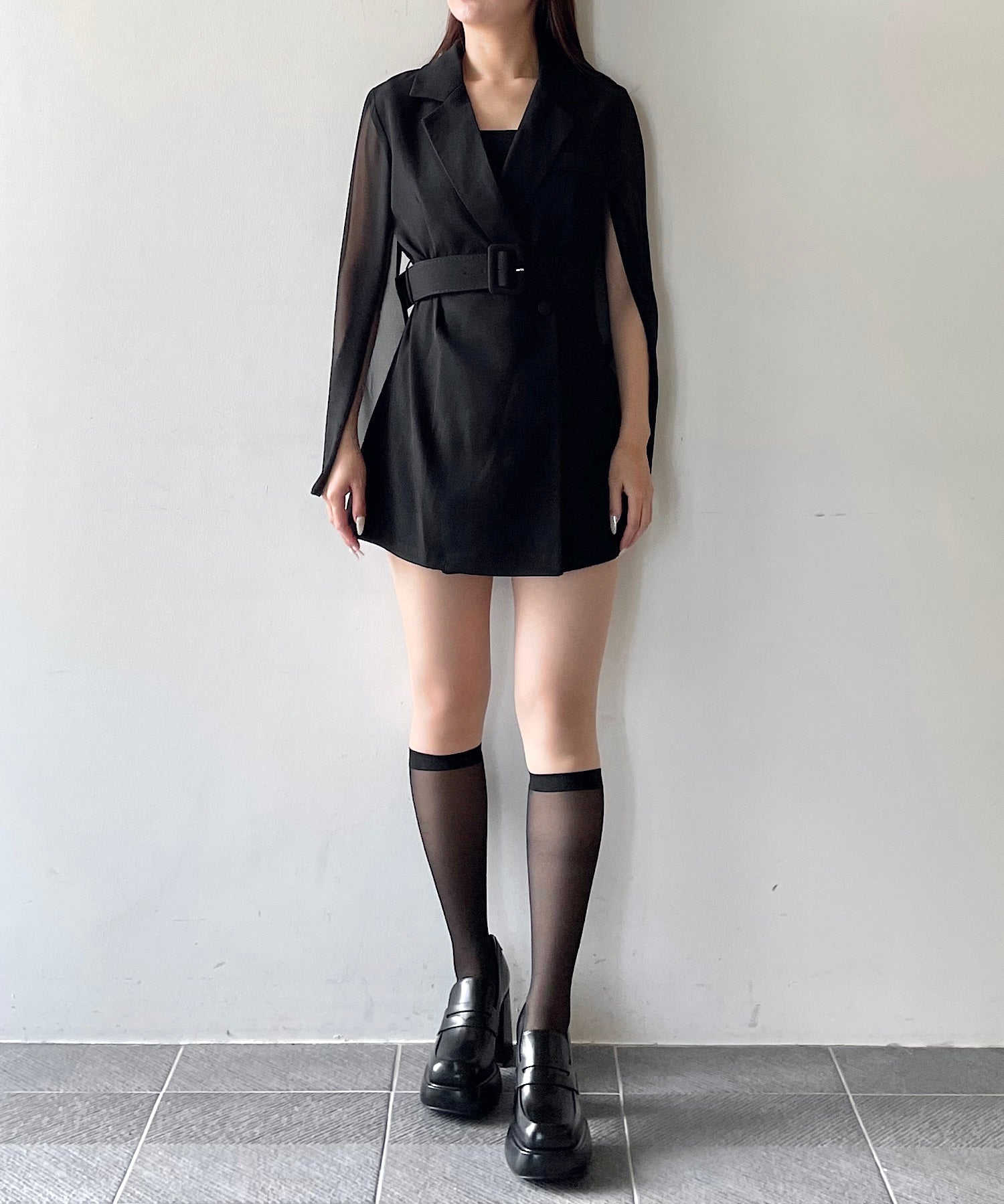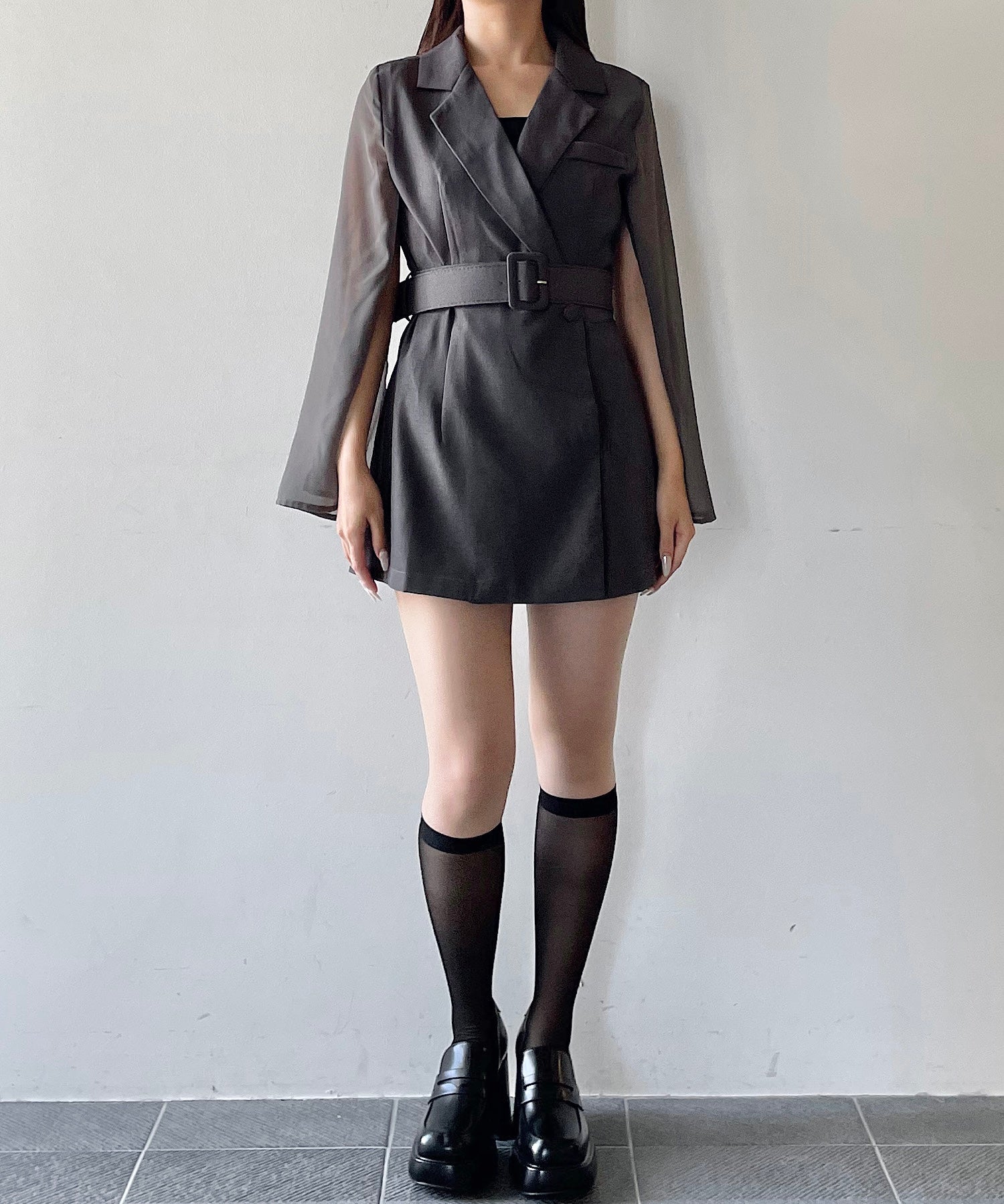 ・スリットスリーブが大人な肌見せを叶えてくれる、テーラードジャケットワンピース♡