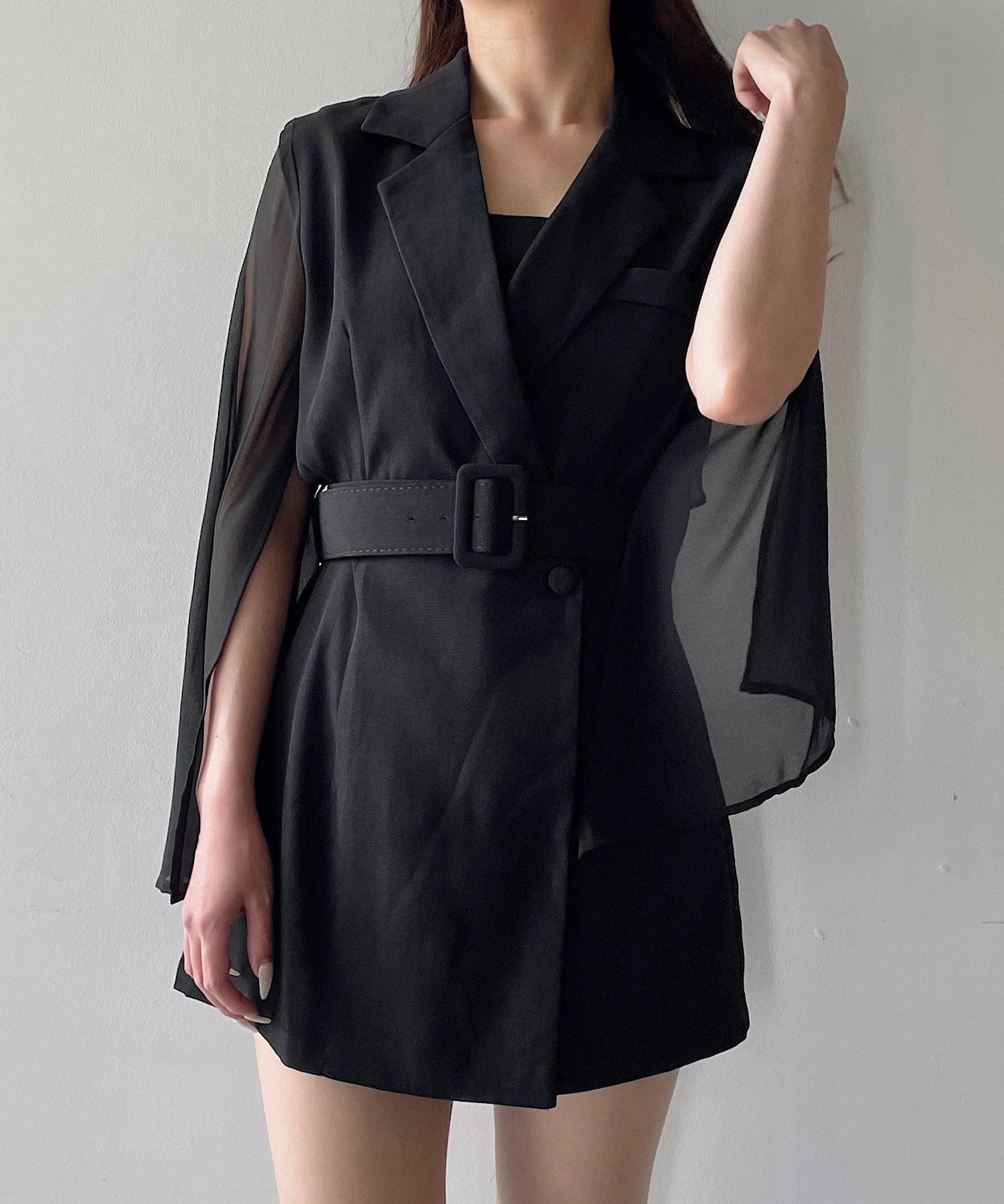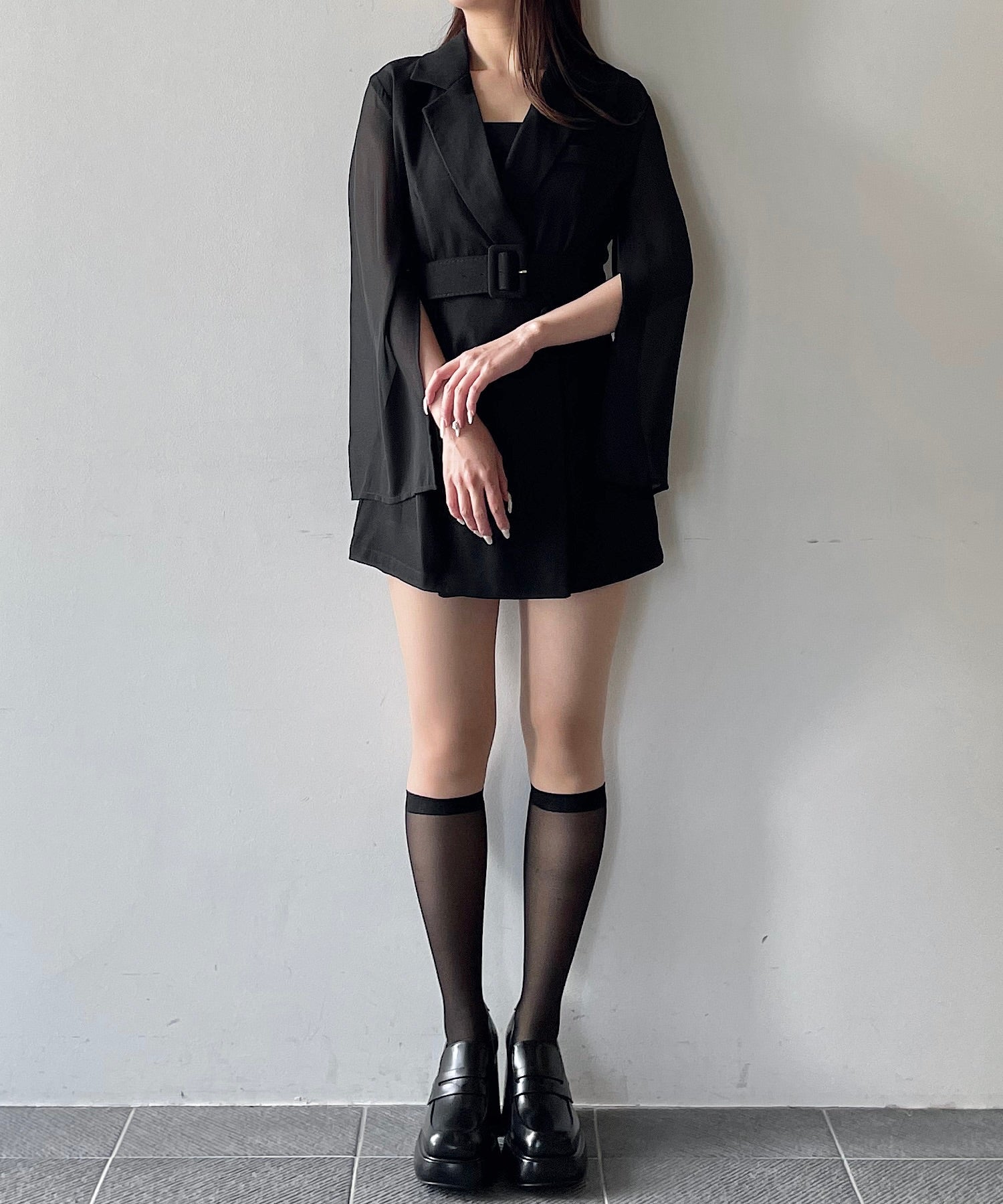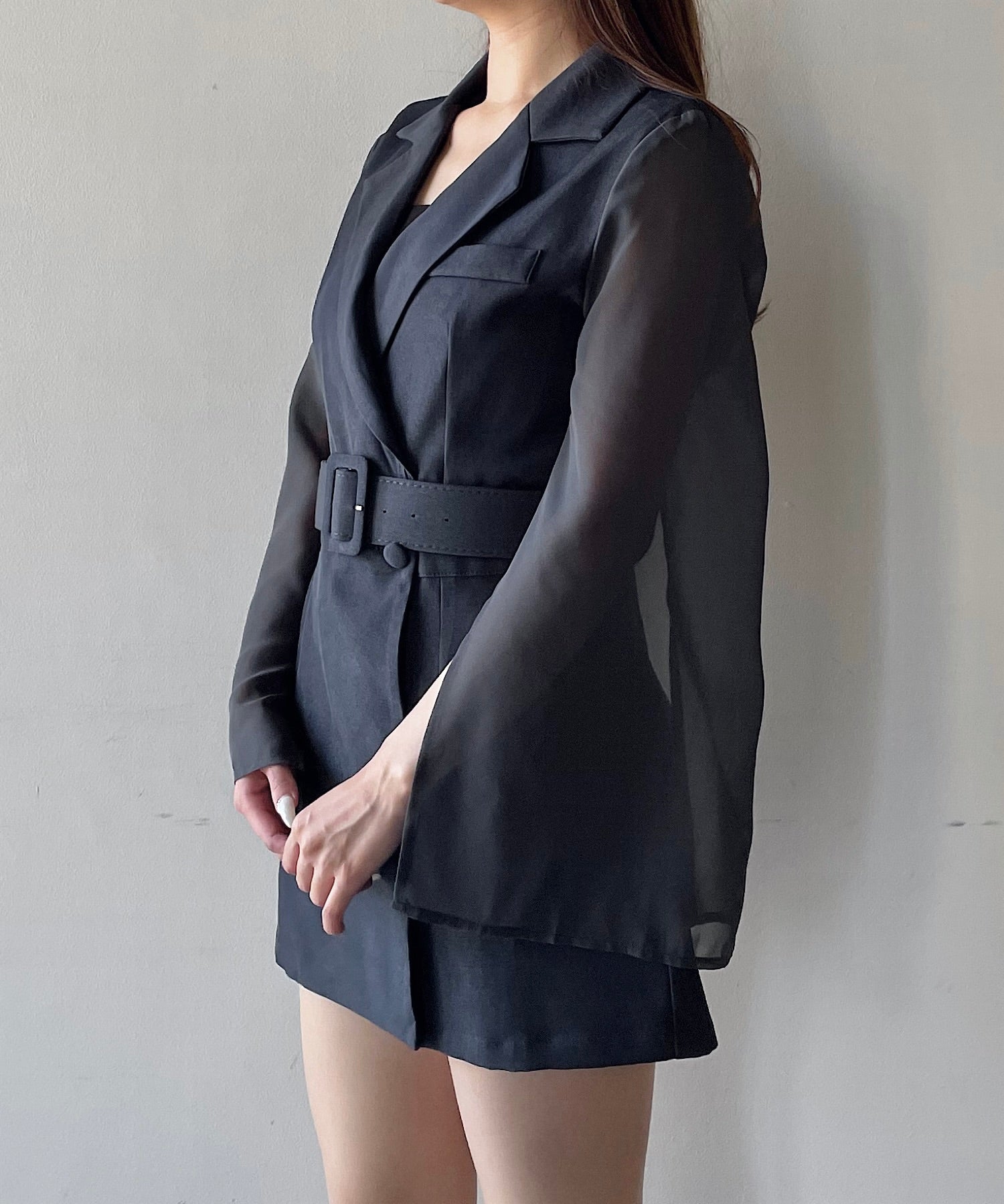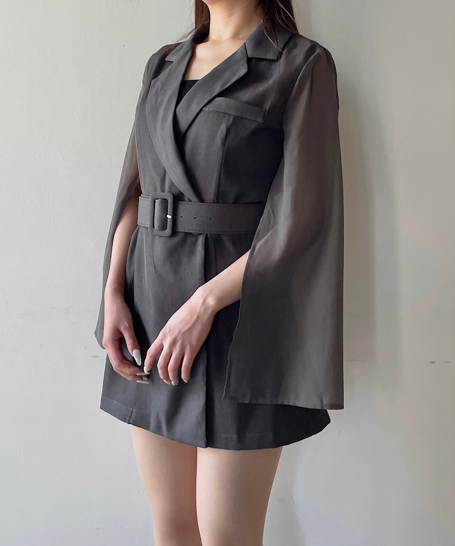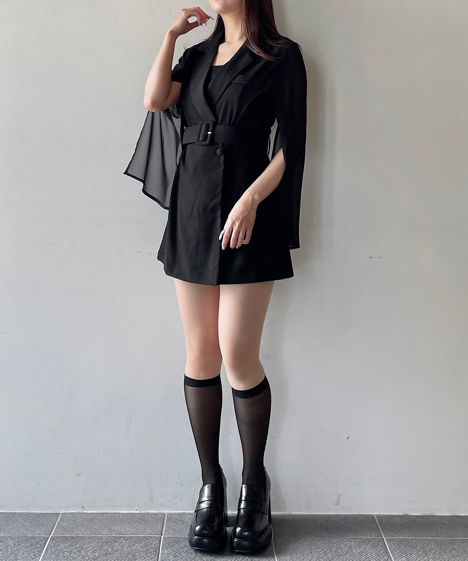 ・スリットスリーブが大人な肌見せを叶えてくれる、テーラードジャケットワンピース♡