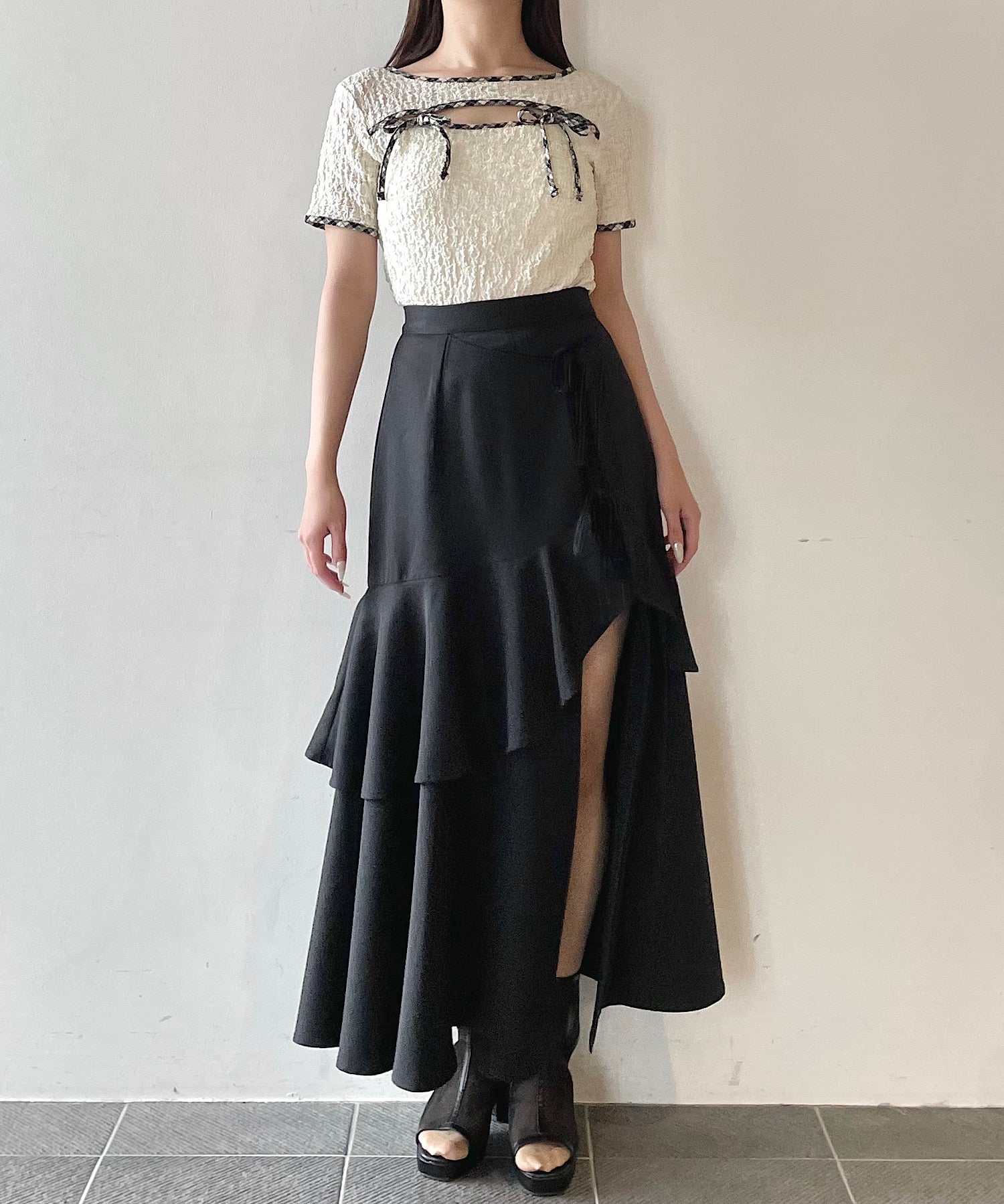 ・ロングスカートを合わせると、きれいめな大人お姉さんコーデに♡