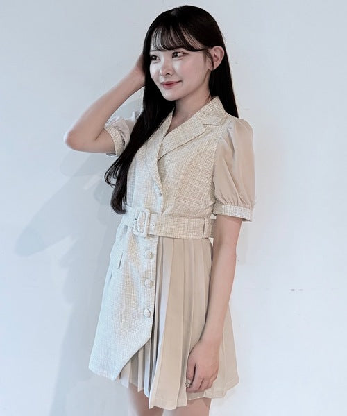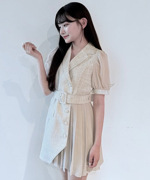 ・シアー素材とのセパレートがポイントのジャケットワンピース。
