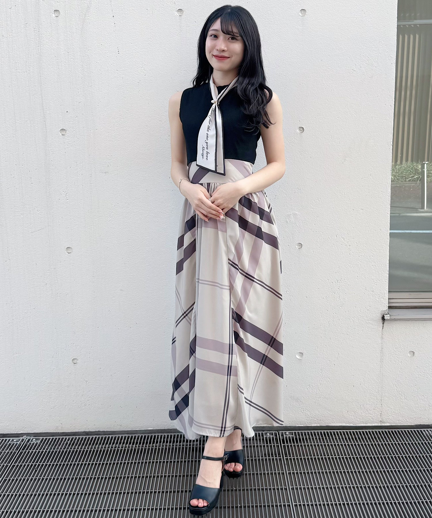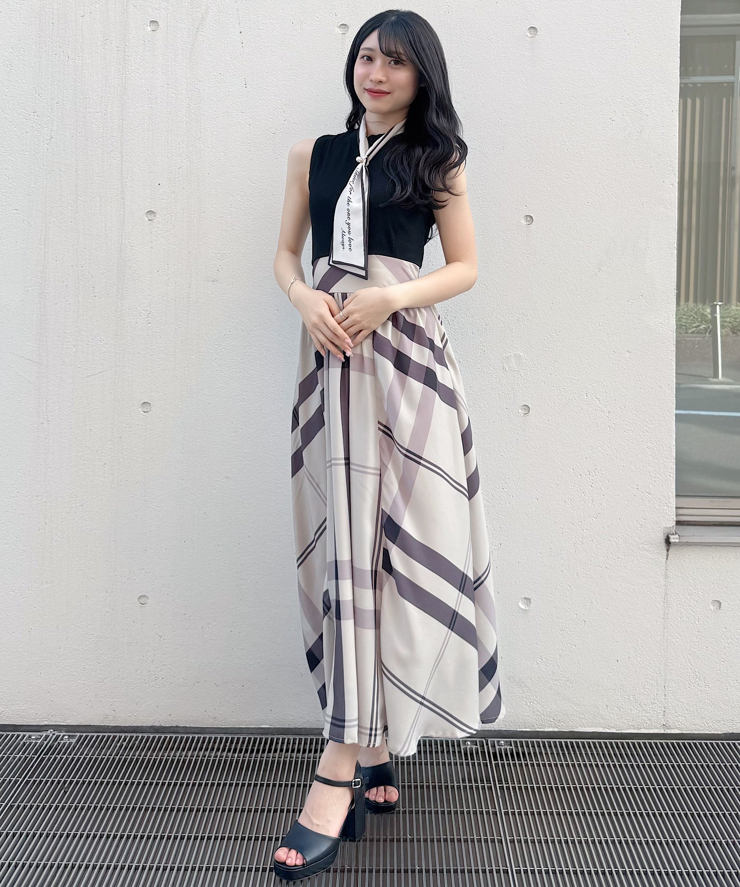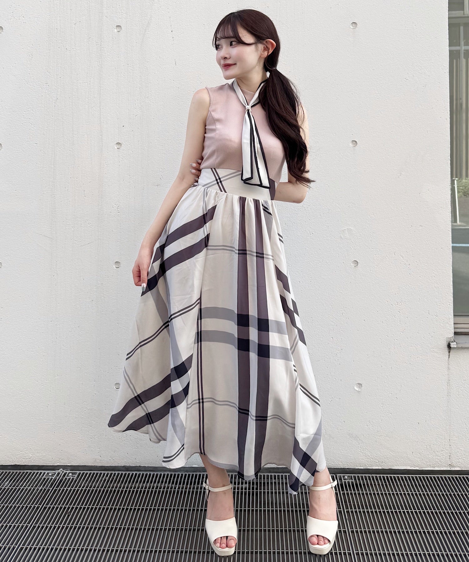・スカート部分のチェック柄が上品な大人かわいいドッキングワンピース♡
