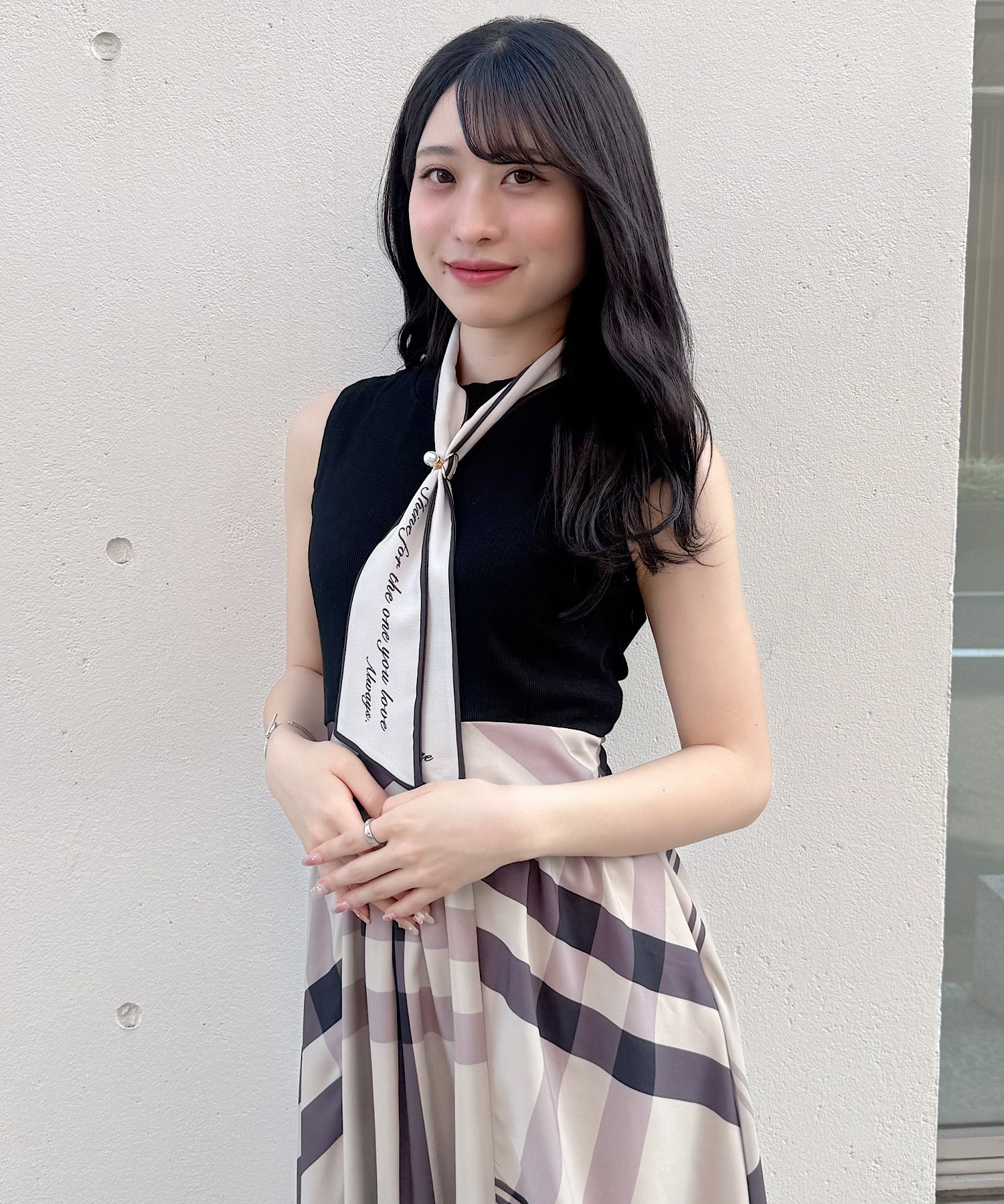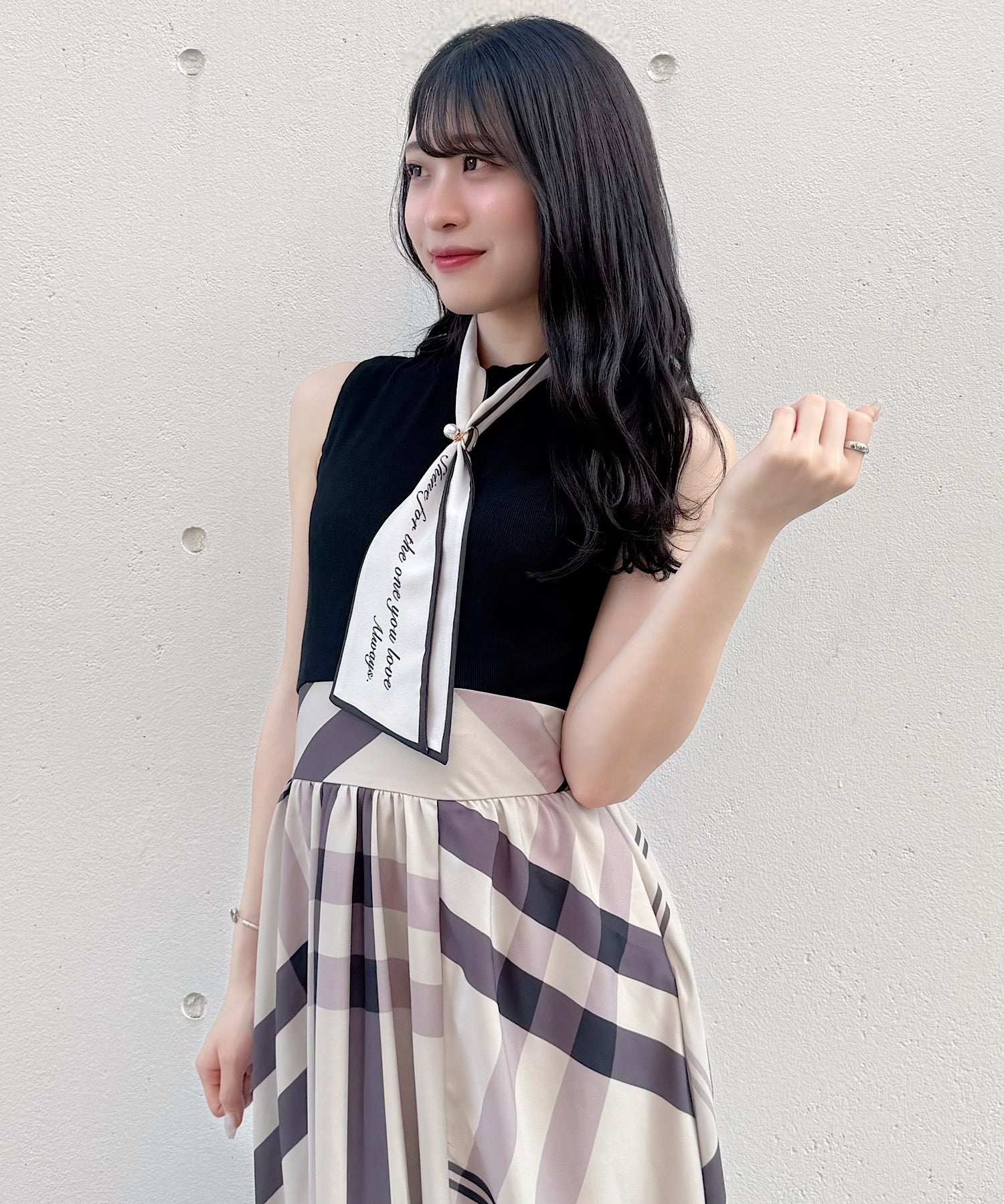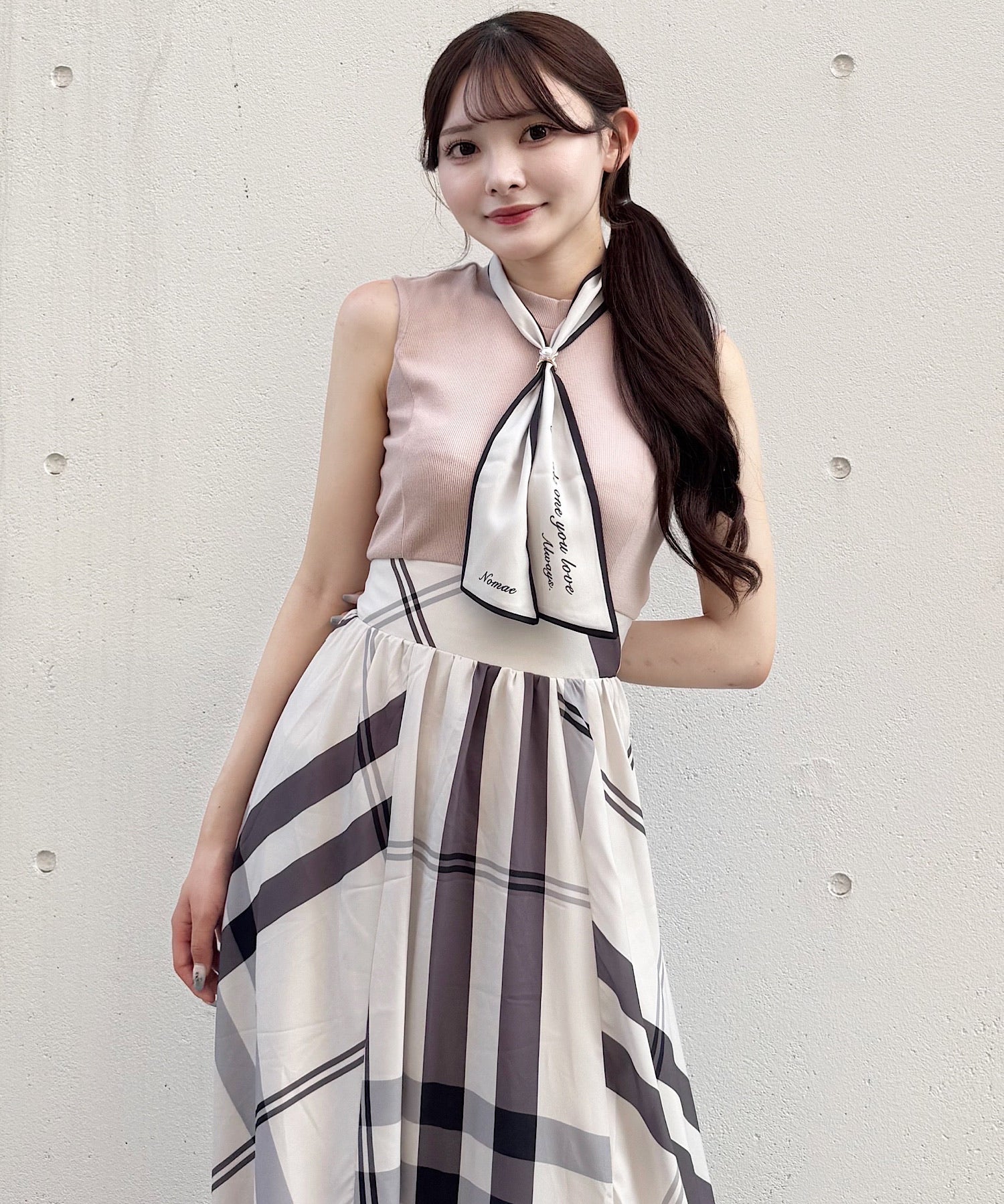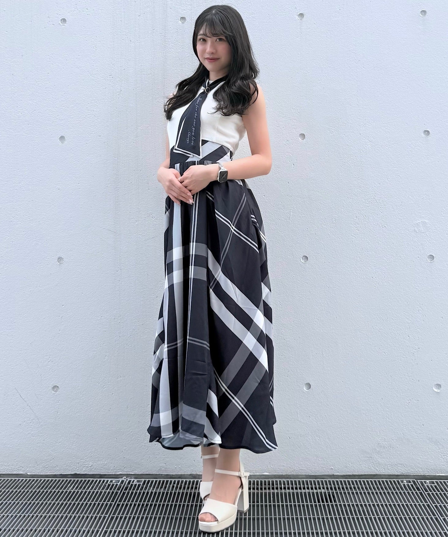 ・スカート部分のチェック柄が上品な大人かわいいドッキングワンピース♡
