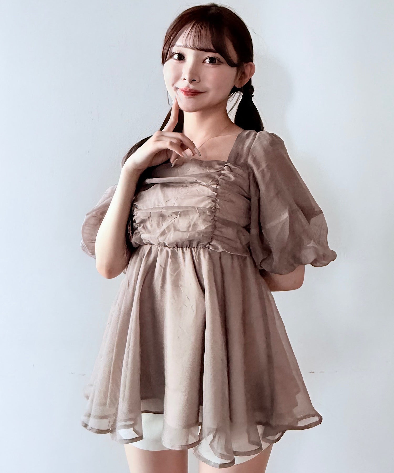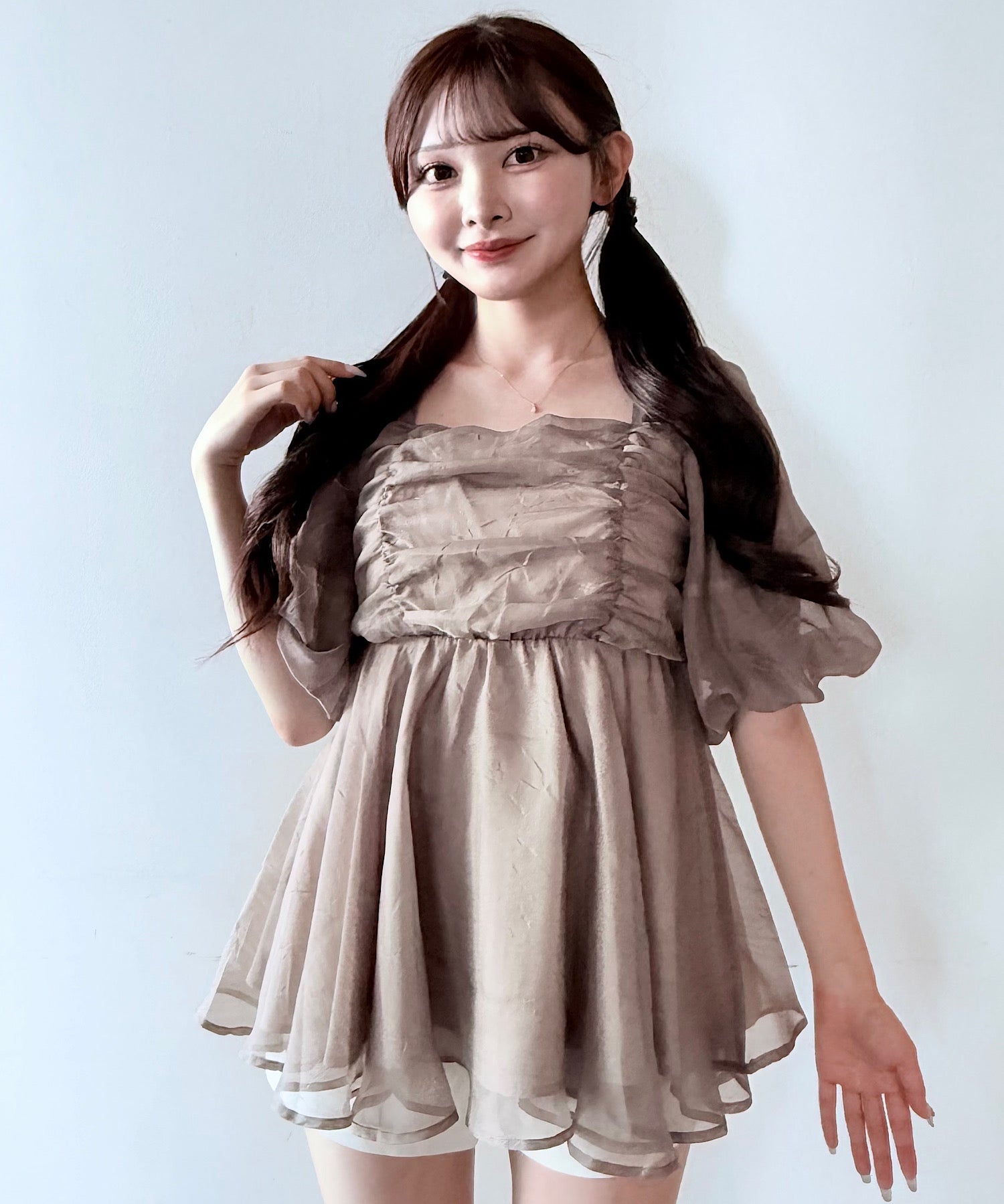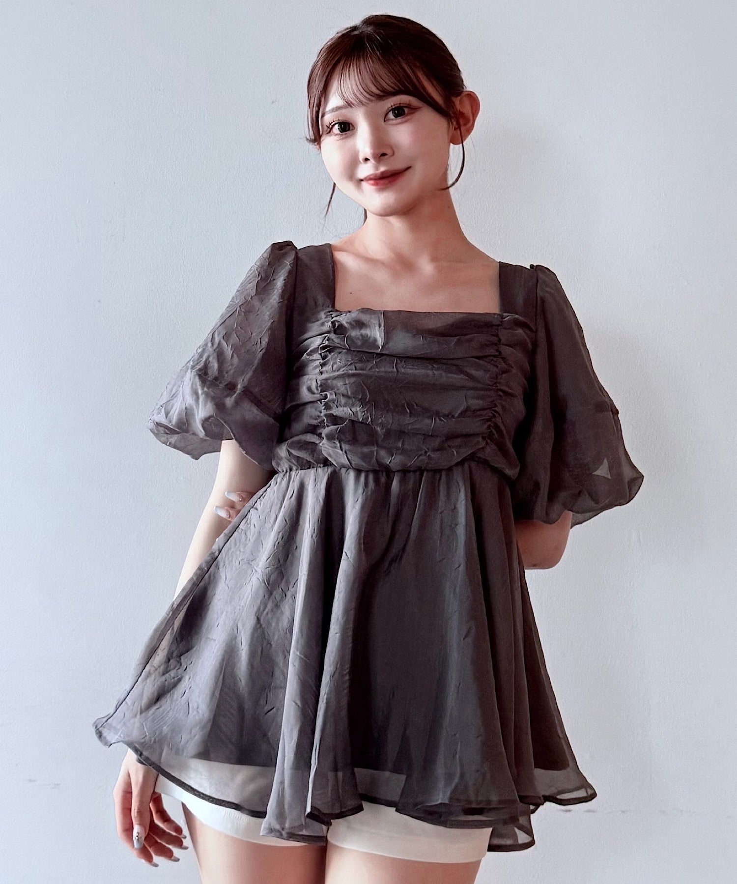 ・透け感のある軽やかな素材を使用しており、真夏の暑い日でも快適に過ごせるさらっとした着心地です♥