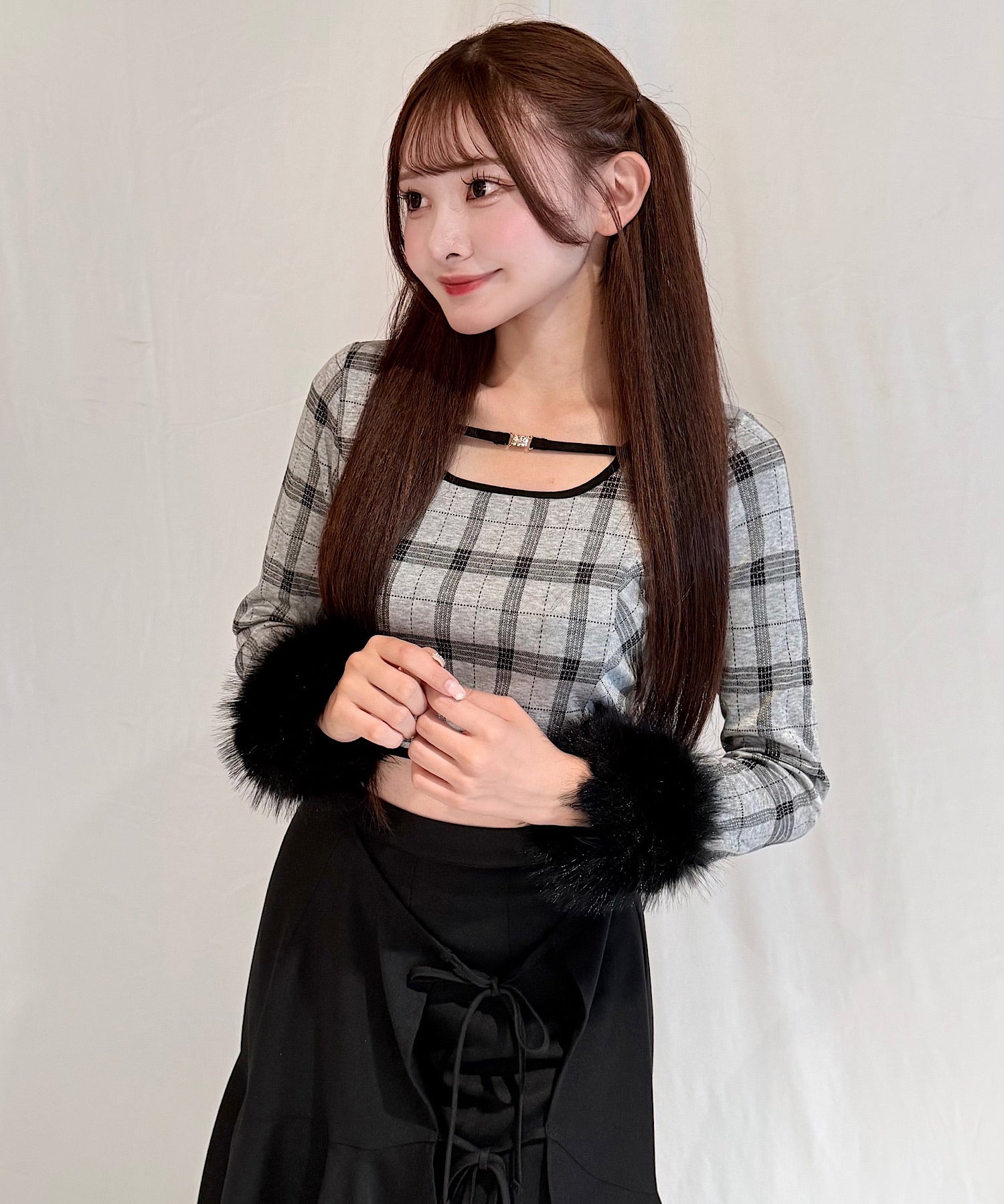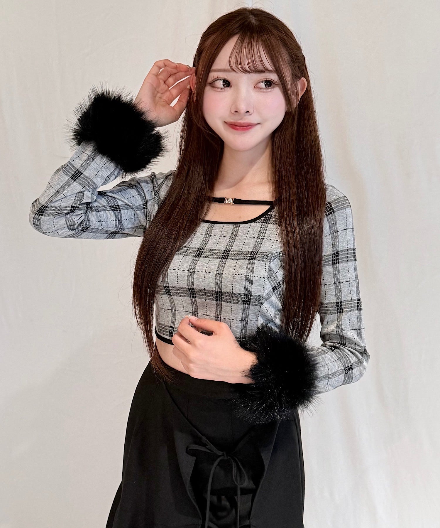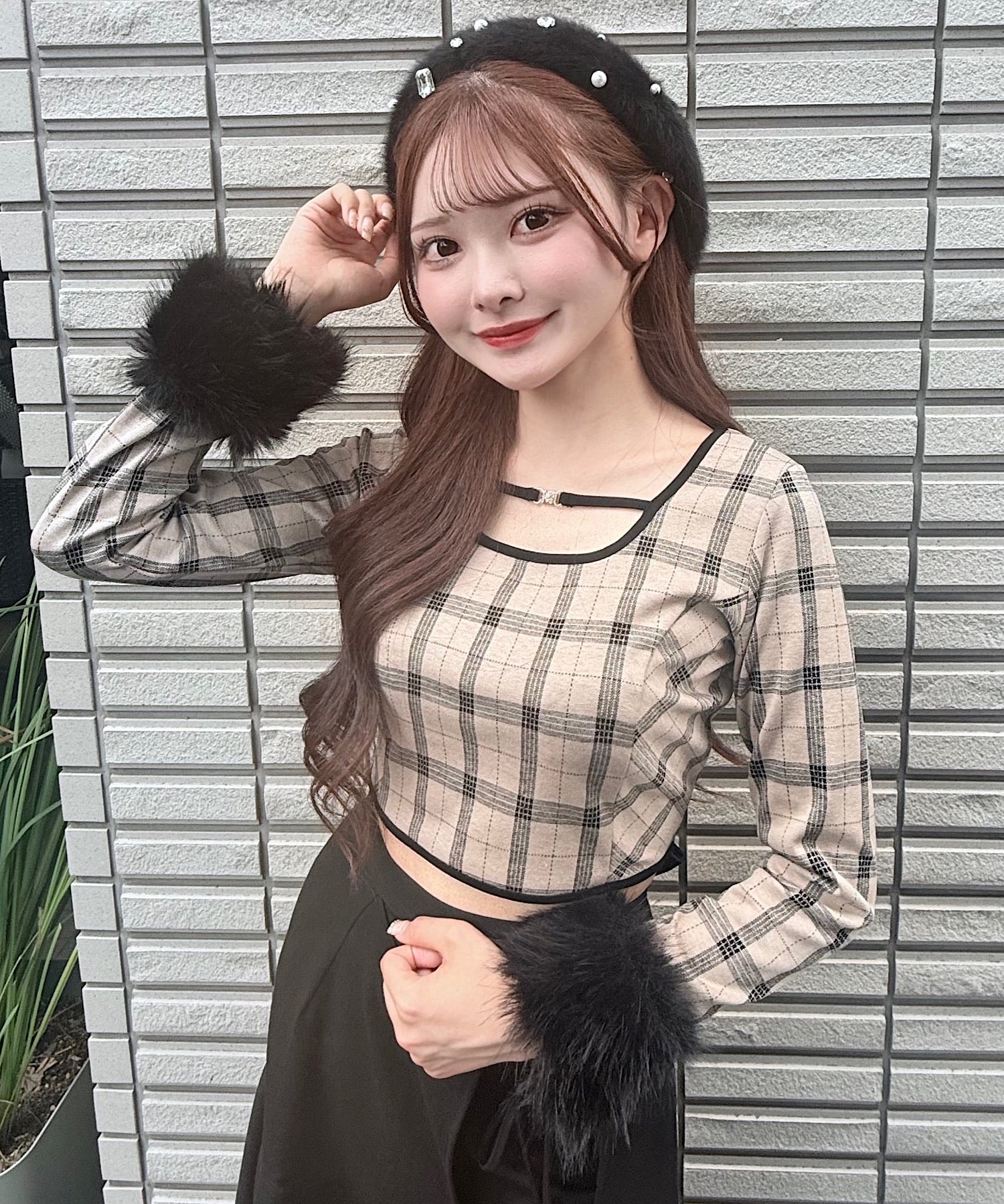 ・チェック柄×ファーカフスは秋・冬に大活躍すること間違いなし!
