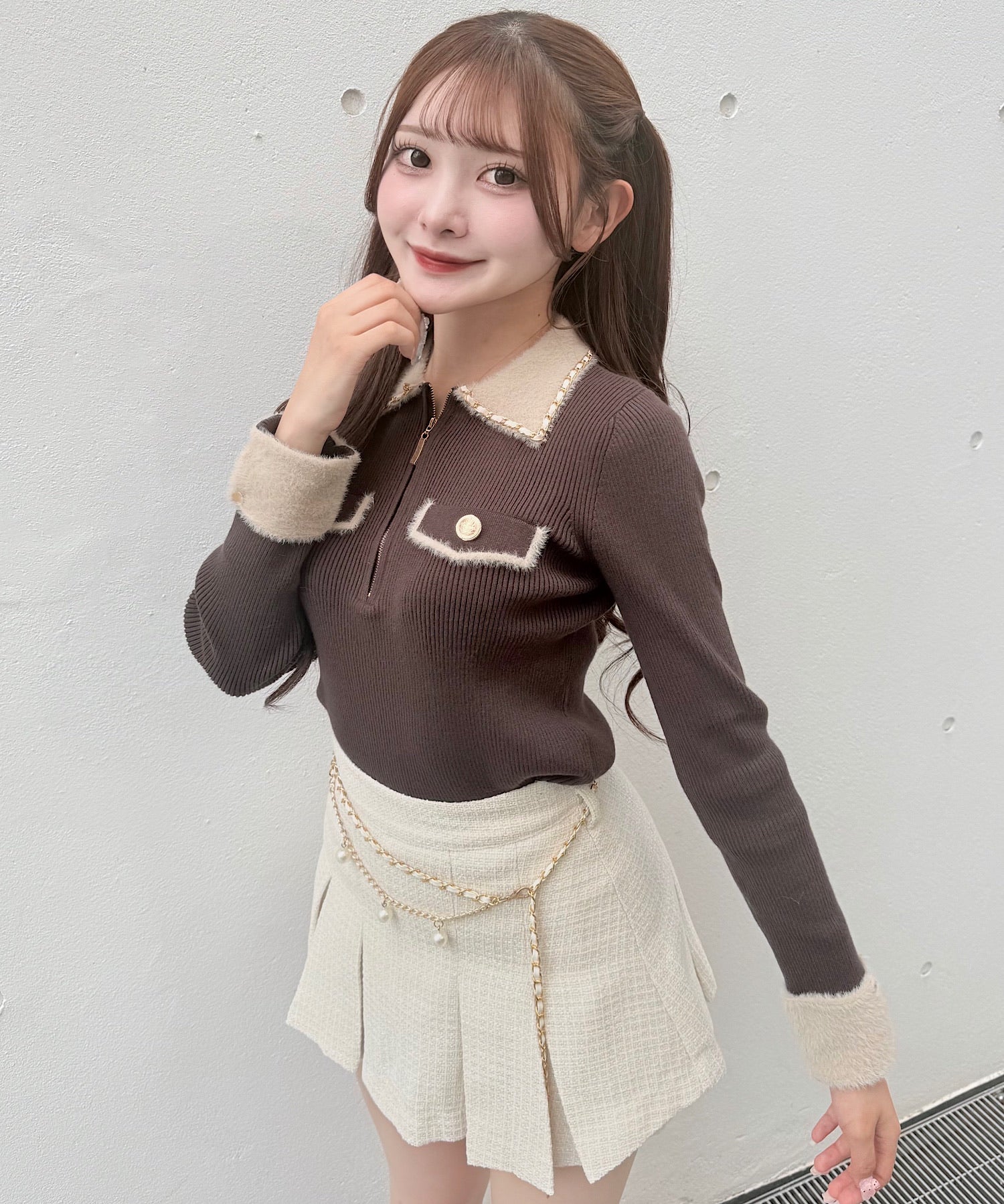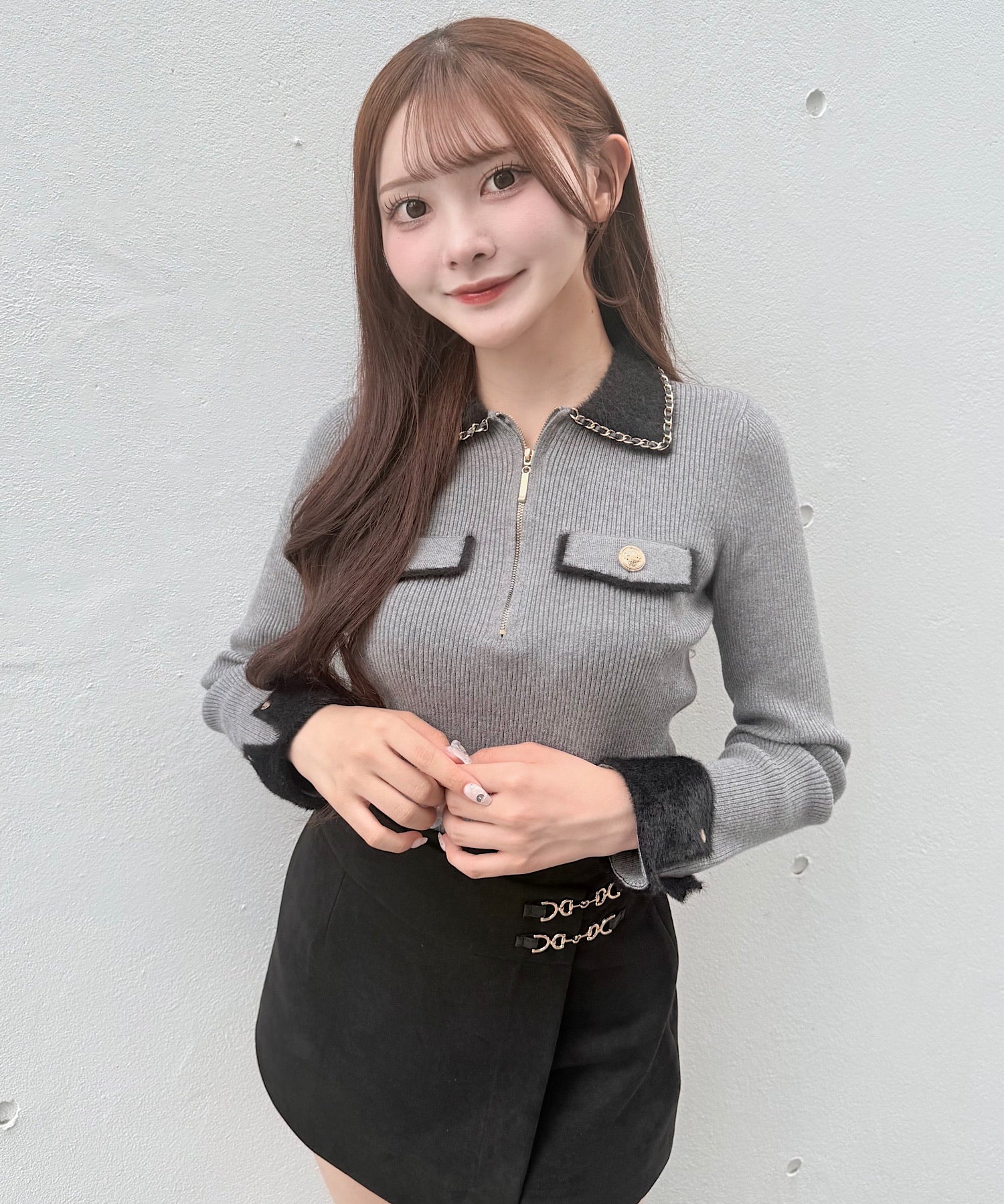 【予約商品10月下旬お届け】チェーンカラーZIPニット