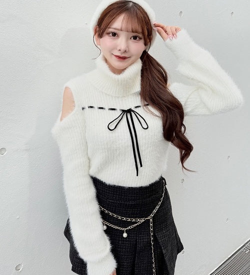 【予約商品10月中旬発送】ベロアリボンオフタートルニット