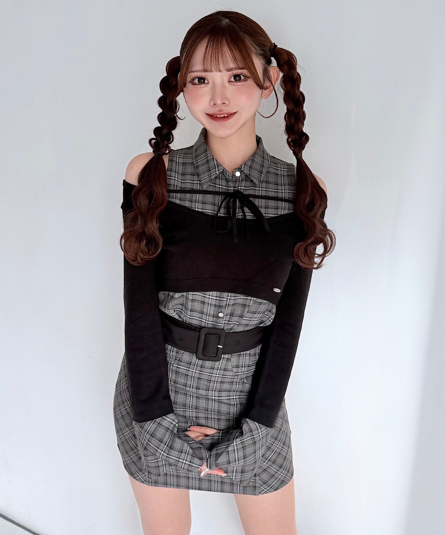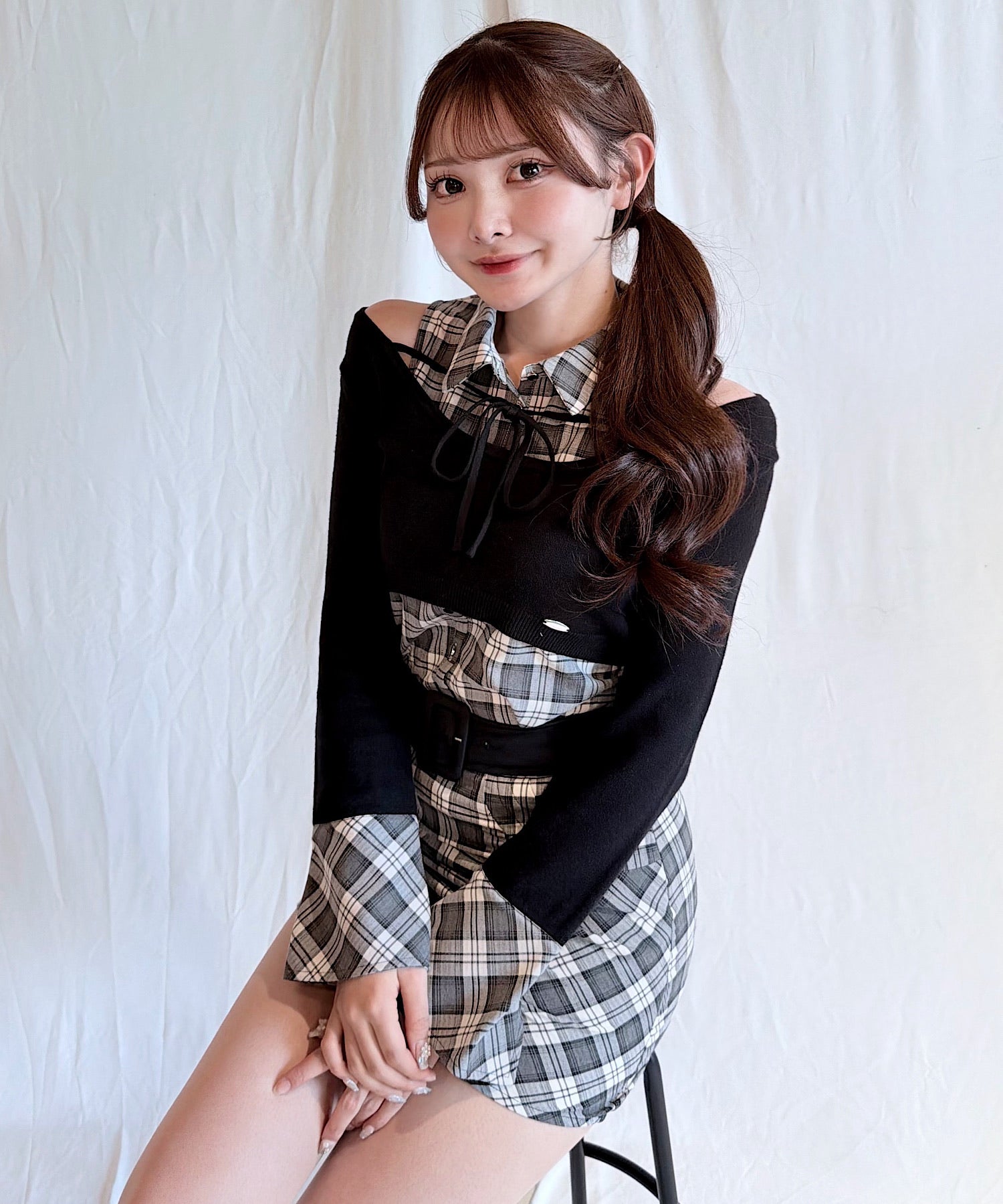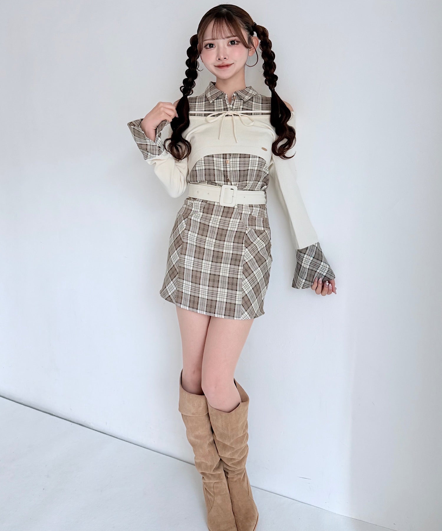 ・レイヤードのショート丈ニットで、スタイルアップ効果抜群♡